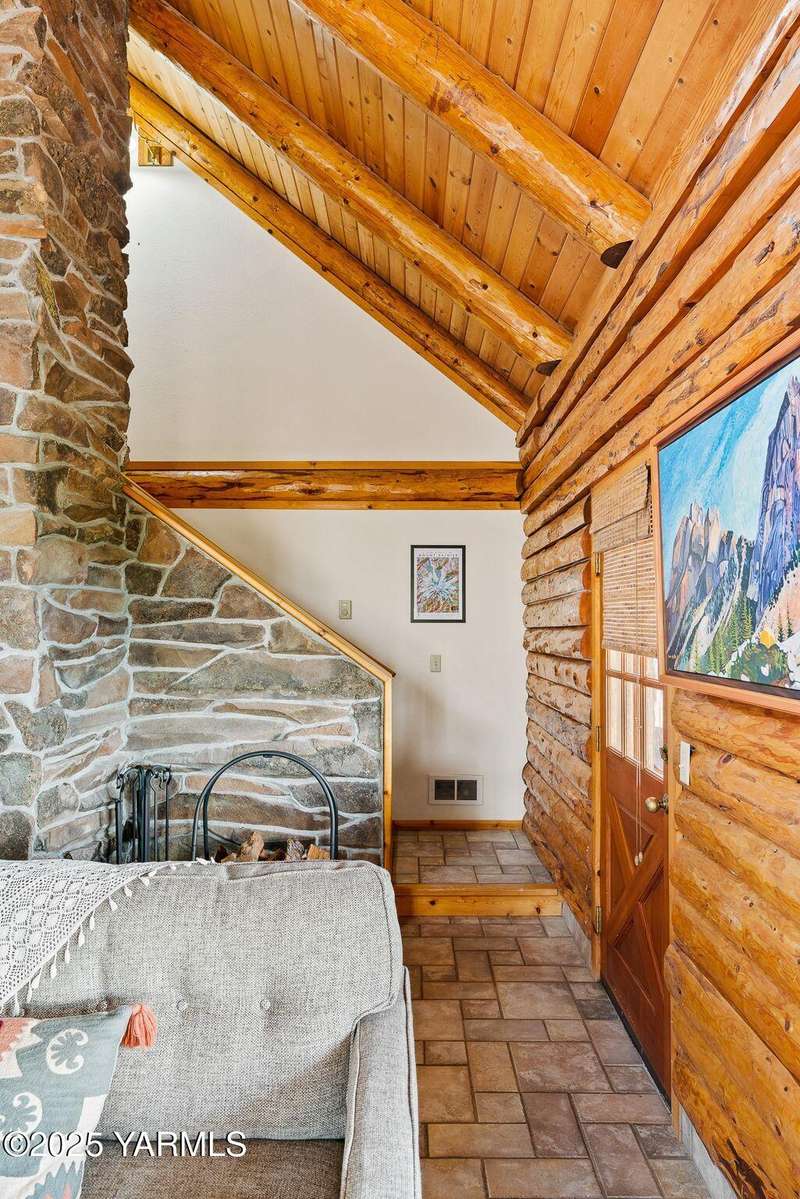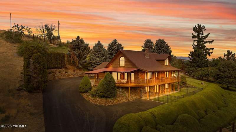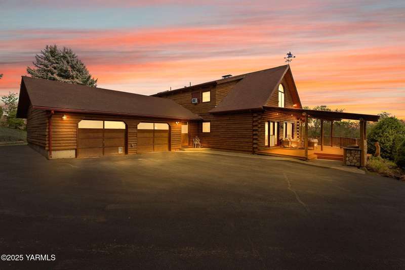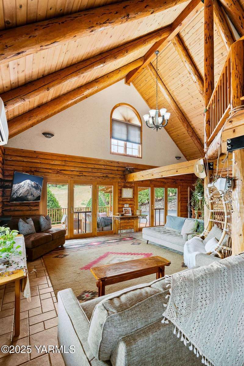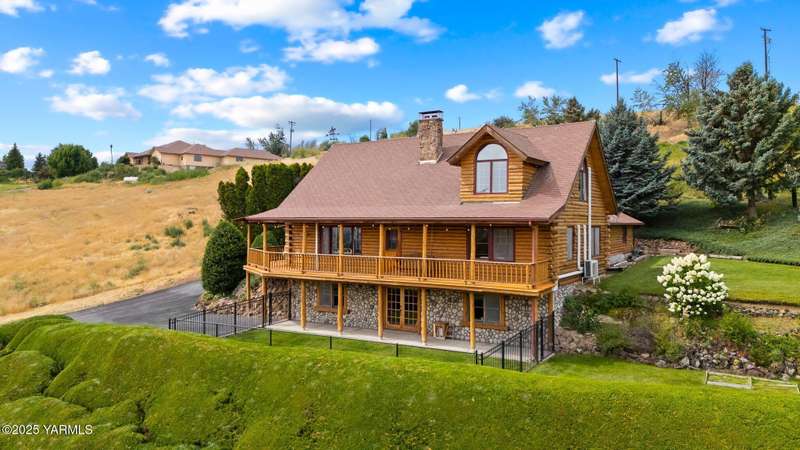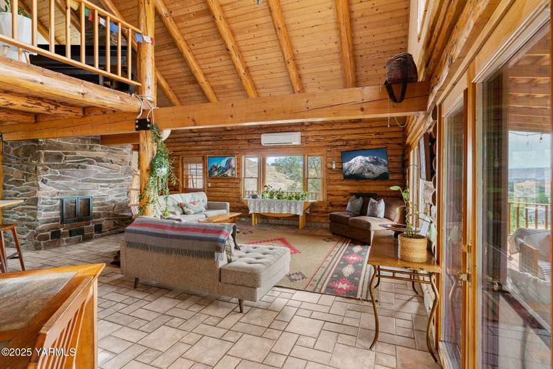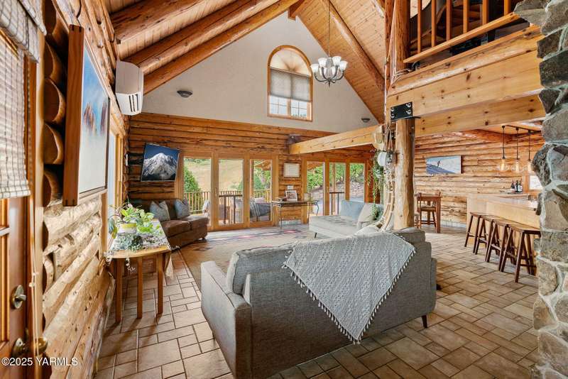 Tucked away on nearly 2 acres in the heart of town, this custom log home offers the peace of a mountain retreat, without giving up convenience. Experience rustic elegance surrounded by mature landscaping, open skies, and sweeping views.Natural light floods the great room, where cathedral ceilings, exposed log beams, and knotty pine finishes create warmth and character that can't be duplicated. Gather around the custom stone wood stove, or open the triple French doors to a wraparound deck made for morning coffee and golden sunsets.The kitchen offers stainless appliances and plenty of opportunity to make it your own. A spacious loft and primary suite upstairs feel like a private lodge getaway, while the walkout basement, with a large rec room and pellet stove, adds flexible living space for guests, hobbies, or entertainment.Modern mini-split systems keep things efficient year-round, blending comfort with classic cabin charm.If you've been dreaming of a home that feels like an escape yet sits minutes from everything, this is it.