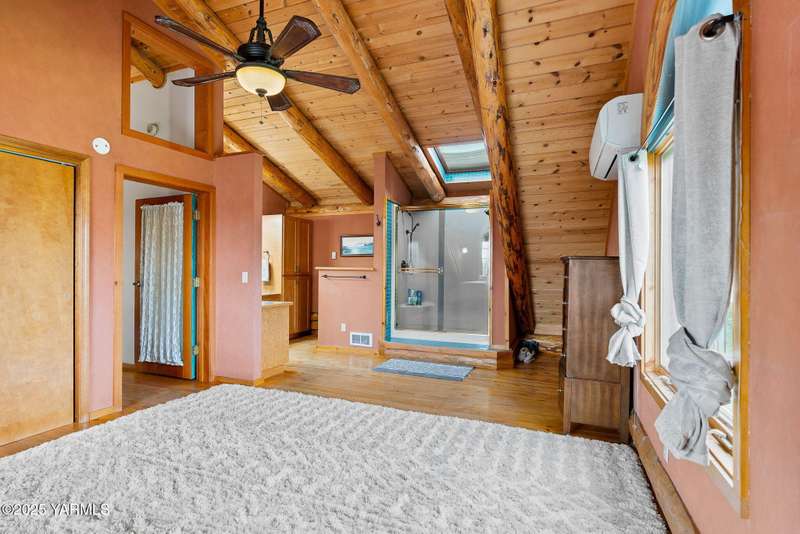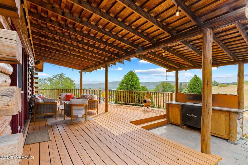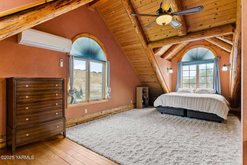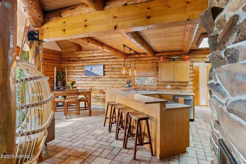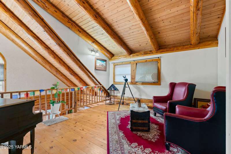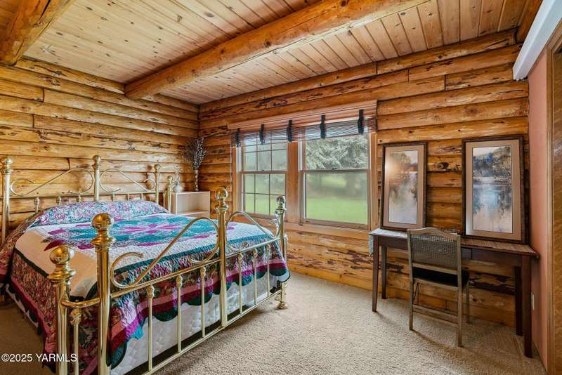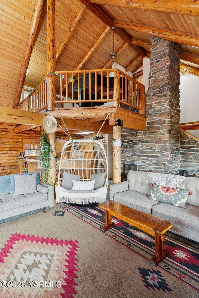 Tucked away on nearly 2 acres in the heart of town, this custom log home offers the peace of a mountain retreat, without giving up convenience. Experience rustic elegance surrounded by mature landscaping, open skies, and sweeping views.Natural light floods the great room, where cathedral ceilings, exposed log beams, and knotty pine finishes create warmth and character that can't be duplicated. Gather around the custom stone wood stove, or open the triple French doors to a wraparound deck made for morning coffee and golden sunsets.The kitchen offers stainless appliances and plenty of opportunity to make it your own. A spacious loft and primary suite upstairs feel like a private lodge getaway, while the walkout basement, with a large rec room and pellet stove, adds flexible living space for guests, hobbies, or entertainment.Modern mini-split systems keep things efficient year-round, blending comfort with classic cabin charm.If you've been dreaming of a home that feels like an escape yet sits minutes from everything, this is it.
