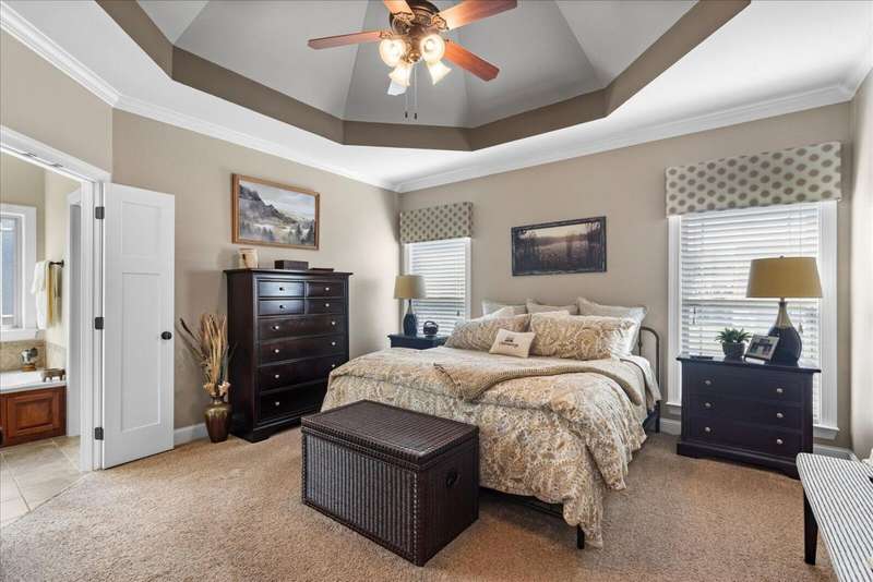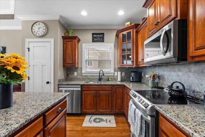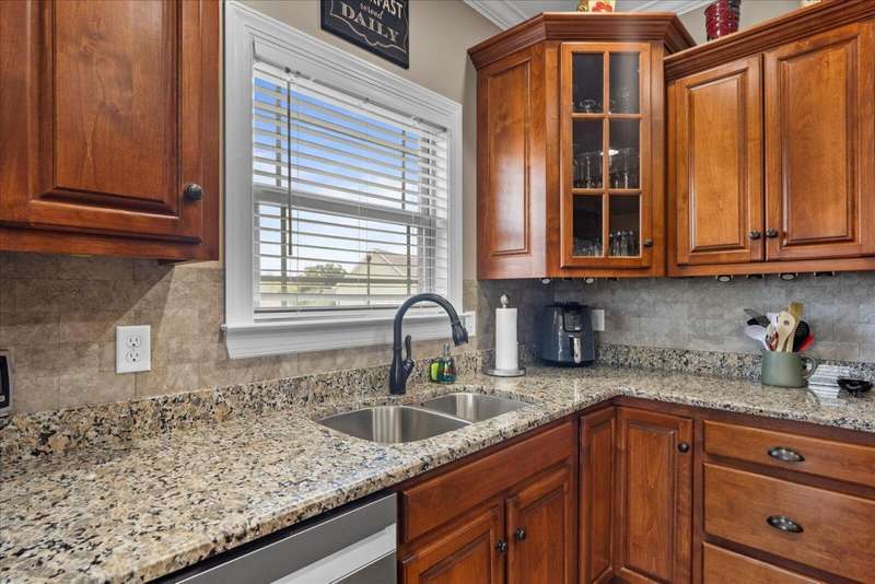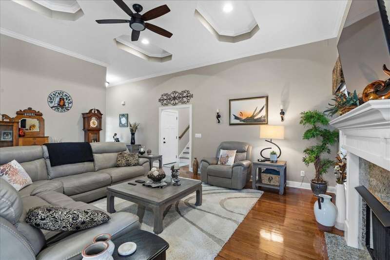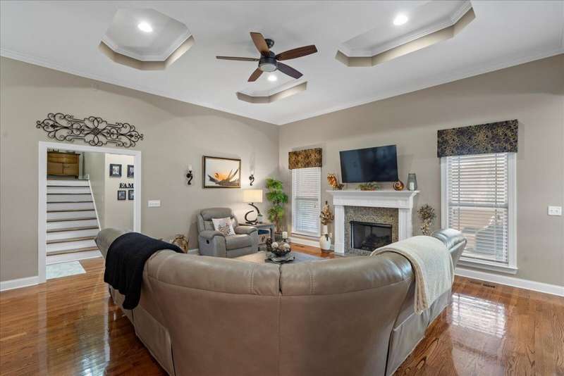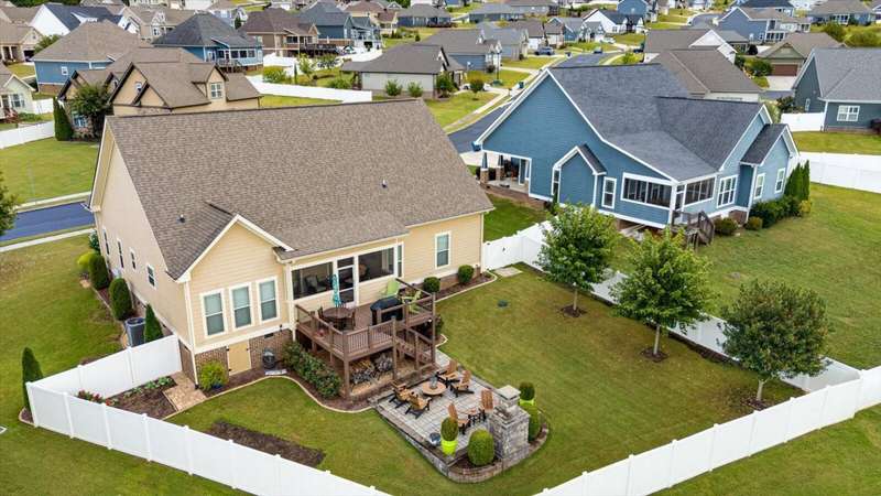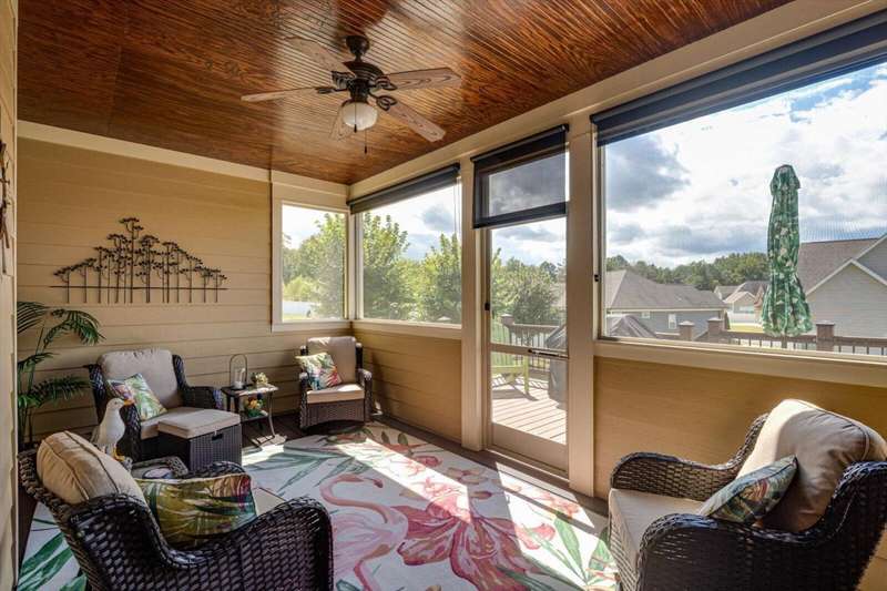 Welcome Home! This beautiful Emerson Russell built home has been meticulously maintained by it's only owners. Outside you will be impressed with every detail from the landscaping at the entrance to the outdoor fireplace in the fenced in back yard and the relaxing screened porch where you can see views of the mountains. The home boasts 2,200+- square feet of living space with 4 bedrooms, 3 of which are on the main floor & 3 bathrooms with one of those being upstairs. The kitchen features stainless appliances which all remain along with granite counters. Be sure to notice the beautiful custom buffet/bar area that the owners added in the dining area. You'll love the beautiful ceiling work found throughout the home. The spacious living area has a gas log fireplace for cold winter nights. The primary suite has a gorgeous ceiling and you'll be wowed by the upgraded closet organizers which can be found throughout the home. You have 2 guest rooms & a guest bath on the main floor. Upstairs you have a 4th bedroom or bonus room plus a 3rd full bath. The laundry room is super cute & functional as well. If you've been looking for a home in a gated community with great amenities, then look no further than this home. You'll find everything you need here!
