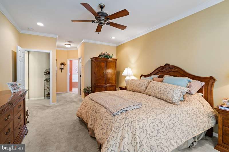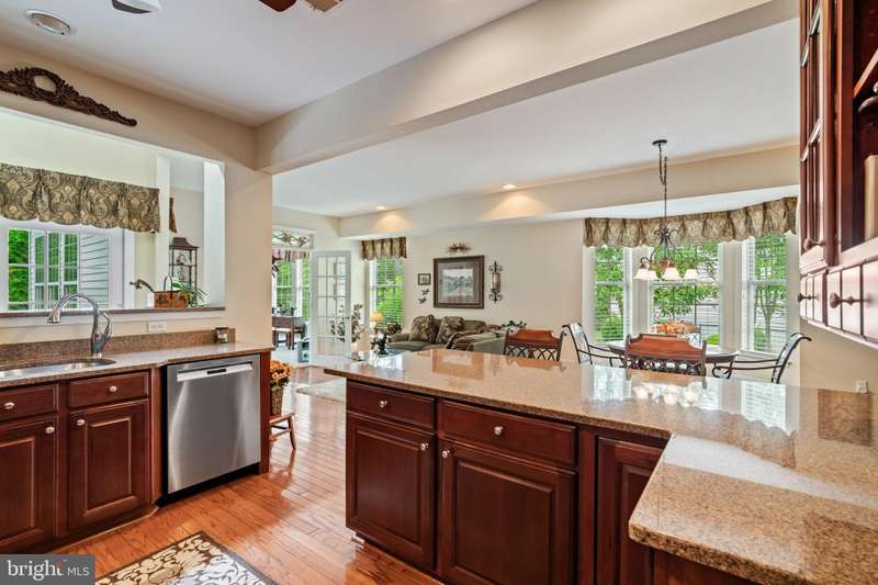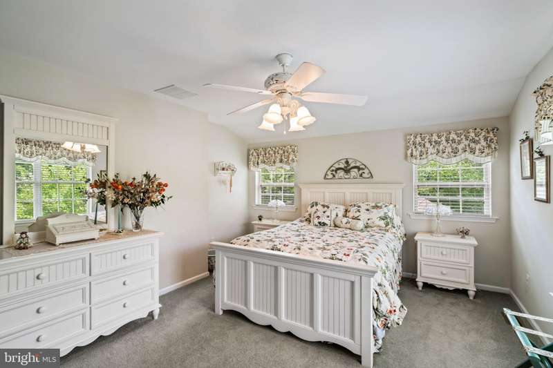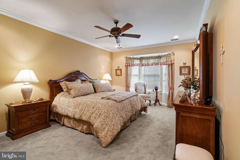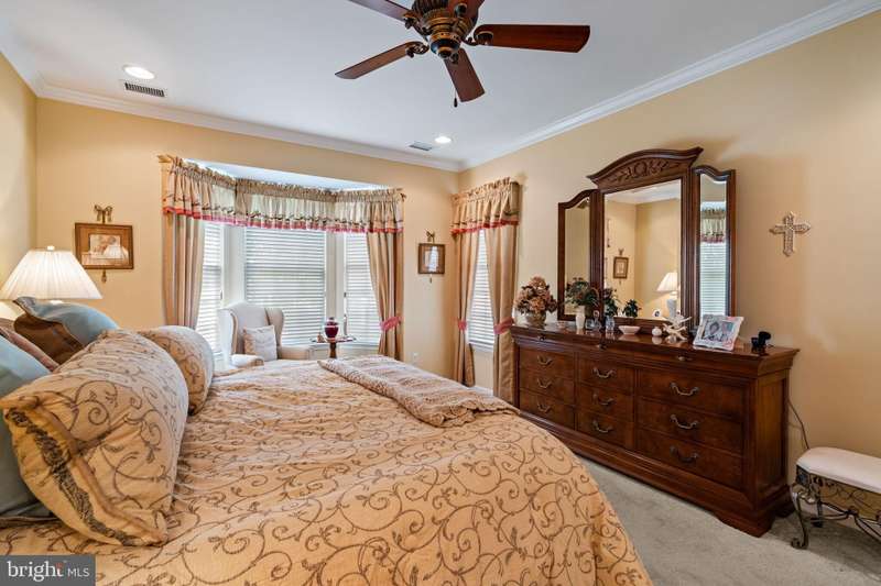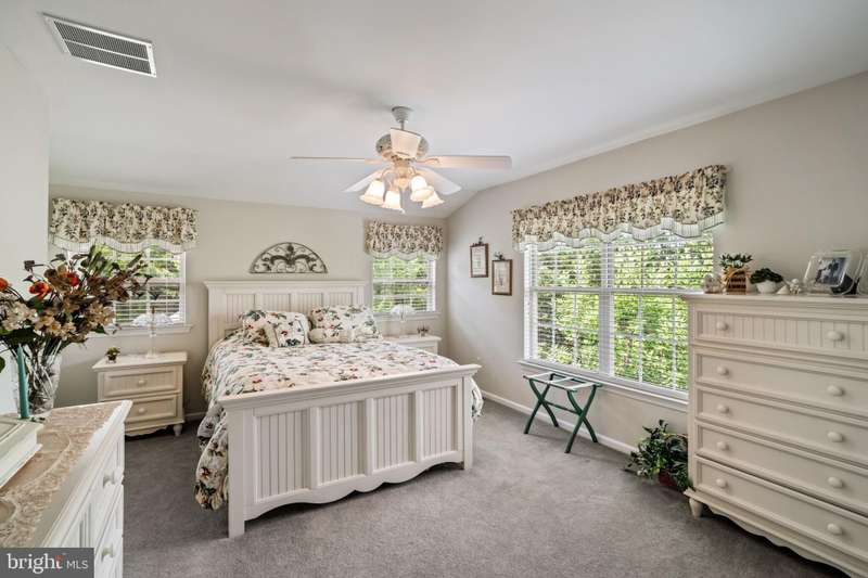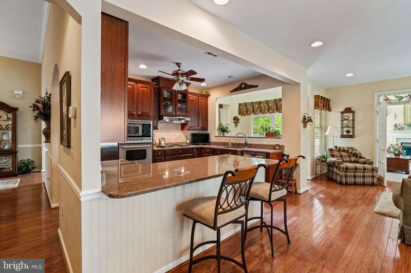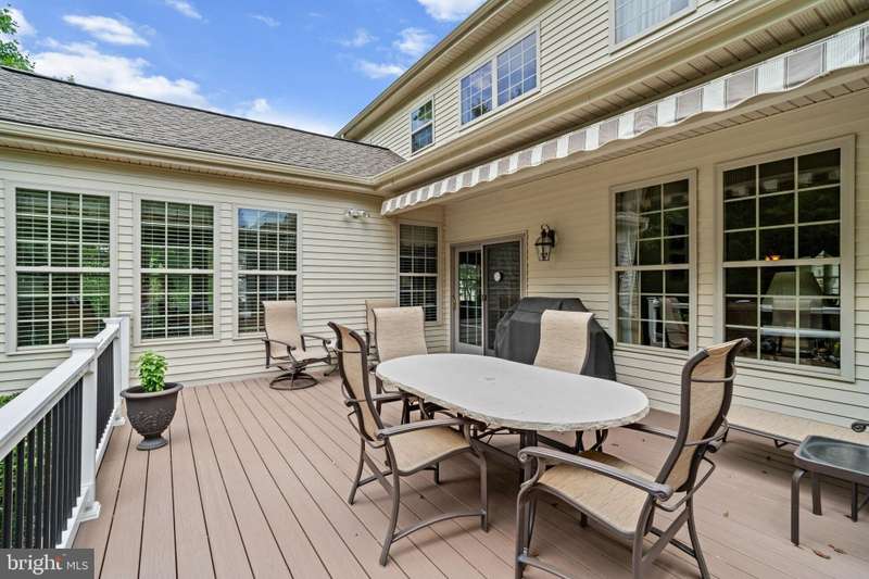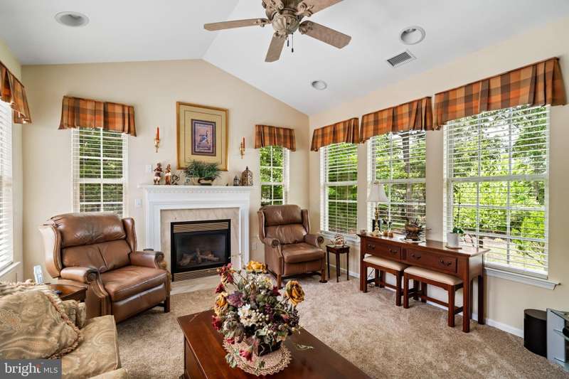 Beautifully maintained Cape May Model located in the highly sought-after 55+ community of Heritage Point in Barnegat. This spacious home features three bedrooms, three full baths, a powder room, and a generous second-floor loft complete with a bedroom, full bath, and sitting area overlooking the Great Room-ideal for guests or extended living. The upgraded kitchen boasts granite countertops, rich cherry cabinetry, a five-burner gas cooktop with overhead exhaust, wall oven, built-in microwave, a super-quiet Bosch stainless steel dishwasher, and hardwood floors. A bright bay window enhances the breakfast area, while the formal dining room is appointed with crown molding, chair rail, and hardwood flooring. Enter the cozy family room through French doors with stained glass detail, featuring a gas fireplace, ceiling fan, and recessed lighting. The Great Room impresses with soaring ceilings and elegant trim. The spacious primary suite offers a bay window, dual walk-in closets, and a luxurious bath with double sinks, garden tub, crown molding, Whole house security system and tile flooring. Step outside to a private 15 x 23 composite deck with electric retractable awning, perfect for outdoor entertaining, relaxing, or dining al fresco. Additional features include a two-car garage with plenty of storage, a whole-house Generac natural gas generator, two-zone HVAC system (both units replaced in 2020), and a newer roof installed in 2016. Beautiful stained-glass accent windows enhance the side entry. Conveniently located just minutes from Barnegat Bay Beach & Dock, shopping centers, and medical services, with easy access to Long Beach Island and Atlantic City. This exceptional home offers a perfect blend of comfort, convenience, and resort-style living in one of Barnegat's premier adult communities.