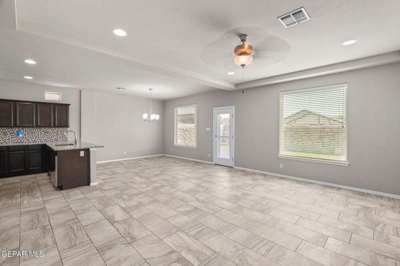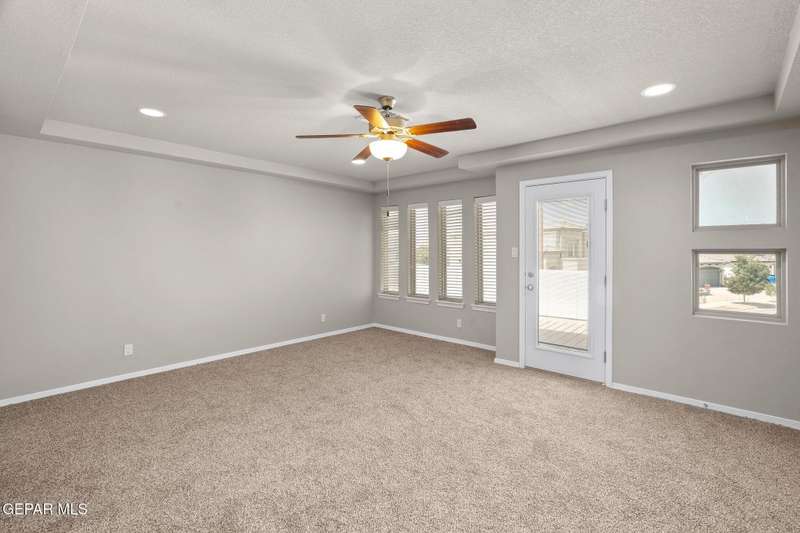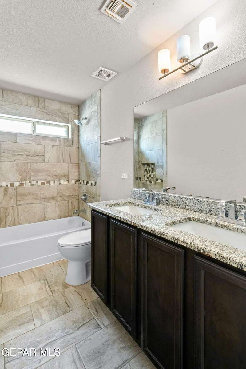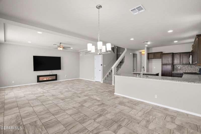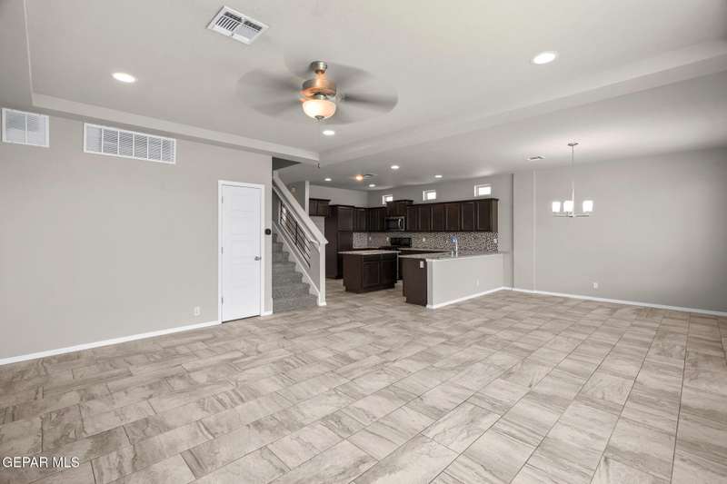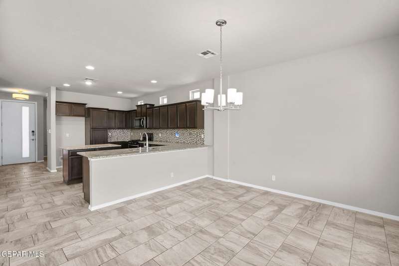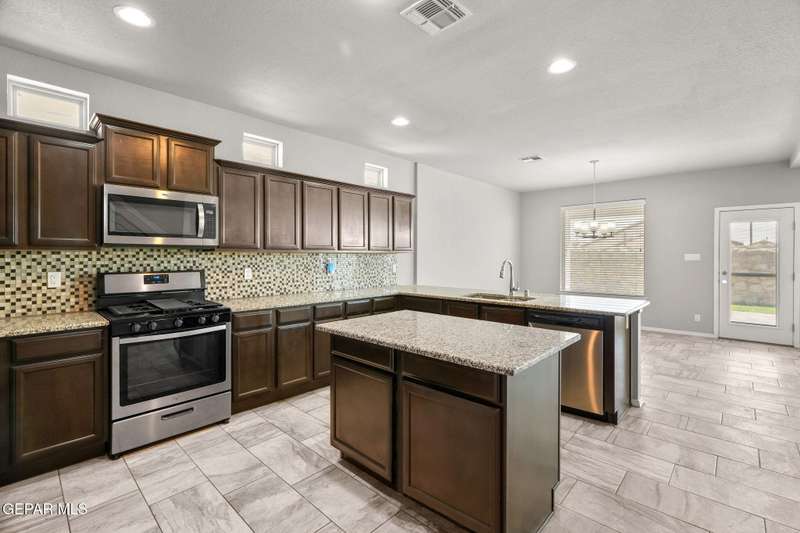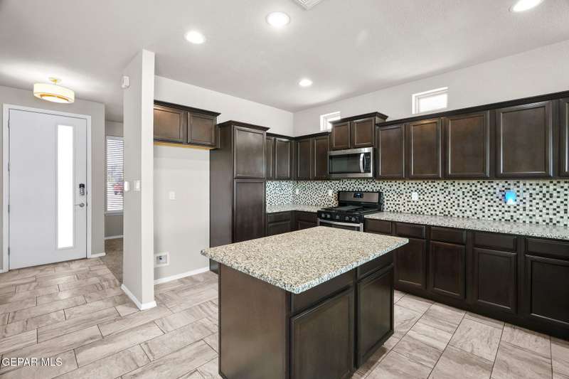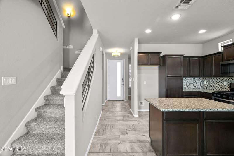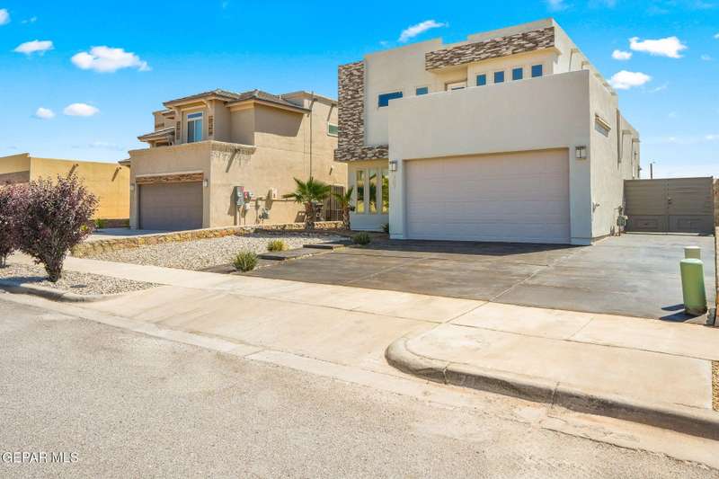 Modern elegance and fresh upgrades come together in this stunning 2-story home located in one of El Paso's fastest-growing communities! Featuring 4 spacious bedrooms, 2.5 baths, and an open-concept layout, it's perfect for both entertaining and everyday living. Step inside to find brand-new carpet throughout, fresh interior and exterior paint, and a bright, inviting atmosphere. The gourmet kitchen shines with redone cabinets, granite countertops, stainless steel appliances, and a seamless flow into the living and dining areas. Upstairs, retreat to the private primary suite with a spa-like bath, walk-in closet, and a balcony offering scenic views. Outside, enjoy the clean, updated desert landscaping in the front and back yards-ideal for low-maintenance living in El Paso's sunny climate. The garage floor has also been redone for a polished look. Located minutes from schools, shopping, dining, and major highways-this move-in ready gem has everything you need and more!
