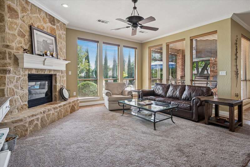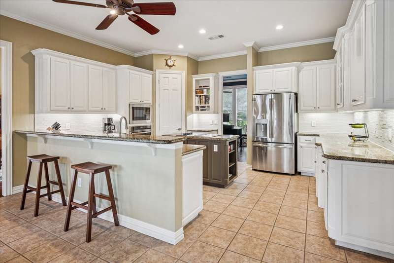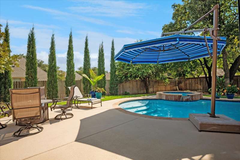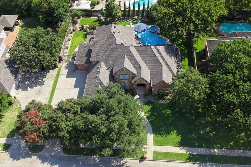 From the moment you arrive, this stunning home welcomes you with curb appeal and elegance. Nestled on a quiet cul-de-sac with a beautifully treed lot and manicured gardens, the striking wrought iron double doors with transom set the tone for the sophistication within. Step inside the spacious foyer and your eyes are immediately drawn to the resort-style backyard, creating a true oasis. Gleaming hardwoods, detailed trim work, and tall ceilings enhance the sense of style throughout.The dining room offers the perfect setting for family meals or entertaining, while the modernized kitchen features white cabinetry, stylish backsplash, glass-front displays, and a walk-in pantry. A bar nook and eat-in area provide plenty of space to gather, with natural light pouring in from oversized windows. The living room impresses with a stone fireplace, walls of windows, and space for all your favorite furnishings. A private office with elegant trim and natural light offers flexibility for work or relaxation.The primary suite is tucked away for peace and quiet, with tray ceilings, a sitting area, dual vanities, a jetted tub, a large shower, and an organized walk-in closet. A secondary bedroom with private bath and a spacious laundry room round out the main level. Upstairs, guests or family will enjoy their own retreat with a wet bar, bonus room, and flexible space for games, hobbies, or even an additional bedroom.Step outside to a true backyard paradise. The pool, lush landscaping, and covered patio with retractable screens create the perfect spot for entertaining, alfresco dining, or relaxing while kids and pets play. This private oasis feels like a resort at home.Located in Keller ISD with nearby trails, parks, shopping, dining, and easy access to major highways and DFW Airport, this home offers both convenience and community. A rare gem that blends beauty, function, and lifestyle in one remarkable package!