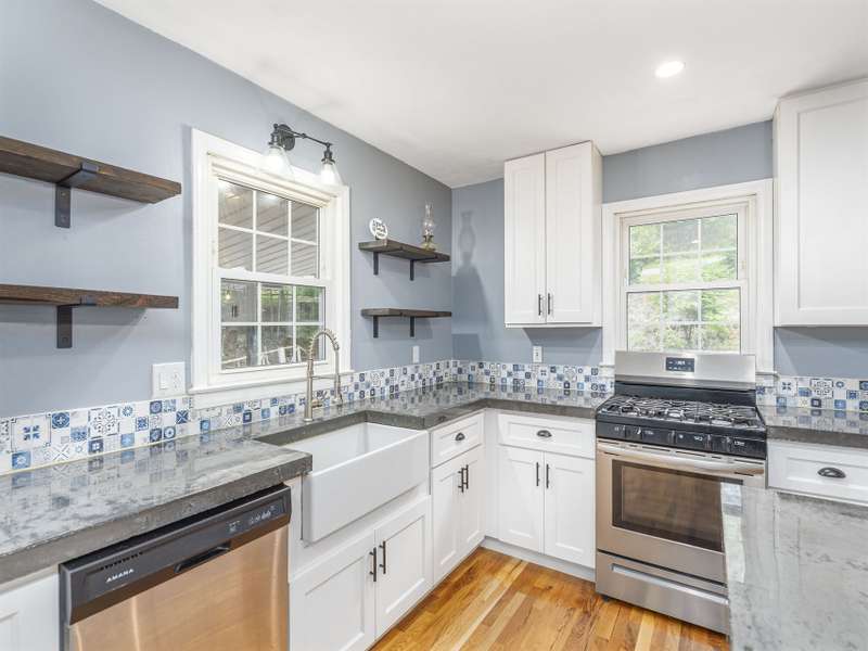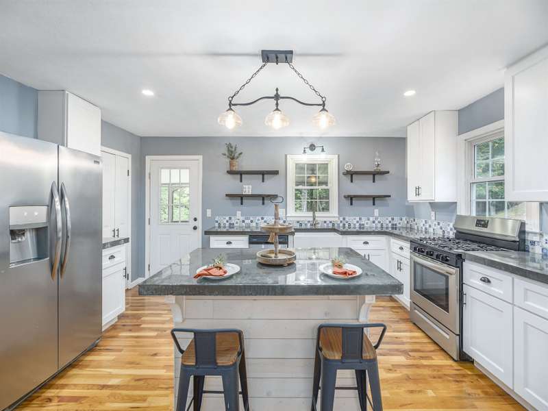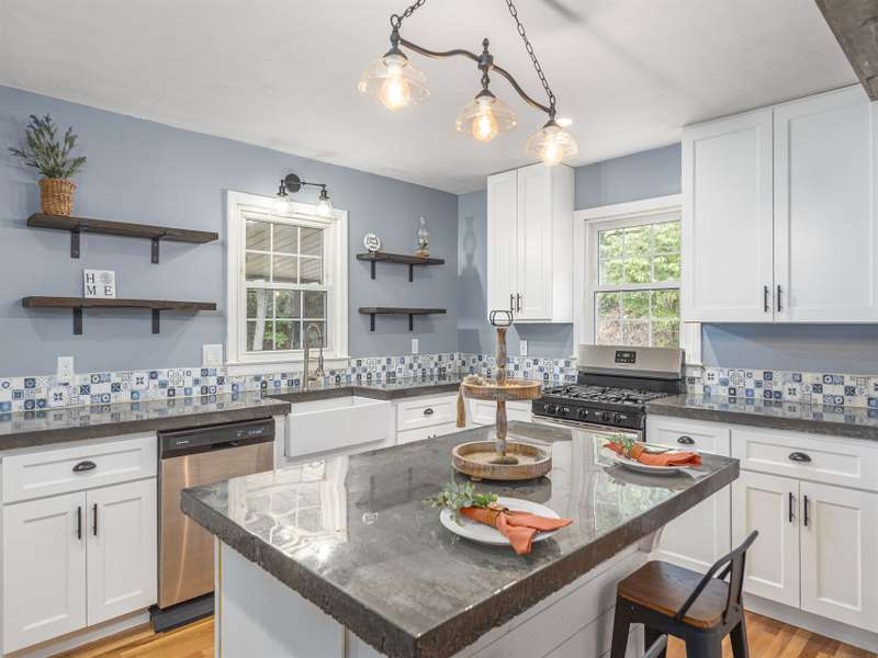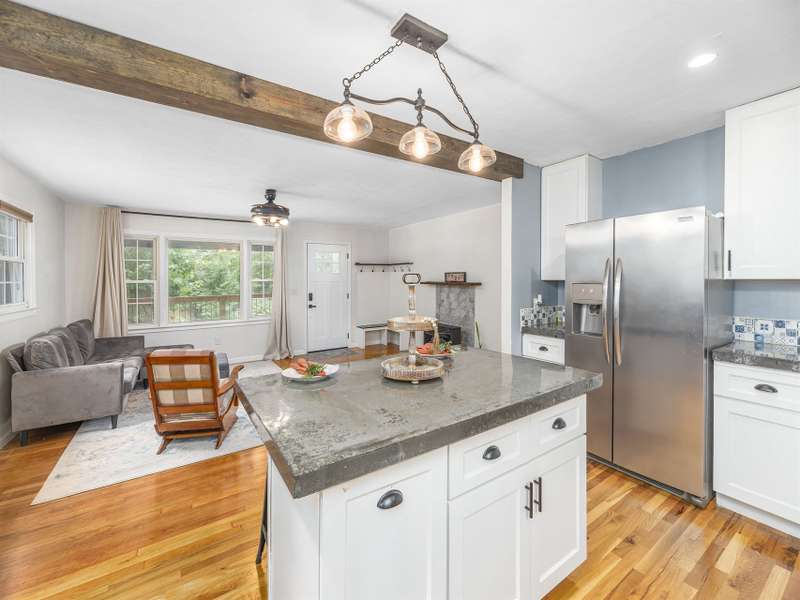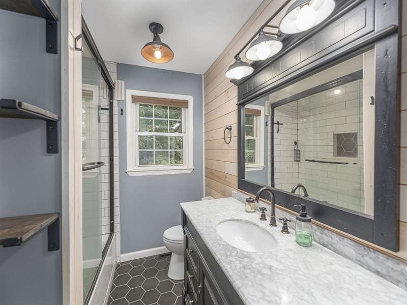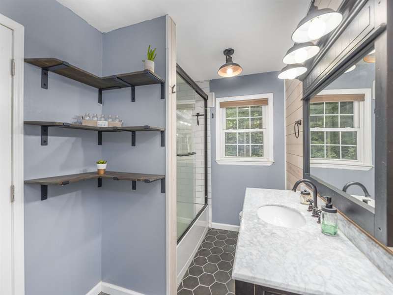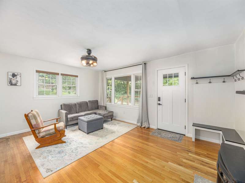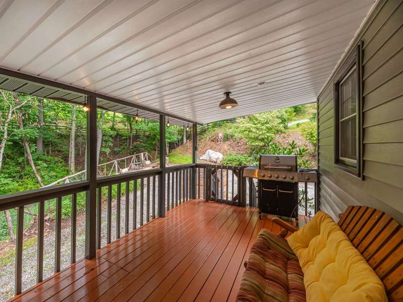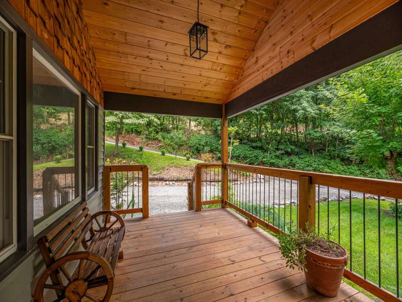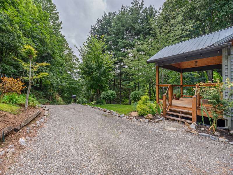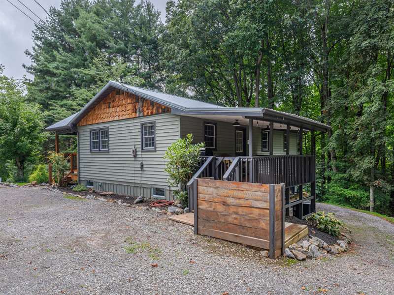 Extensively renovated home with additional lot totaling 1.11 acres. A perfect mountain getaway yet close to shopping and restaurants. Beautiful new front and back covered decks to enjoy the sounds of the flowing creek, beautiful landscaping with fruit bushes, and winter mountain views. Feels miles away yet only minutes to historic downtown Waynesville. Renovations include new open floorplan, expanded & updated kitchen & bathroom, interior/exterior paint, cedar shakes, metal roof, heat pump, basement split into garage and living area; the list goes on. Easy year round access on paved roads. Wrap around driveway, plenty of parking for all the friends who will want to come visit. Perfect for year-round living or a vacation home. Come see how great mountain life can be. No permits on file with the county for upgrades or septic.