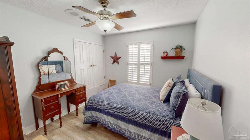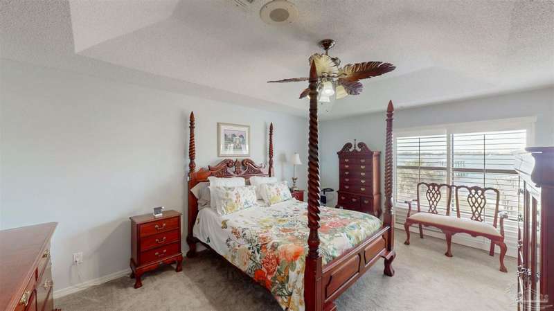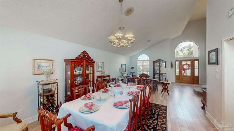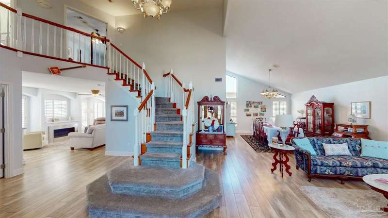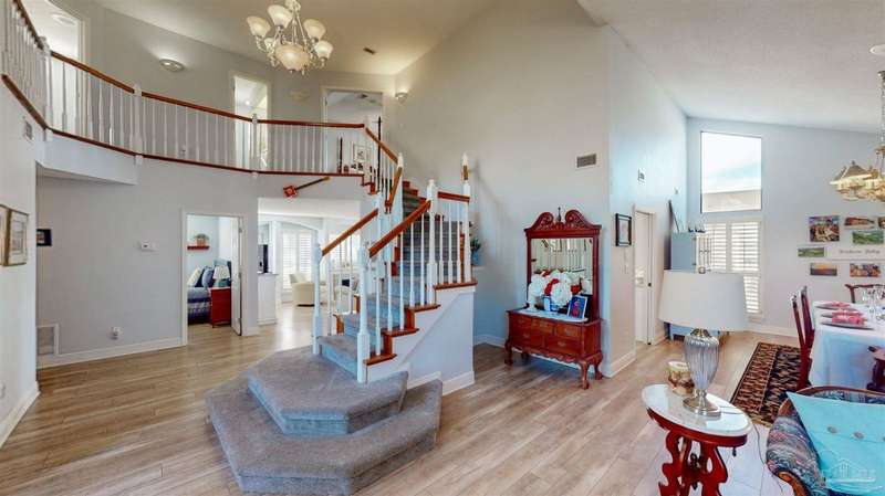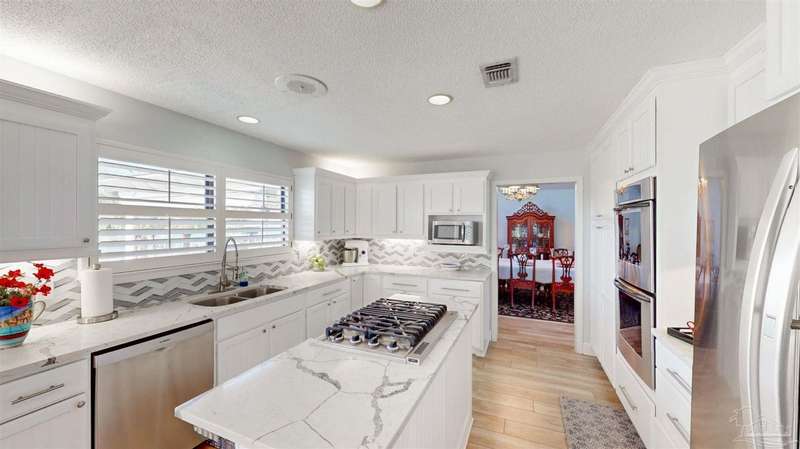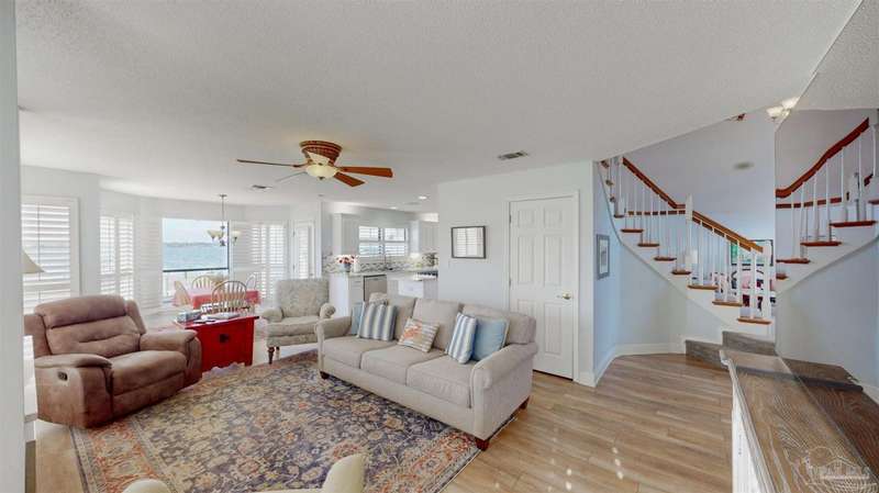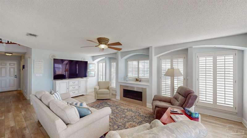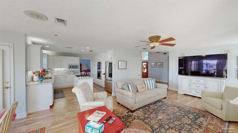 OPEN HOUSE Sunday October 12th 1-4pm.... Experience the ultimate in coastal living and entertaining at this stunning waterfront retreat on Perdido Bay! This beautifully updated 4-bedroom, 3-bathroom home is designed for seamless indoor and outdoor living, offering breathtaking views, modern updates, and an entertainer's dream backyard. Inside, enjoy 2,432 sq ft of thoughtfully designed space with luxury vinyl plank flooring (2021) and elegant plantation shutters throughout. The spacious living room features a ventless gas fireplace with remote, creating a cozy yet sophisticated ambiance. The gourmet kitchen is a chef's delight, boasting quartz countertops, a glass backsplash, pullout drawers in shaker cabinets, and high-end appliances including Thermador double ovens, a Viking gas cooktop, and an LG refrigerator. Step outside to your private waterfront paradise, where indoor comfort flows effortlessly into outdoor luxury. The covered outdoor kitchen is fully equipped with a Big Green Egg, Jenn-Air grill, refrigerator, poured concrete bar, sink, and a powered sunshade with remote-perfect for hosting gatherings year-round. Enjoy stunning sunsets from your private boat dock, complete with a covered boathouse, lift, power, and water access, making it ideal for boaters and water enthusiasts. Sitting on a 0.38-acre lot, this home offers both tranquility and convenience, with a metal roof (2021), refreshed stucco (2020), and an irrigation system to keep the lush landscaping vibrant. Whether you're relaxing by the bay, hosting lively get-togethers, or enjoying a quiet evening by the fire, this home offers the perfect blend of luxury, comfort, and coastal charm. Don't miss your chance to own a true indoor-outdoor entertainer's paradise on Perdido Bay!