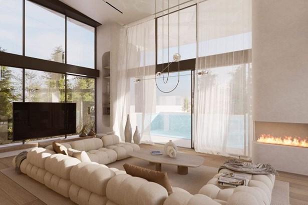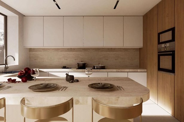 The home features four spacious bedrooms, including a master suite with a walk-in closet, an office ideal for remote work, three stylish bathrooms, and a guest WC. The expansive open-plan living and dining areas are complemented by a sleek, fully equipped kitchen, ideal for entertaining or relaxed family meals.