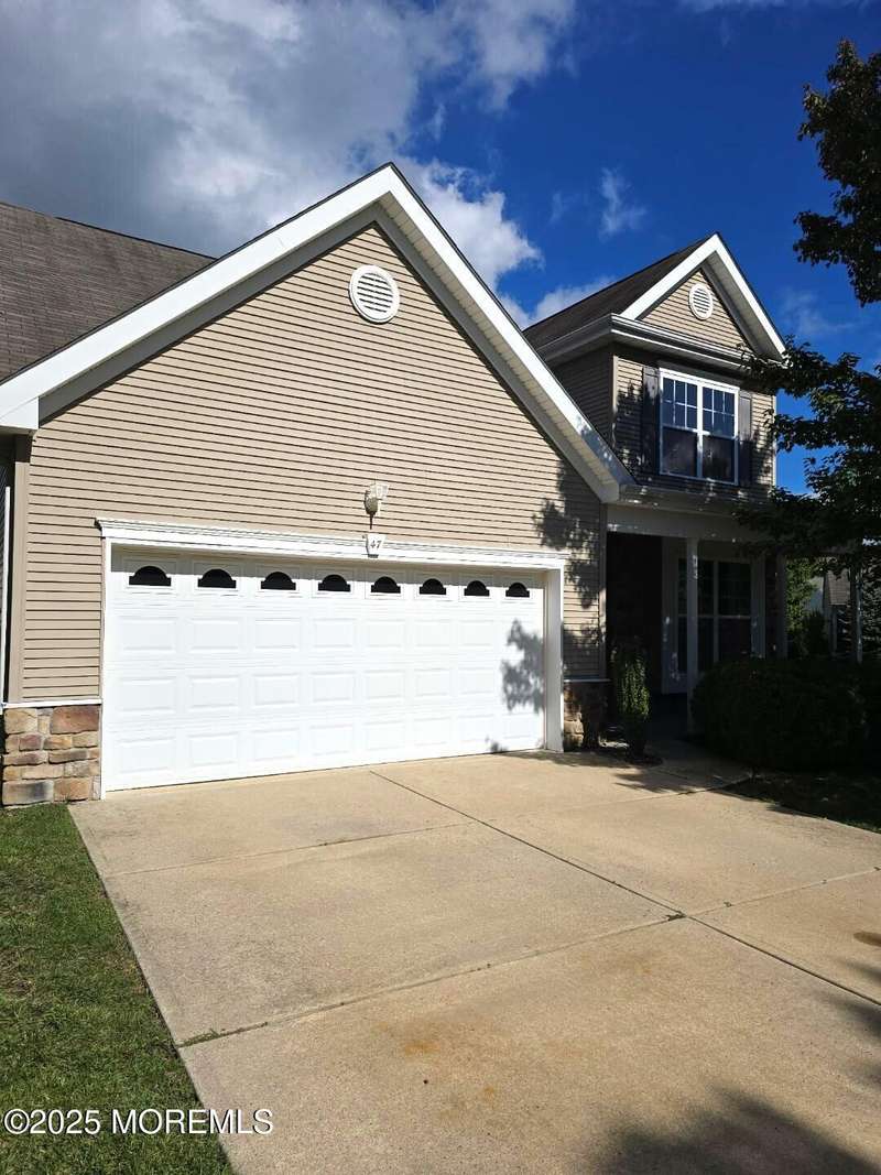 Welcome to 47 Ivy Creek. This Whitman Model boasts 3BRs and 2,5baths. All new flooring on 1st floor in 2025. New HVAC in 2023. Don't let this 2 story home fool you. It's actually a Ranch and Guest house on 2nd floor. First floor has all your living areas, large master BR w/walk in closet, en suite w/walk in shower stall and jacuzzi soaking tub, eat in kitchen with 42'' cabinets, stainless appliances, Corian counters, ceramic floor. From the kitchen enter into the great room with dining room and huge living room with gas fireplace, a separate laundry room and sunroom with wrap around windows. From the sunroom enter into the screened in porch. The 2nd floor has two nice size bedrooms, one can be an office w/French doors, full bath, huge loft, Perfect for your guests. Corner lot, underground sprinkler system, 2 car garage, vinyl siding. HOA with low monthly fee of $170 covers lawn maintenance with includes weekly mowing, trimming and edging. Also covers fertilizing and leaf removal in the fall. The swimming pool is heated with salt water. Clubhouse has exercise, billiards, gathering rooms. Clubs, trips, cruises, game nights, socials. You can be as active as you want. Don't miss this one.