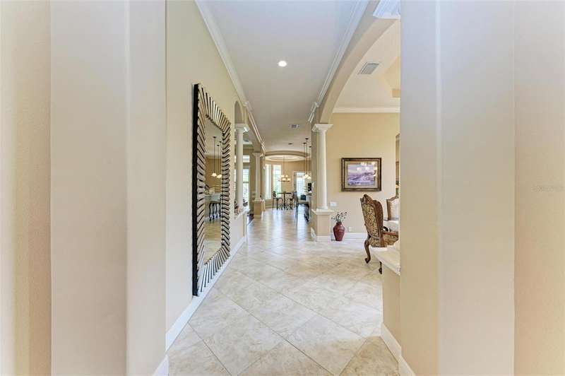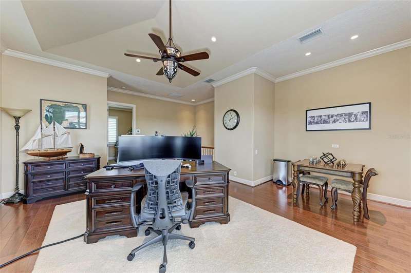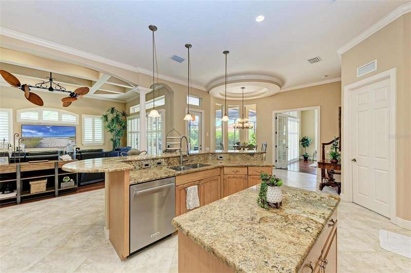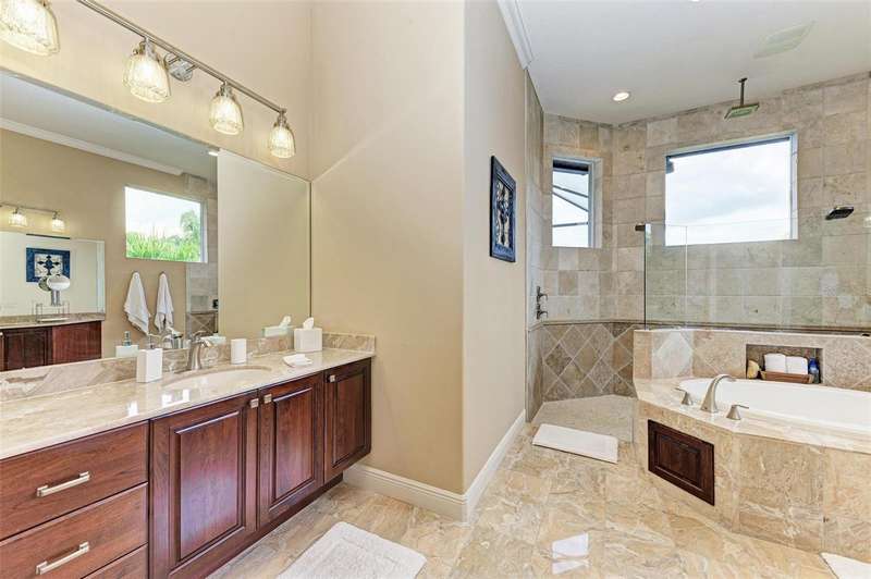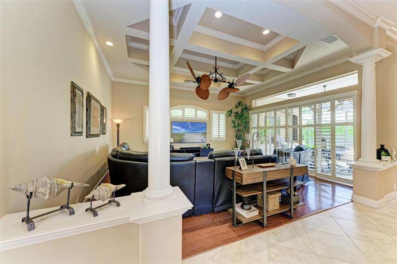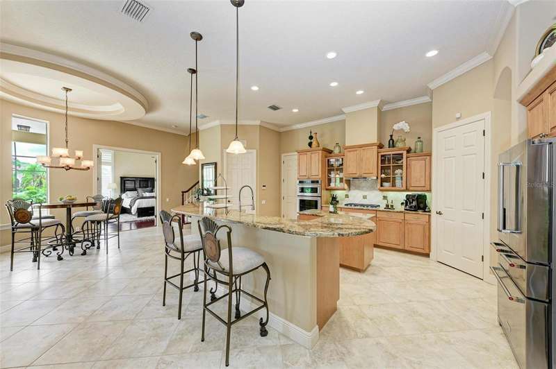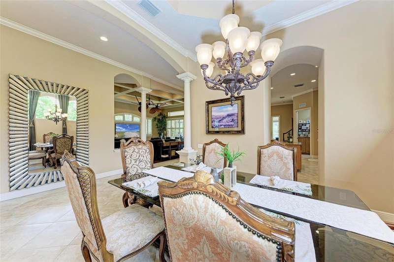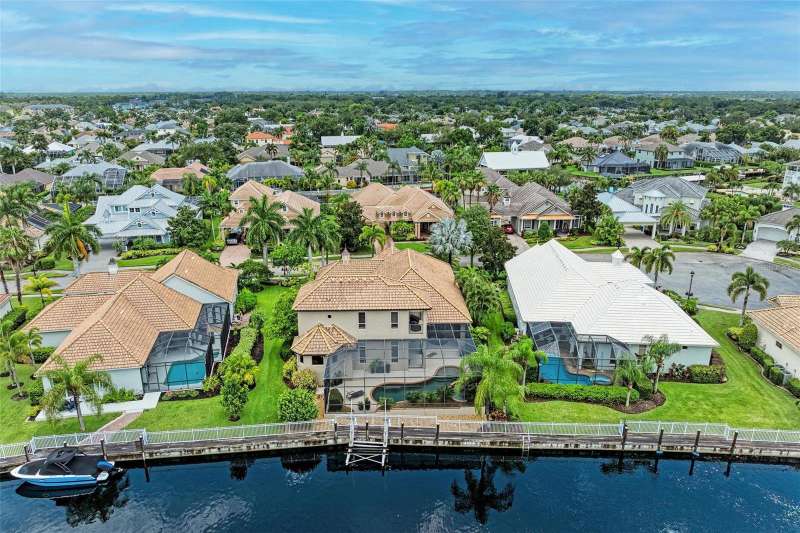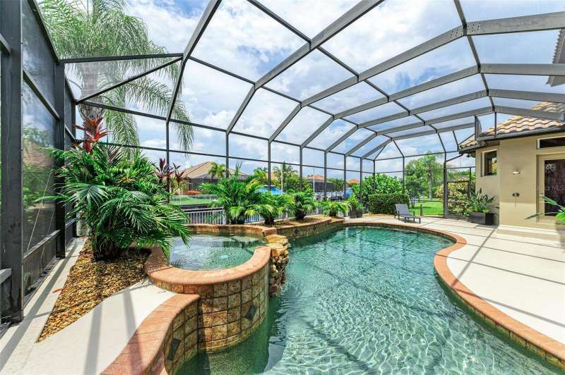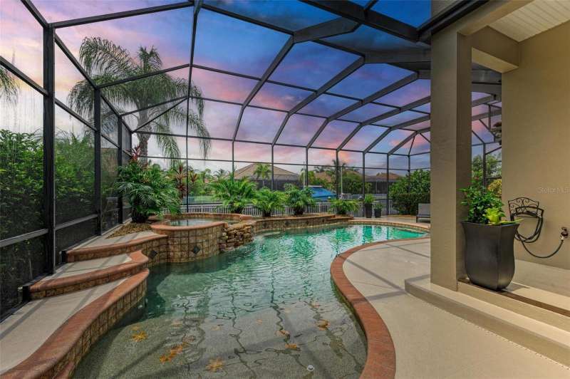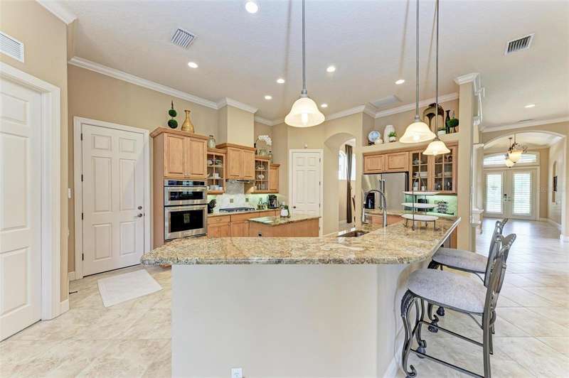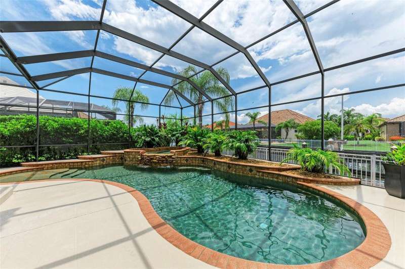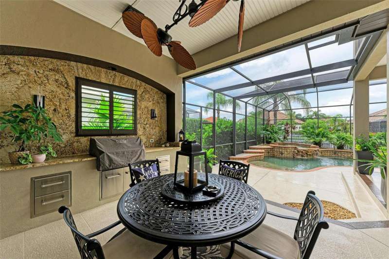 Experience the allure of this recently renovated waterfront residence, meticulously crafted by Arthur Rutenberg and brimming with luxurious enhancements. Nestled within the gated community of Harbor Walk, this home is a boater’s paradise, providing effortless entry to the Manatee River and stunning beaches. Boasting a 14,000 lb. lift attached to the seawall, it caters to avid boaters. Step into the grand foyer unveiling a four-bedroom, four-and-a-half-bath haven with an open layout. Ideal for entertaining, the home features a formal dining room, and a gourmet kitchen equipped with wood cabinets, granite countertops, a center island, high-end appliances and a gas cooktop. Enjoy picturesque views from the kitchen of the expansive lanai and pool area. Outdoors, a spacious setting awaits with a gas-heated saltwater pool 7-foot depth, complete with a tanning ledge, fountain, outdoor shower with half bath, and newly renovated outdoor kitchen. The private owner’s suite offers dual custom walk-in closets, a lavish bathroom with marble floors and countertops, an oversized shower, and a jacuzzi tub. Appreciate the soaring tray and coffered ceilings, tiled and satin honey maple finish hickory plank wood floors, and a dedicated home office space. Upstairs, a bonus room features a distinctive pyramid ceiling, alongside a private bedroom with a walk-in closet and full bathroom. The owners have invested generously in renovations and upgrades, including plantation shutters throughout, a fully redesigned outdoor barbecue kitchen with granite countertops and backsplash, top-tier appliances, upgraded lighting throughout the home, custom closets in the owner's suite, a soaking tub in the owner's suite bath, new mirrors, updated fixtures in all bathrooms, a renovated laundry room with granite countertops and new appliances, enhanced outdoor lighting, and numerous other improvements. This home is illuminated throughout by beautiful, oversized windows, showcasing its architectural charm, including crown molding and numerous intricate details. Located in a well-maintained community with no CDD fees, it offers easy access to Sarasota, St. Pete, Tampa, shopping, and pristine beaches. Discover your ideal Florida residence today!