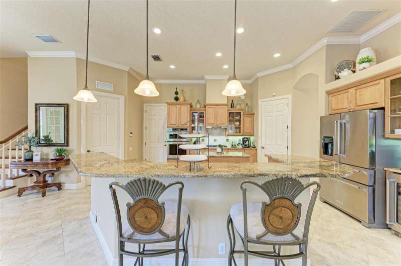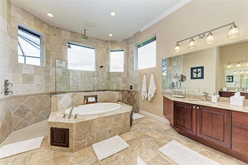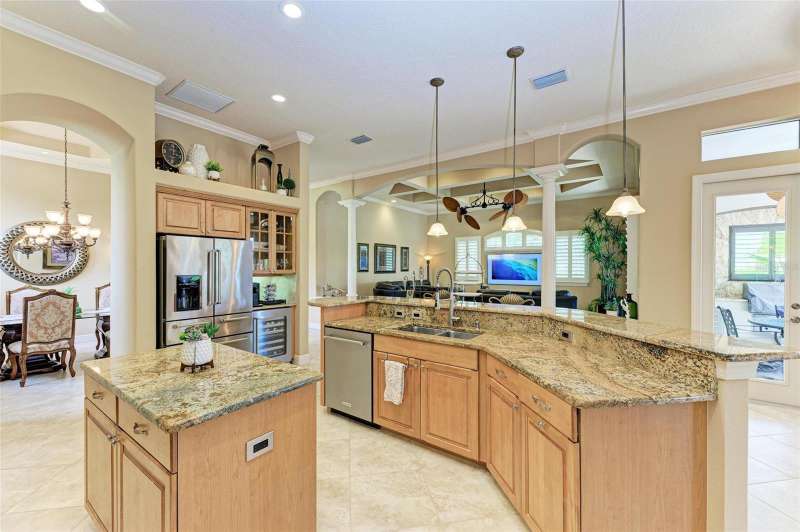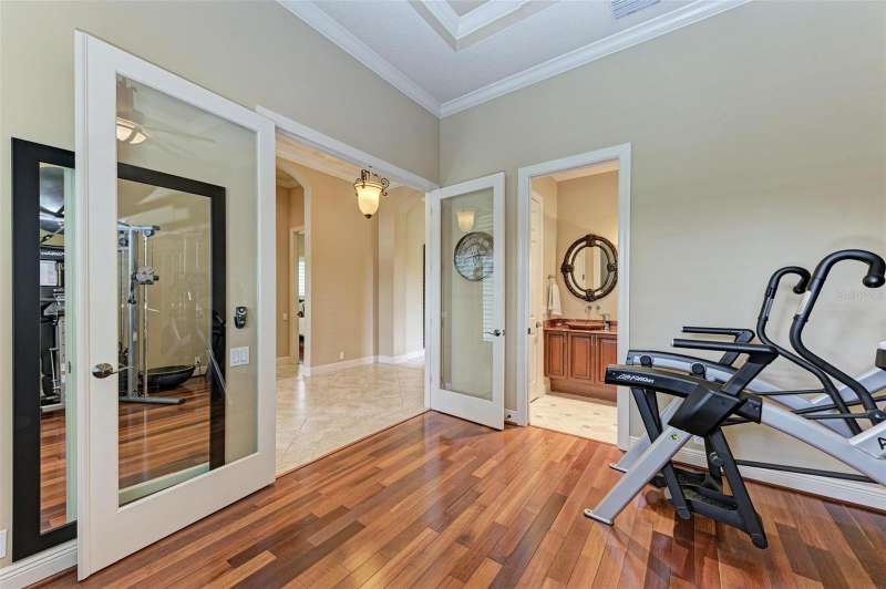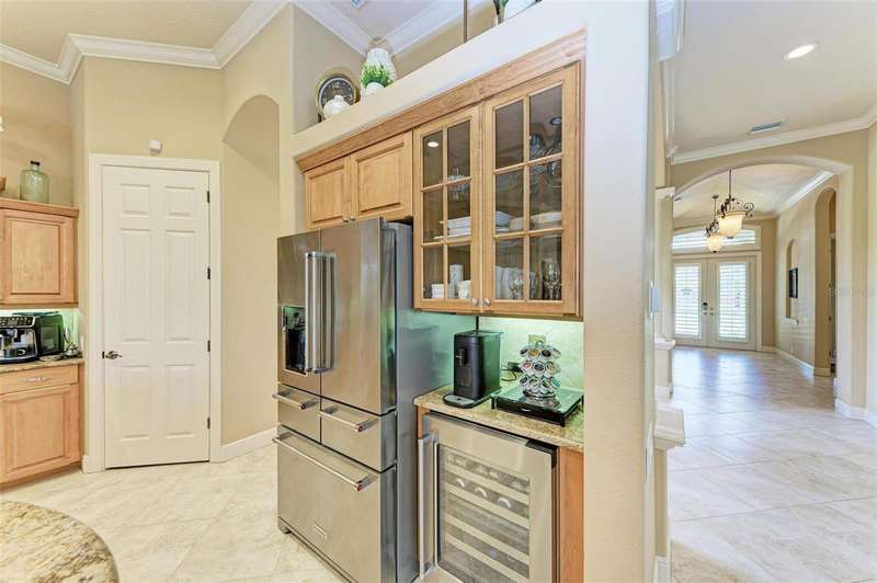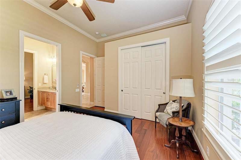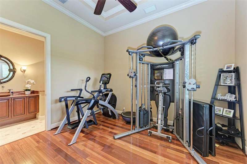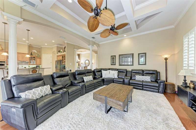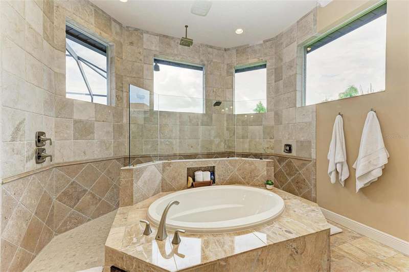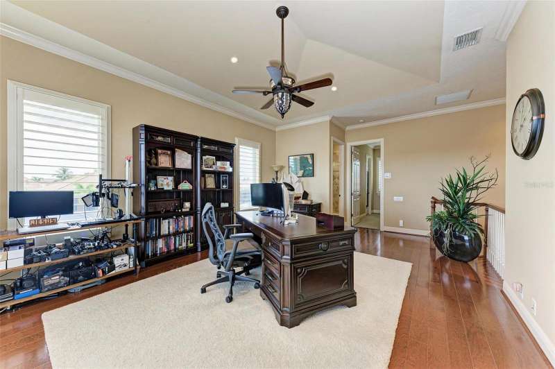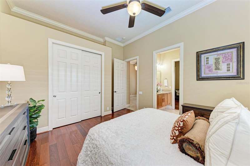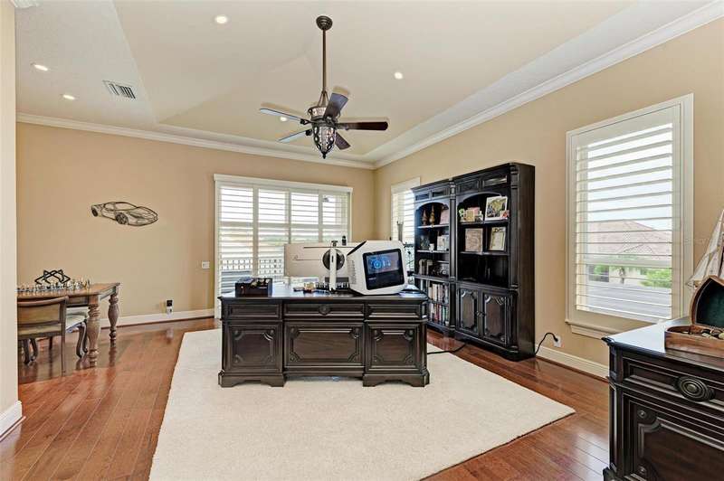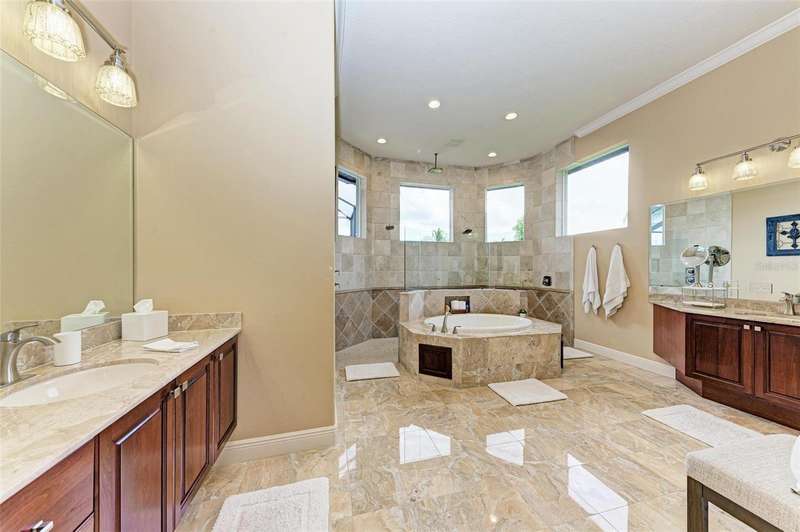 Experience the allure of this recently renovated waterfront residence, meticulously crafted by Arthur Rutenberg and brimming with luxurious enhancements. Nestled within the gated community of Harbor Walk, this home is a boater’s paradise, providing effortless entry to the Manatee River and stunning beaches. Boasting a 14,000 lb. lift attached to the seawall, it caters to avid boaters. Step into the grand foyer unveiling a four-bedroom, four-and-a-half-bath haven with an open layout. Ideal for entertaining, the home features a formal dining room, and a gourmet kitchen equipped with wood cabinets, granite countertops, a center island, high-end appliances and a gas cooktop. Enjoy picturesque views from the kitchen of the expansive lanai and pool area. Outdoors, a spacious setting awaits with a gas-heated saltwater pool 7-foot depth, complete with a tanning ledge, fountain, outdoor shower with half bath, and newly renovated outdoor kitchen. The private owner’s suite offers dual custom walk-in closets, a lavish bathroom with marble floors and countertops, an oversized shower, and a jacuzzi tub. Appreciate the soaring tray and coffered ceilings, tiled and satin honey maple finish hickory plank wood floors, and a dedicated home office space. Upstairs, a bonus room features a distinctive pyramid ceiling, alongside a private bedroom with a walk-in closet and full bathroom. The owners have invested generously in renovations and upgrades, including plantation shutters throughout, a fully redesigned outdoor barbecue kitchen with granite countertops and backsplash, top-tier appliances, upgraded lighting throughout the home, custom closets in the owner's suite, a soaking tub in the owner's suite bath, new mirrors, updated fixtures in all bathrooms, a renovated laundry room with granite countertops and new appliances, enhanced outdoor lighting, and numerous other improvements. This home is illuminated throughout by beautiful, oversized windows, showcasing its architectural charm, including crown molding and numerous intricate details. Located in a well-maintained community with no CDD fees, it offers easy access to Sarasota, St. Pete, Tampa, shopping, and pristine beaches. Discover your ideal Florida residence today!
