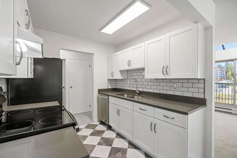 This beautifully maintained top-floor corner unit is bright, move-in ready, and full of charm. Featuring 2 generous bedrooms, 1 bathroom, fresh updates throughout including brand-new carpets, vinyl flooring, fresh paint, and SS appliances. Natural light pours in through large windows and a skylight creating a warm and airy atmosphere. A wraparound balcony further enhance the sense of space, making it perfect for relaxing or entertaining. You will also love the convenience of in-suite storage and your own hot water tank. Situated in a prime location close to public transit, schools, Guildford Town Centre, parks and with quick access to Highway 1. Whether you are a first-time buyer, downsizer, or investor, this is a fantastic opportunity to own in one of Surrey’s most desirable communities.
