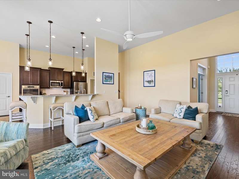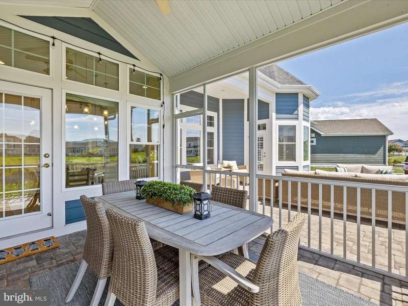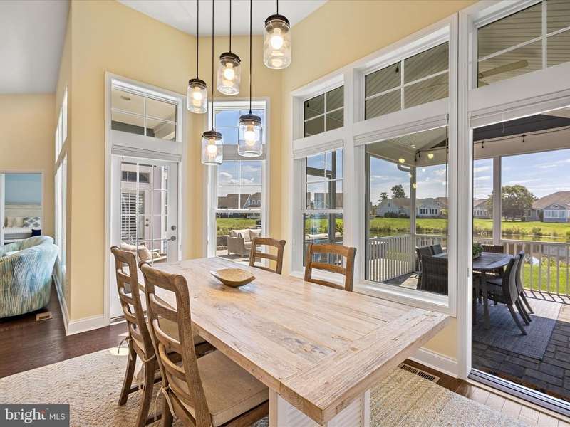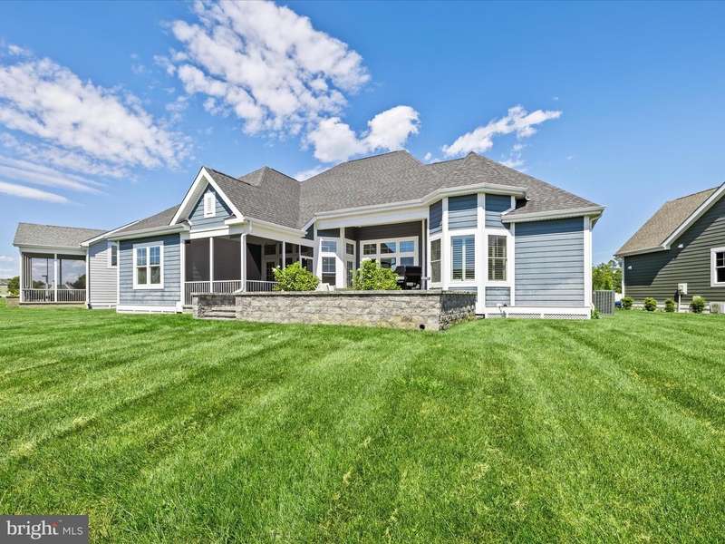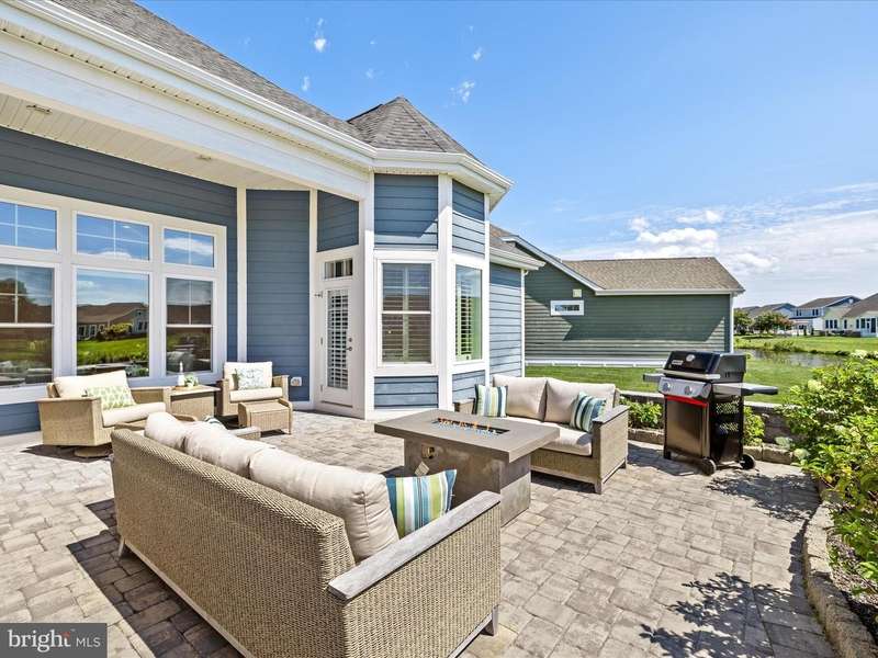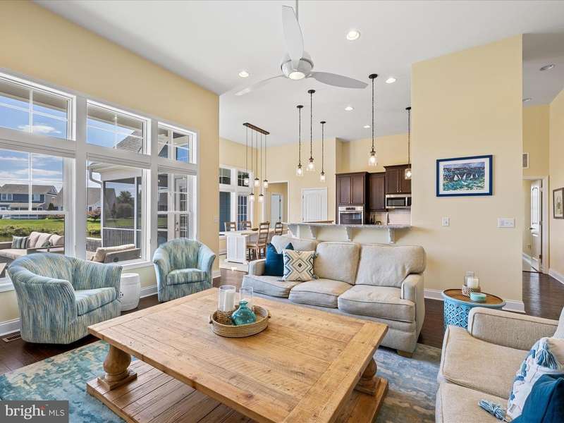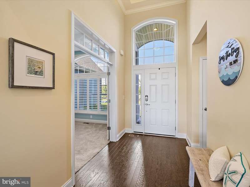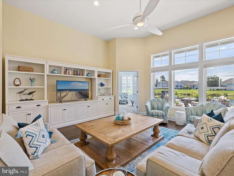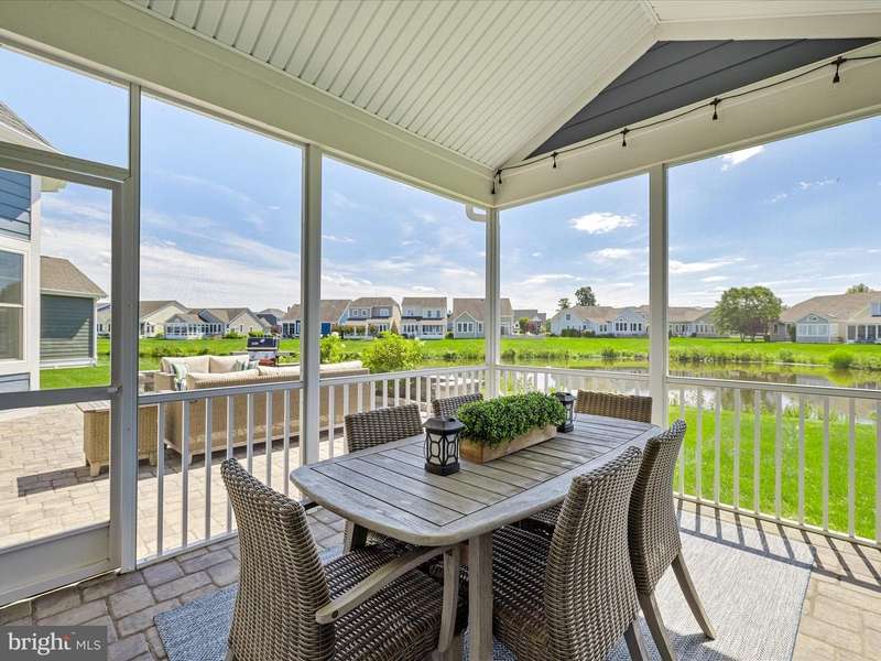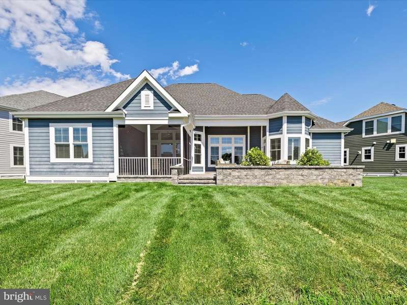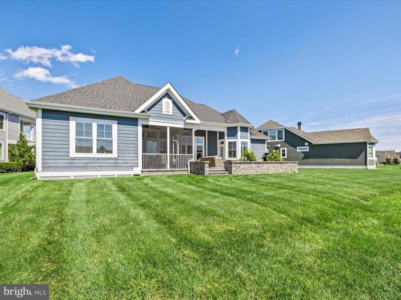 This coastal-style contemporary home is perfectly positioned on a premium lot with a tranquil pond directly behind it, offering both beauty and privacy. Thoughtfully landscaped with an impressive arched entrance, the home makes a striking first impression. Step inside the grand foyer, where attention to detail is immediately evident. Soaring ceilings, a deep tray ceiling with crown molding, and a dramatic atrium window flood the space with natural light. Rich hardwood flooring flows throughout the main living areas, while 12-foot ceilings, expansive transom windows, plantation shutters, and professional custom painting highlight the architectural elegance of this residence. The living room is designed for both comfort and style, featuring recessed lighting, a ceiling fan, and a custom built-in entertainment center. Just beyond, the luxurious primary suite is a private retreat with soaring tray ceilings, plantation shutters, access to the terrace, recessed lighting, and a peaceful sitting area. Two walk-in closets provide ample storage, while the spa-inspired en suite boasts dual vanities, a spacious double shower with bench seating, and a private water closet. The heart of the home is the chef's kitchen, appointed with sleek granite countertops, a timeless subway tile backsplash, pendant lighting, 42-inch soft-close cabinetry, and a suite of stainless-steel appliances including a gas cooktop and wall oven. A bi-level breakfast bar and center island offer both functionality and style. Adjacent to the kitchen, the dining area is surrounded by windows with serene pond views, while a screened porch extends the living space outdoors. The adjoining hardscape terrace is perfect for alfresco dining, grilling, or gathering around a firepit under the stars. Additional main-level living includes a private office with French atrium doors and a large Atrium window, a guest bedroom with vaulted ceilings, atrium window, plantation shutters and nearby full bath, plus two more spacious bedrooms (one with a tranquil pond view) served by another full hall bath. A well-appointed laundry room provides access to the two-car garage. The upstairs suite is ideal for visiting guests, offering a generous room with a deep walk-in closet and full bath. An atrium window here frames views of the landscaped common areas and nearby play space. Additional features include a central vacuum system and an owned security system for peace of mind. Life at The Peninsula on the Indian River Bay is resort living at its finest. This prestigious community is home to a Jack Nicklaus Signature Golf Course and an impressive array of amenities designed for every lifestyle. Dine at Terrace Grille, stroll the private beach and pier, or unwind at the clubhouse with billiards, meeting spaces, and multiple dining venues. Fitness and recreation options abound, with indoor and outdoor pools, a wave pool, state-of-the-art gym, tennis and basketball courts, and a full-service spa. Nature lovers will appreciate boardwalk trails, a scenic nature center, and the beauty of Lingo Creek. This is more than just a home, it's a lifestyle. Come experience comfort, elegance, and resort-style living at The Peninsula. Schedule your private showing today!