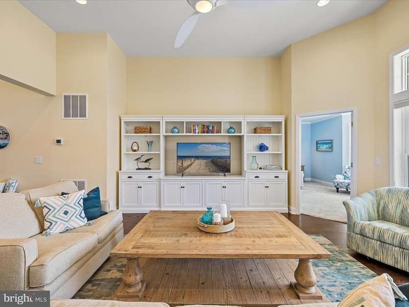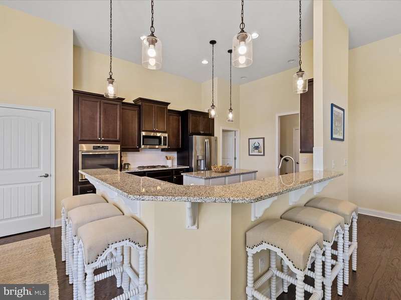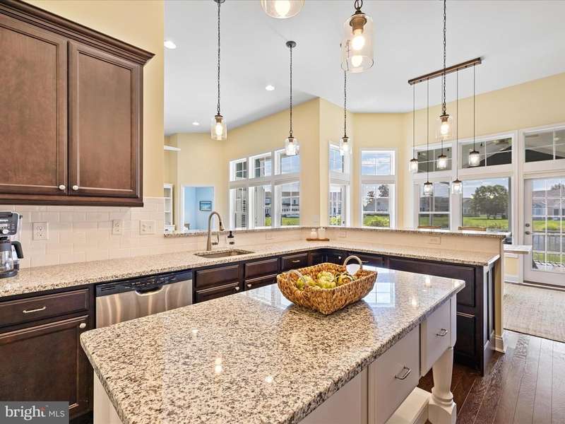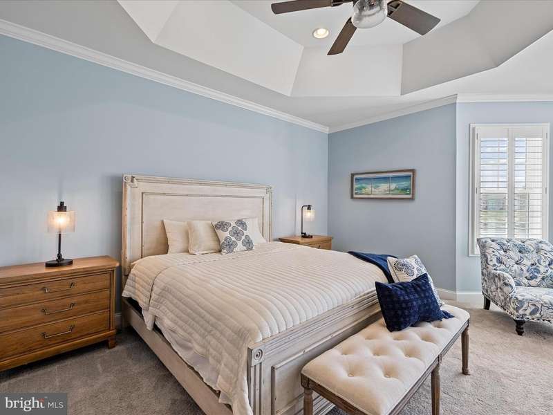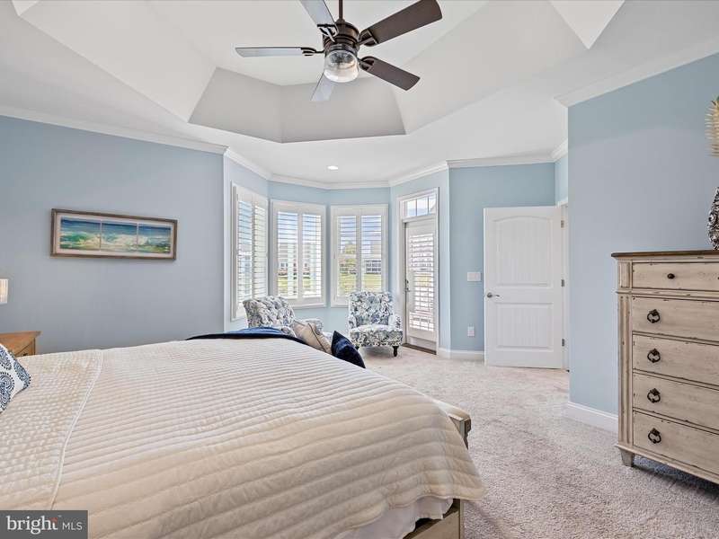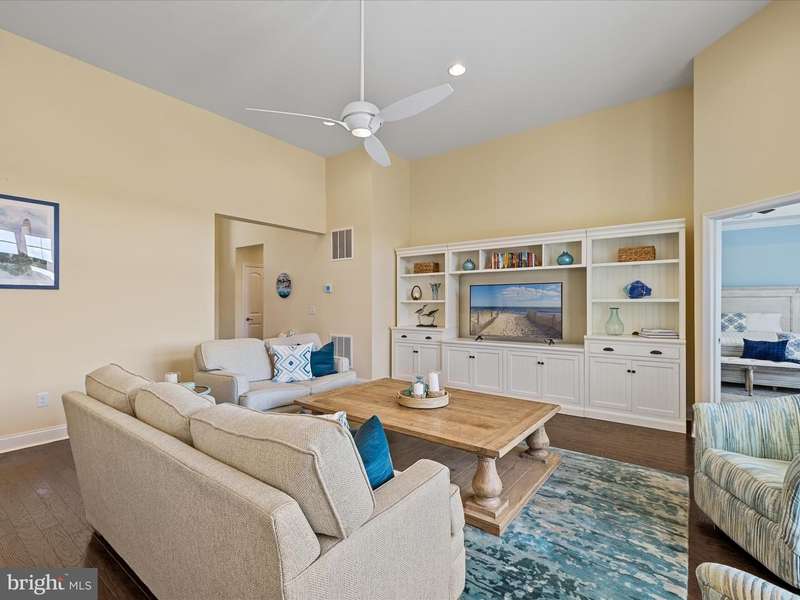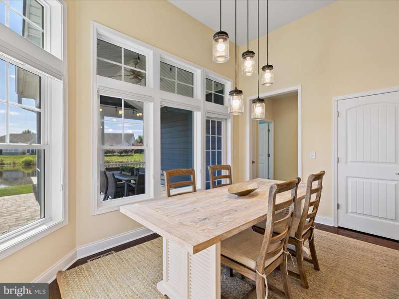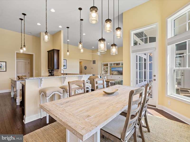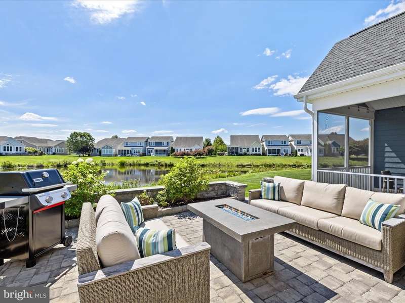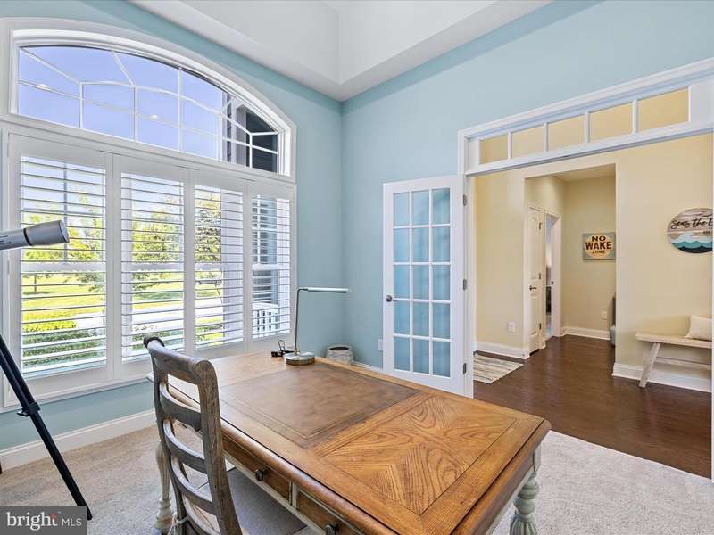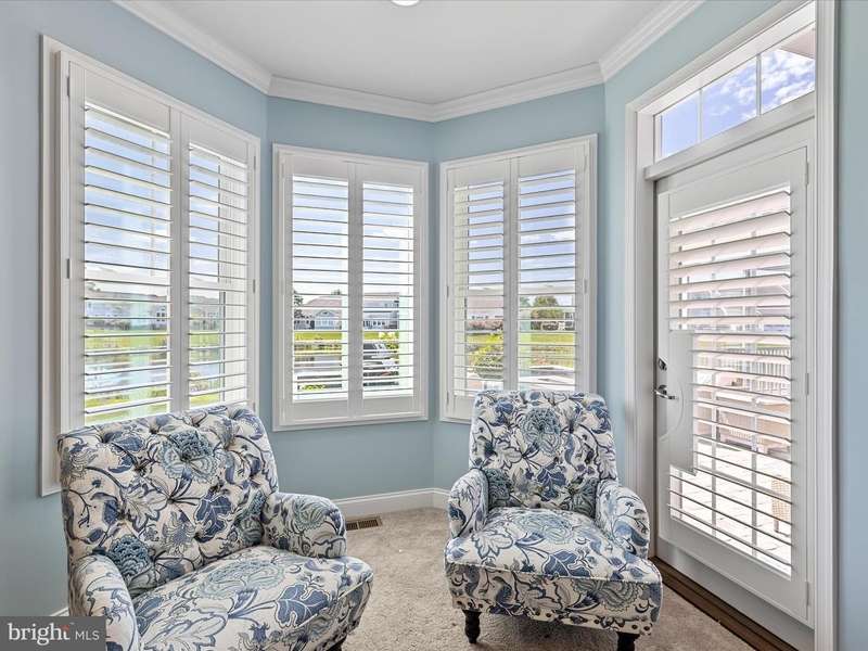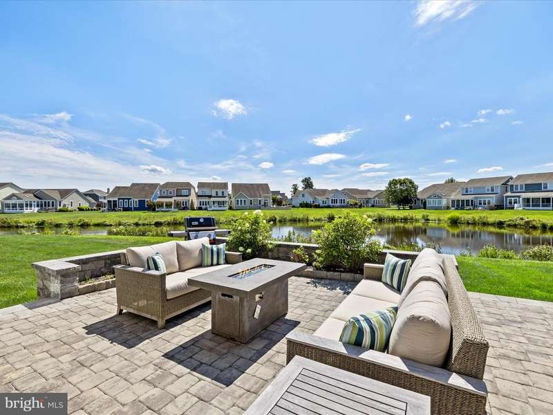 This coastal-style contemporary home is perfectly positioned on a premium lot with a tranquil pond directly behind it, offering both beauty and privacy. Thoughtfully landscaped with an impressive arched entrance, the home makes a striking first impression. Step inside the grand foyer, where attention to detail is immediately evident. Soaring ceilings, a deep tray ceiling with crown molding, and a dramatic atrium window flood the space with natural light. Rich hardwood flooring flows throughout the main living areas, while 12-foot ceilings, expansive transom windows, plantation shutters, and professional custom painting highlight the architectural elegance of this residence. The living room is designed for both comfort and style, featuring recessed lighting, a ceiling fan, and a custom built-in entertainment center. Just beyond, the luxurious primary suite is a private retreat with soaring tray ceilings, plantation shutters, access to the terrace, recessed lighting, and a peaceful sitting area. Two walk-in closets provide ample storage, while the spa-inspired en suite boasts dual vanities, a spacious double shower with bench seating, and a private water closet. The heart of the home is the chef's kitchen, appointed with sleek granite countertops, a timeless subway tile backsplash, pendant lighting, 42-inch soft-close cabinetry, and a suite of stainless-steel appliances including a gas cooktop and wall oven. A bi-level breakfast bar and center island offer both functionality and style. Adjacent to the kitchen, the dining area is surrounded by windows with serene pond views, while a screened porch extends the living space outdoors. The adjoining hardscape terrace is perfect for alfresco dining, grilling, or gathering around a firepit under the stars. Additional main-level living includes a private office with French atrium doors and a large Atrium window, a guest bedroom with vaulted ceilings, atrium window, plantation shutters and nearby full bath, plus two more spacious bedrooms (one with a tranquil pond view) served by another full hall bath. A well-appointed laundry room provides access to the two-car garage. The upstairs suite is ideal for visiting guests, offering a generous room with a deep walk-in closet and full bath. An atrium window here frames views of the landscaped common areas and nearby play space. Additional features include a central vacuum system and an owned security system for peace of mind. Life at The Peninsula on the Indian River Bay is resort living at its finest. This prestigious community is home to a Jack Nicklaus Signature Golf Course and an impressive array of amenities designed for every lifestyle. Dine at Terrace Grille, stroll the private beach and pier, or unwind at the clubhouse with billiards, meeting spaces, and multiple dining venues. Fitness and recreation options abound, with indoor and outdoor pools, a wave pool, state-of-the-art gym, tennis and basketball courts, and a full-service spa. Nature lovers will appreciate boardwalk trails, a scenic nature center, and the beauty of Lingo Creek. This is more than just a home, it's a lifestyle. Come experience comfort, elegance, and resort-style living at The Peninsula. Schedule your private showing today!