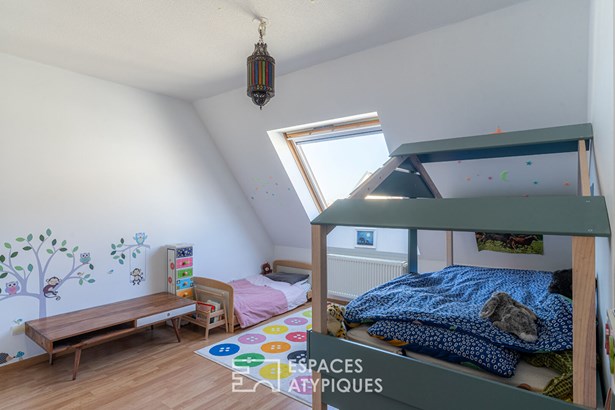 From the moment you enter, the interior layout impresses with its coherence and clarity. The 30 m2, south-east-facing living room features a lounge and dining room, with direct access to the terrace, ideal for relaxing moments or sunny meals. The independent, fully-equipped kitchen is complemented by an adjoining pantry. This level also includes a bedroom, a study and a bathroom with walk-in shower. Numerous windows let in generous amounts of light, and some rooms offer unobstructed views of the Vosges mountains and the Black Forest.