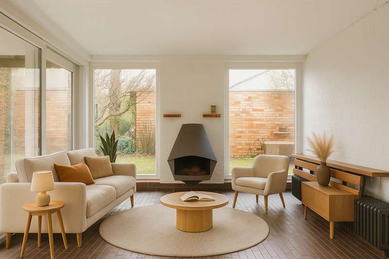 This extraordinary detached house in Refrath impressively combines timeless architecture, spaciousness and history. It was designed and built in the 1960s by a well-known sculptor - not only as a place to live, but also as a retreat for creative work. Her studio was the heart of the house for decades and has given the property a special character to this day. Situated on a south-west-facing plot of over 1,300 m², the flat-roofed house with no basement offers a living area of around 195 m² and noticeably more space thanks to its open and spacious design. Large windows and a well thought-out floor plan allow plenty of light into the house and create a harmonious connection between inside and outside. The first floor impresses with a spacious living area, the former studio, a cozy fireplace room and direct access to the terrace - ideal for relaxing hours in the countryside. On the upper floor, there are several individually usable rooms with plenty of potential for personal design. The fittings reflect quality and character: stone, parquet and tiled floors, a wood-burning stove in the kitchen, a new front door and mostly triple glazing provide a solid foundation. The substance of the house is also well maintained and ready for further development by a new generation. This house is more than just a home - it is an inspiring place with history, tranquillity and possibilities. Ideal for people with an appreciation of architecture, art and space to develop.