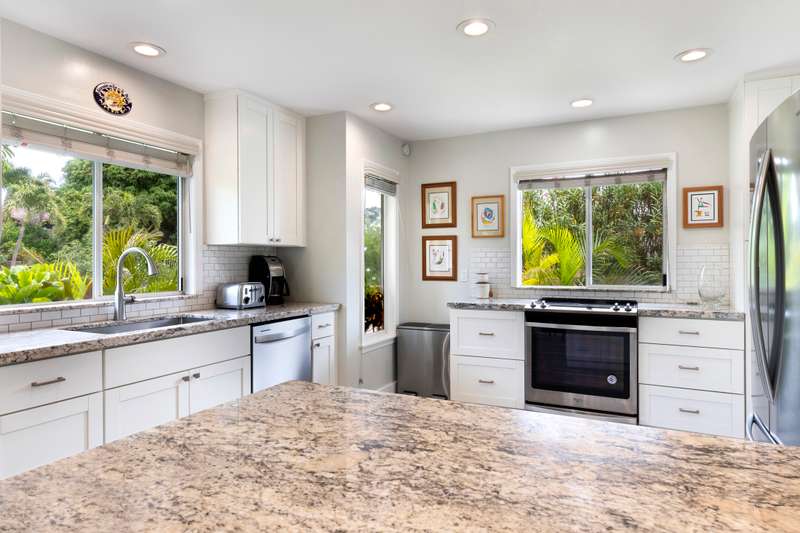 Stainless Whirlpool appliances & chef-style Kraus sink