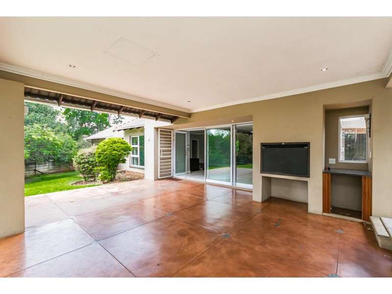 This beautiful home offers spacious living with three well-sized bedrooms situated in one wing of the house, accompanied by two bathrooms. The main bedroom features a generous layout, a walk-in closet, and a stunning full en-suite bathroom. Upon entry, you?ÇÖre welcomed by a large covered porch with a built-in braai, perfectly positioned to overlook the sparkling swimming pool and landscaped garden. Elegant stacking doors open into a bright and airy open-plan lounge, dining area, and a modern kitchen complete with granite countertops and a gas stove?Çöideal for effortless entertaining. On the opposite wing of the home, you?ÇÖll find a versatile second living area, perfect as a study or enclosed entertainment space. This section also provides access to a private one-bedroom flatlet featuring its own bathroom, compact kitchen, and living area. The flatlet is seamlessly integrated with the main house, making it ideal for extended family or guests. Additional features include three garages and ample parking space for visitors. Water & lights for tenants account, as well as pool and garden maintenance. If you?ÇÖd like to experience this charming home in person, get in touch to schedule your exclusive viewing!
