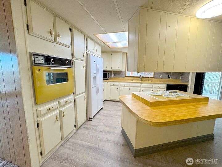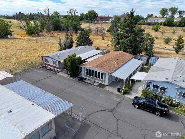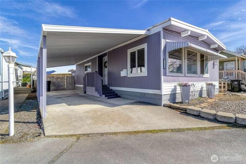 Simple living in this 55+ community has never been so easy! This spacious 1,334 sqft home has 2 bedrooms, 1.75 baths, and an open floor plan ready and waiting for you in Rancho Villa. With a newer (2024) HVAC, you can stay cool in the summer or enjoy some fresh air from either side of the home on both covered porches. Enjoy the sweet and easy life with a low maintenance yard. In the kitchen, you will find vintage touches and plenty of storage for all of your entertaining needs.