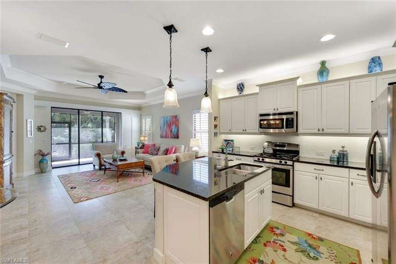 Offered Turnkey and perfectly positioned within the desirable community of Villa Palmeras, this beautifully maintained twin villa offers an ideal blend of comfort, style, and convenience. Nestled in a gated enclave in the heart of Estero, this residence features 2 bedrooms plus a versatile den (easily used as a third bedroom), 2 full baths, and a spacious two-car attached garage. Step inside to discover an open-concept kitchen designed for both functionality and charm complete with a center island, stainless steel appliances including a gas range, granite countertops, tile backsplash, and crisp white cabinetry. The inviting primary suite features a large walk-in closet and an ensuite bath with dual vanities and a walk-in shower. Enjoy tranquil views of the preserve from your screen-enclosed lanai, the perfect spot to relax and unwind. Additional highlights include a paver driveway and walkway leading to the attached garage. Residents of Villa Palmeras enjoy a variety of amenities such as a secure gated entrance, natural gas, a resort-style pool and spa with covered cabanas, BBQ area, and a 300-foot elevated boardwalk meandering through the preserve. Conveniently located near I-75, this community offers easy access to Naples, Fort Myers, and Southwest Florida's beautiful beaches, as well as RSW International Airport, Coconut Point Mall, Gulf Coast Town Center, Miromar Outlets, Hertz Arena, FGCU, and top-rated medical facilities.