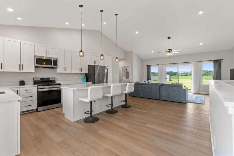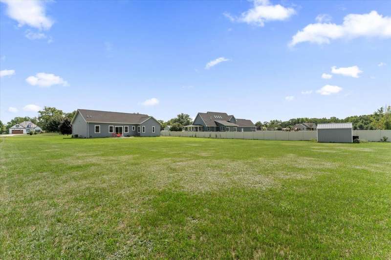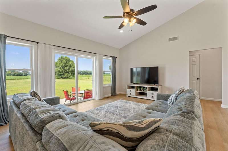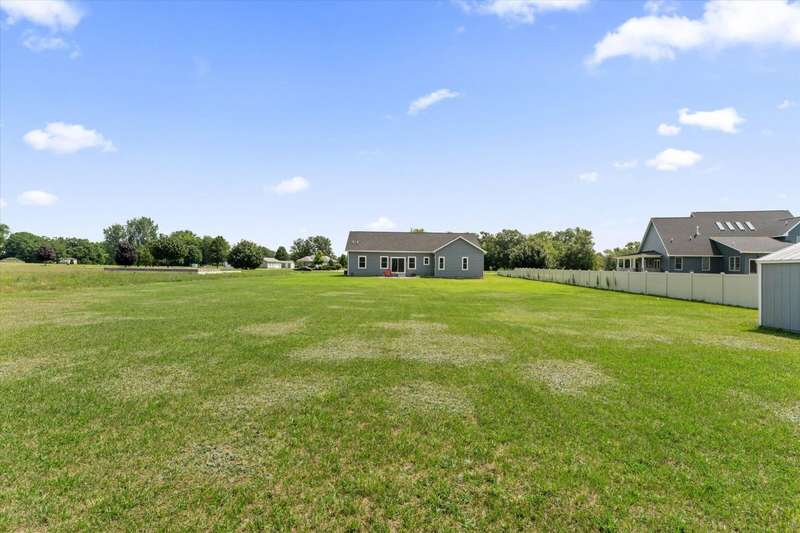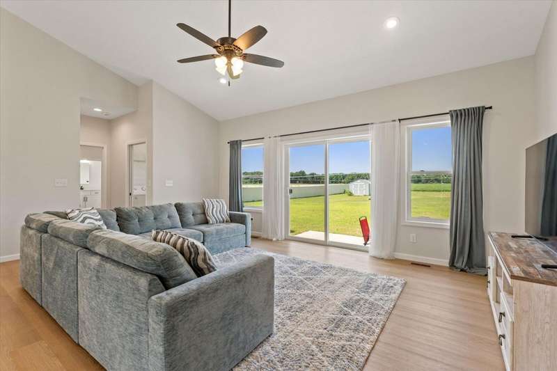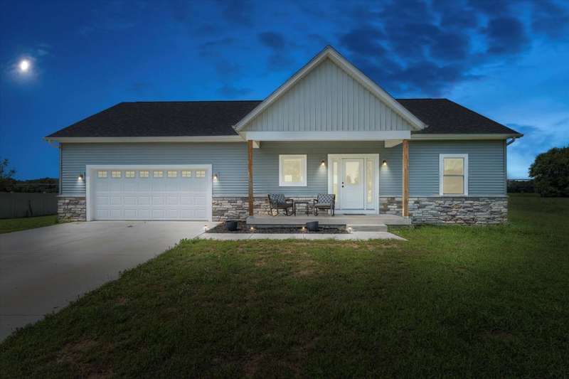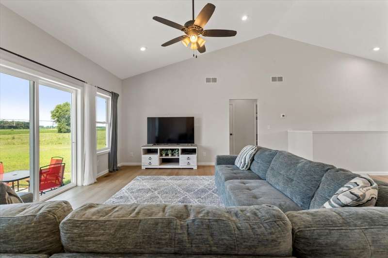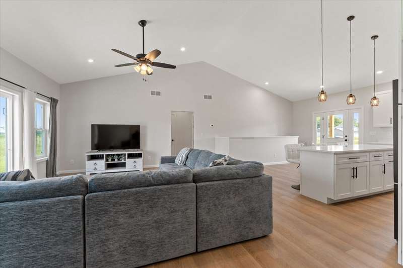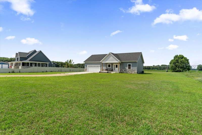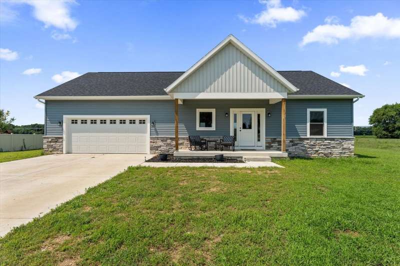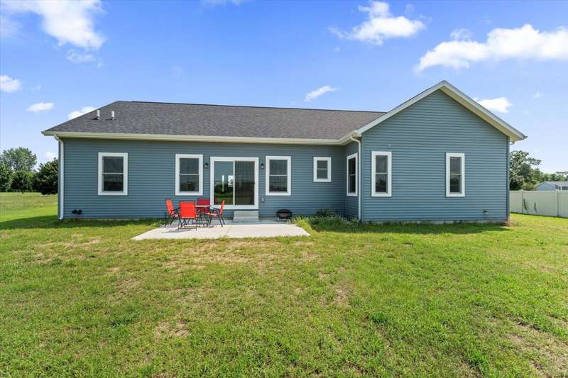 OPEN HOUSE Wednesday Aug 13, 5-7:00 pm Here it is!! A Newer RANCH built in 2023 located close to everything in charming Falcon Cove Subdivision. The moment you step inside you will be captivated by the openness, the airy feel of white cabinets, the cathedral ceiling and the sprawling center island that welcomes everyone to come in and stay a while! The split floor plan offers the expansive primary bedroom with lovely modern tiled walk in shower. The living room is stunning with the large sliders that welcome great views of the very spacious yard! The unfinished lower level is ready for your final touch and has 2 egress windows on each end to offer absolute living space! New RANCHS are hard to find, this one is quality and very thought out.