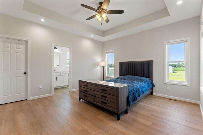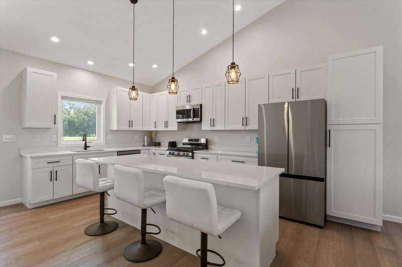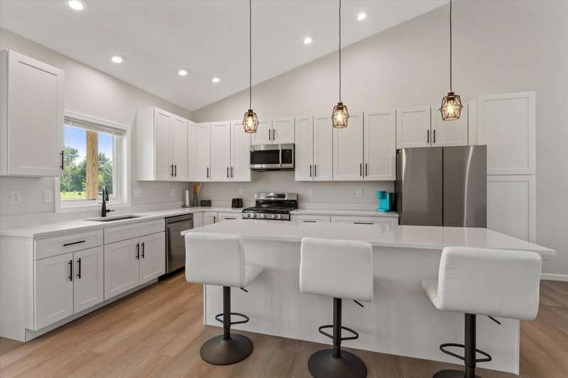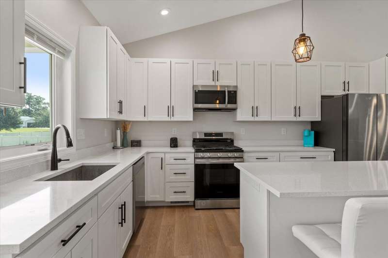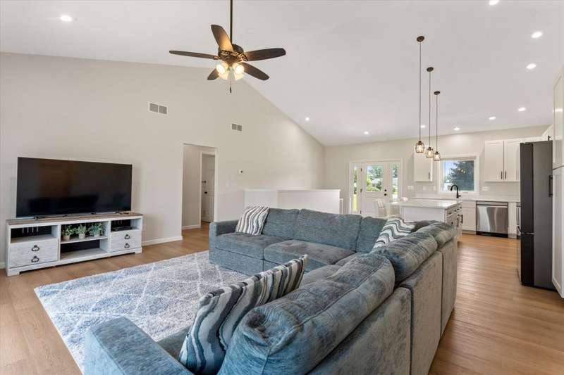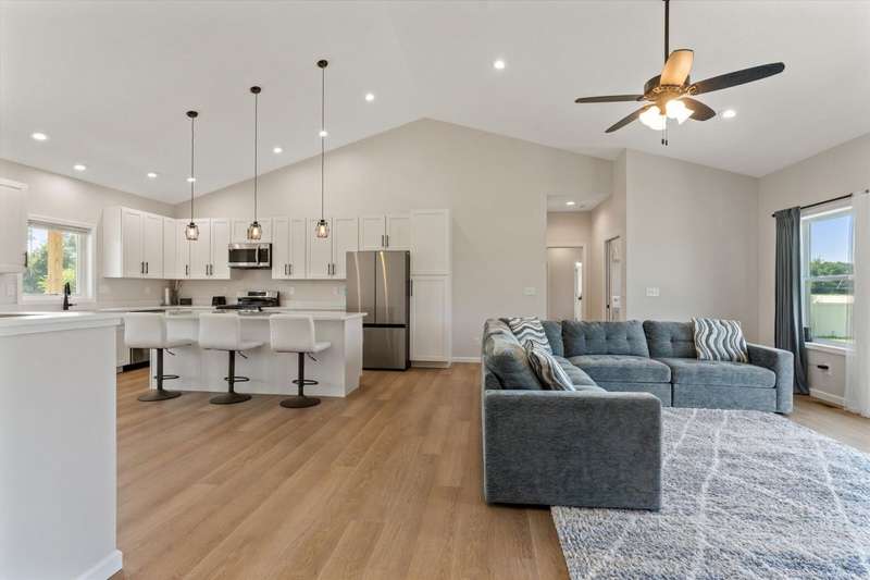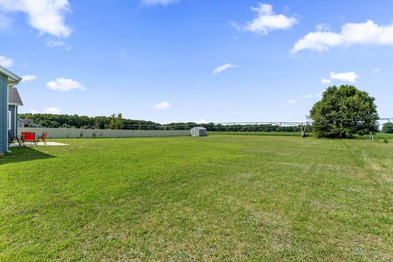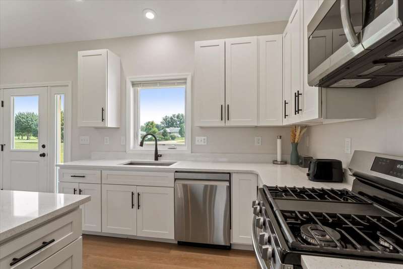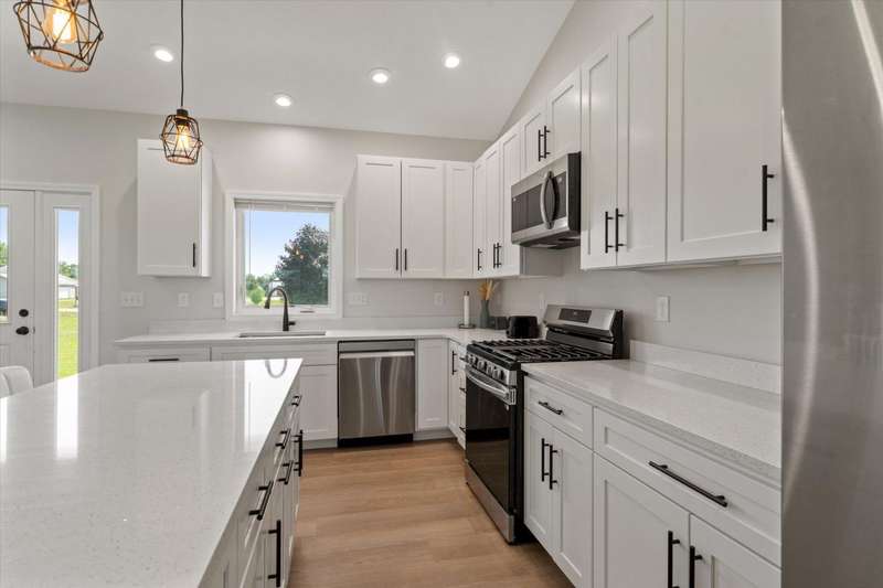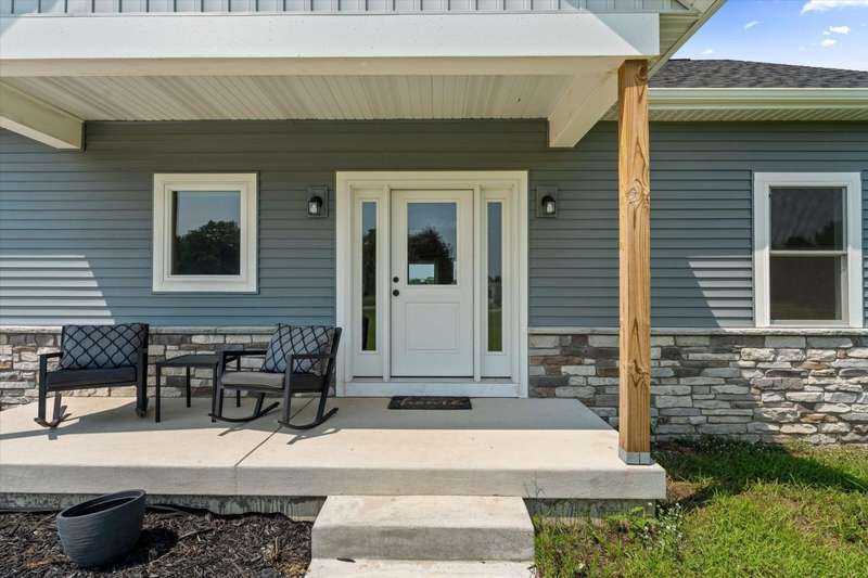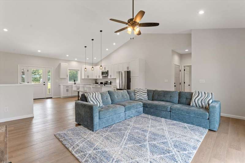 OPEN HOUSE Wednesday Aug 13, 5-7:00 pm Here it is!! A Newer RANCH built in 2023 located close to everything in charming Falcon Cove Subdivision. The moment you step inside you will be captivated by the openness, the airy feel of white cabinets, the cathedral ceiling and the sprawling center island that welcomes everyone to come in and stay a while! The split floor plan offers the expansive primary bedroom with lovely modern tiled walk in shower. The living room is stunning with the large sliders that welcome great views of the very spacious yard! The unfinished lower level is ready for your final touch and has 2 egress windows on each end to offer absolute living space! New RANCHS are hard to find, this one is quality and very thought out.