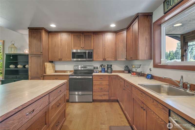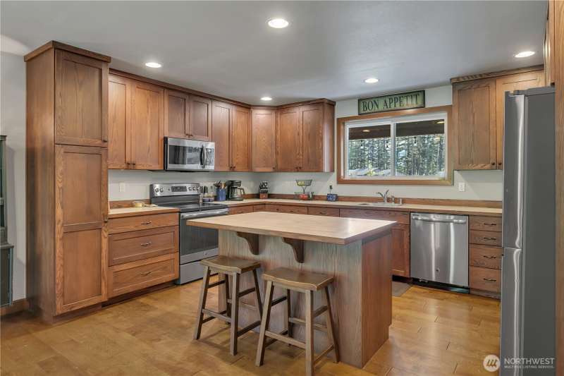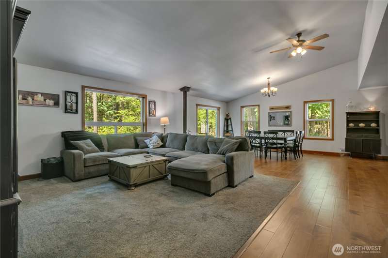 Custom Built Rambler where the deer roam, bunnies hop, eagles soar freely. Gated community with estate homes. Get away from it all but you are within 10 minutes to 4-Corners, Maple Valley and 15 minutes to Enumclaw. Hard to find 5 acres with a newer house for this price anywhere! Beautiful setting with Amazing Kitchen with ample storage with an open concept to the dining area, living area and slider to the private backyard. This home flows so nice and offers a warm whiskey barrel color flooring with matching cabinetry. Dream property for horse and animal lovers. Primary suite is beautiful with lots of windows overlooking the trees and green wilderness, large walk-in closet, 5-pc bath with double sinks. Truly a dream home and setting!