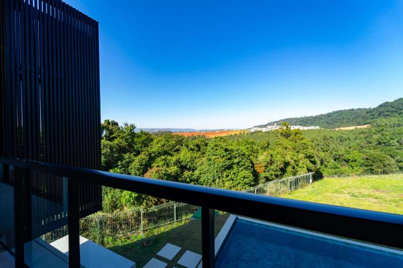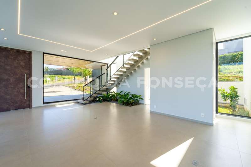 Quatro amplas suítes no piso superior e uma suíte/escritório e home Theater no piso térreo. Espaço gourmet, piscina, deposito e três vagas cobertas. Projeto de automação com infraestrutura para fotovoltaica e solar.