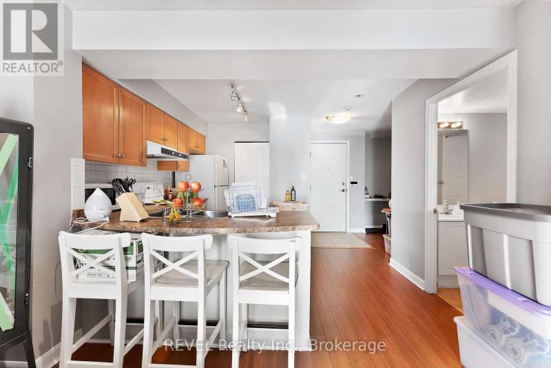 Ideally situated in the heart of downtown Toronto's vibrant Moss Park neighbourhood, this bright and stylish 1-bedroom + den condo offers the perfect blend of comfort, convenience, and urban energy. This thoughtfully designed suite features in-suite laundry, a private balcony, and a versatile den-ideal for a home office, reading nook, or creative workspace. Don't stress about utilities, the condo fee covers it all - heat, hydro and water all inclusive! Residents enjoy access to an impressive lineup of building amenities including an indoor hot tub and sauna, a rooftop terrace with stunning city views, a bi-level fitness centre, basketball court, party room, and 24-hour concierge services for added peace of mind. Step outside and discover some of Toronto's most iconic destinations just minutes away: the Distillery District, St. Lawrence Market, the Financial District, St. Michael's Hospital, and an endless selection of shops, cafés, parks, and transit options. This is downtown living at its finest-- modern, connected, and effortlessly convenient. (id:7434)