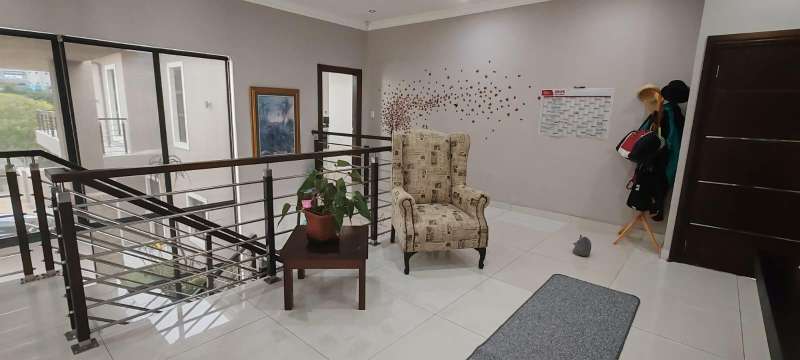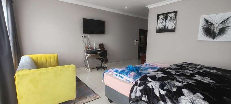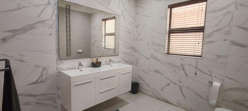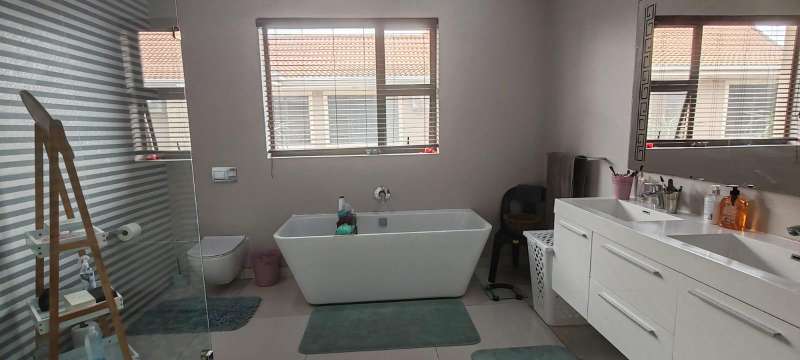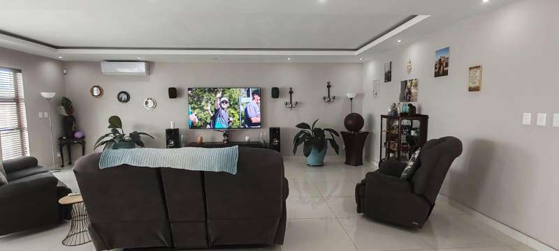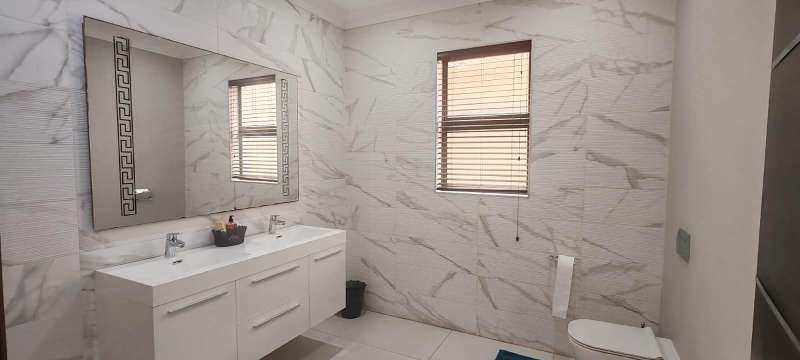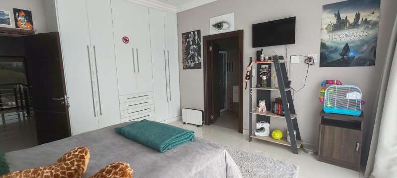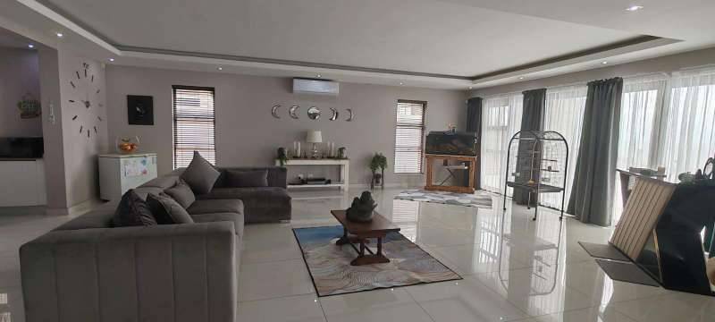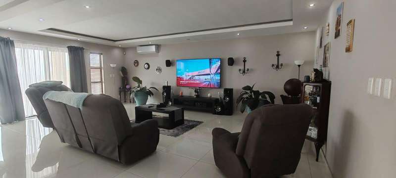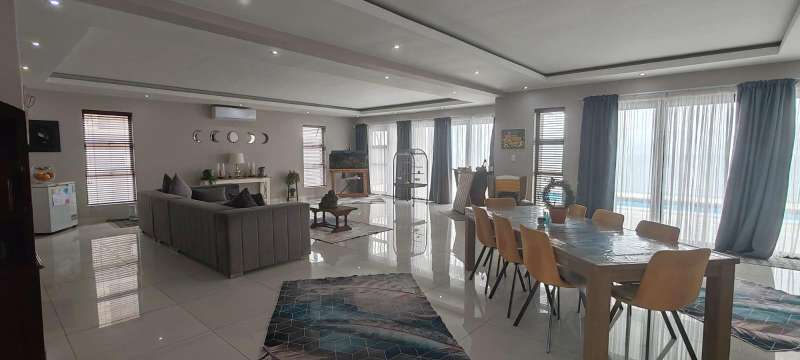 Step into this picturesque property boasting an Open plan Lounge, Diningroom and Kitchen with expansive doors opening out to the Swimming pool and 180 Degrees Sea View! Upstairs, The Main bedroom has an en-suite bathroom with bath and shower as well as a walk in closet 3 more bedrooms with en-suite bathrooms with showers. The 5 Bedroom leads to an additional room (Office/ Studio or extra bedroom) A lovely level ground yard with patio, swimming pool, stunning sea views and double garages! Water & Electricity is billed monthly Call me now to view!
