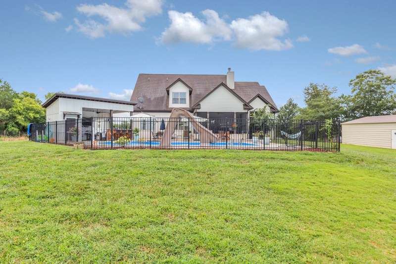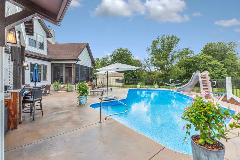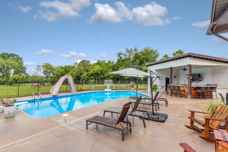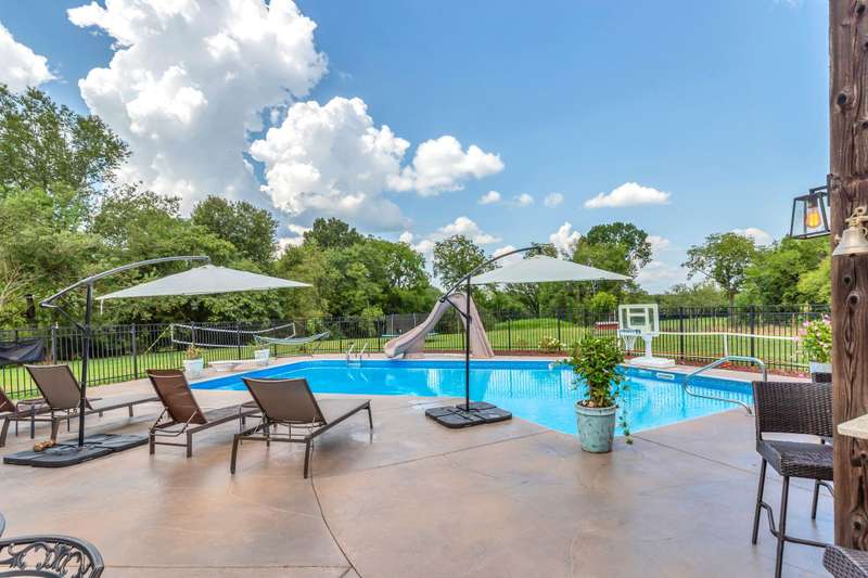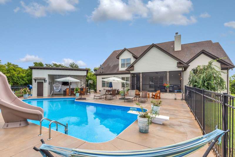 Country Living Just Minutes from the City! Incredible 4 bedroom, 4 bath home on 5.24 acres backing up to the scenic East Fork Stoney River. Designed with entertaining in mind, this home features an open floor plan, gleaming hardwood floors, granite countertops, and a huge bonus room over the 3-car garage. The downstairs office includes a closet and can easily serve as a 5th bedroom. Step outside to your own private retreat--complete with a sparkling pool, pool house with half bath & outdoor shower, & a covered outdoor kitchen perfect for gatherings. Relax on the covered, screened back porch! Take advantage of the spacious storage building on the property. You can even bring your chickens! So much better than new, house is only 6 years old! A rare opportunity to enjoy the best of both worlds--peaceful country living with convenient access to city life! *Inside pictures coming soon*