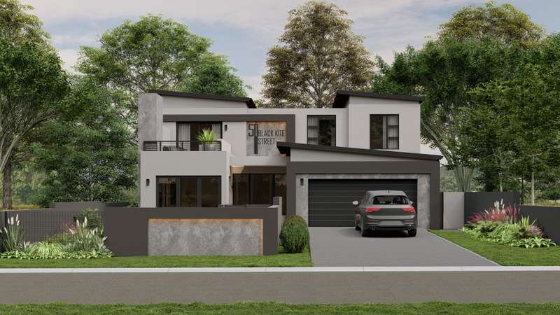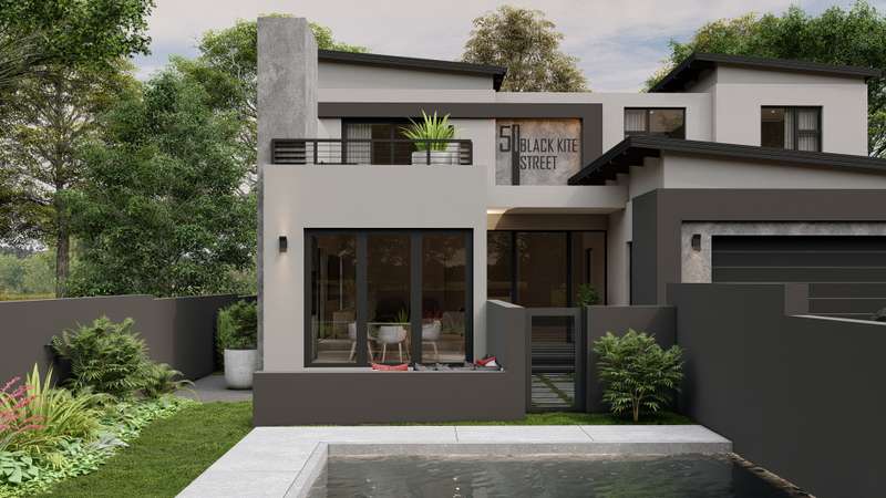 Elevate your lifestyle in this stunning residence, where contemporary design and functionality blend seamlessly, inspiring a sense of luxury, sophistication, and limitless possibility. The expansive main bedroom serves as a serene sanctuary, complete with a spacious walk-in closet, a full ensuite bathroom featuring a double shower, and a private balcony perfect for savoring tranquil moments. Bedrooms 2 and 3 share a full bathroom, fostering a sense of unity and togetherness. The open-plan kitchen, dining, and lounge areas harmonize effortlessly with a covered patio, where a built-in braai awaits, creating an uplifting atmosphere perfect for entertaining and making memories. Stacking doors provide direct access to a BOMA, featuring a firepit and built-in seating, overlooking the pool and garden, inviting endless possibilities for outdoor entertainment and connection. The modern kitchen is appointed with a breakfast nook, separate scullery, and pantry, inspiring creativity and warmth. Additional features include a guest bathroom downstairs, ample parking, and direct access from the double garage into the foyer, ensuring a seamless and empowering living experience. This extraordinary residence offers the ultimate blend of modern estate living, luxurious comfort, and endless possibilities, empowering you to unlock your full potential and live life to the fullest. NB: Construction in progress. For more information and appointment contact us