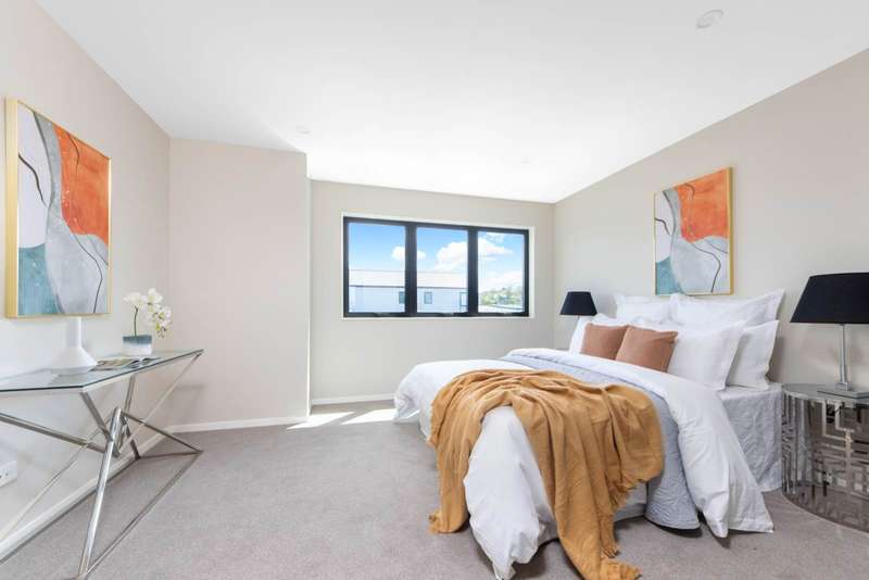 Step into contemporary comfort with this thoughtfully designed three-level home, perfectly positioned in Pakuranga Central. With Woolworths, cafés, shops, and essential amenities just a short walk away - and the motorway only a few minutes from your doorstep - this location truly offers the best of convenience and lifestyle. Ground Floor • Internal access single garage • A comfortable bedroom and a modern family bathroom - ideal for guests, extended family, or a home office • Direct access to a sun-soaked backyard, perfect for entertaining or relaxing Second Floor • Light-filled open-plan kitchen, dining, and lounge area - ideal for family gatherings and entertaining • Gourmet Bosch appliances and ample cabinetry make the kitchen both stylish and practical • Enjoy seamless indoor-outdoor flow with a sunny balcony, great for alfresco dining or morning coffee Top Floor • Two spacious master bedrooms, each with a private ensuite and generous walk-in wardrobe • A clever layout designed for comfort, privacy, and modern family living Top School Zones Zoned for Pakuranga Heights School, Pakuranga Intermediate, and Edgewater College, plus walking distance to the prestigious Saint Kentigern College - this home is perfectly positioned for quality education options. Why You’ll Love It • Prime corner site with excellent natural light throughout • Spacious, low-maintenance living over three levels • Located in a family-friendly, high-demand suburb Don’t miss this rare opportunity to secure a stylish, low-maintenance home in one of Pakuranga’s most connected and sought-after neighbourhoods. Contact us today to book your private viewing! This development is in high demand, hurry to grab a bargain.