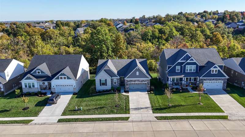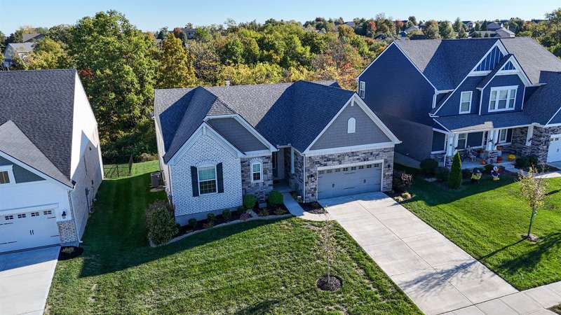 Better than new full brick ranch in Thornwilde neighborhood. Attractive exterior features soldiered brick, stone accents, & lush landscaping. This Drees built Hialeah boasts high-end luxury vinyl flooring & 10ft soaring ceilings. Popular split bedroom open floor-plan. Large living room offers stone surround gas fireplace & overhead fan. Gourmet kitchen has 42 inch cabinets w/ crown molding, high-end SS appliances, island, tiled backsplash, & walk-in pantry. Dining area w/ wood views & walk out to the partially covered deck. Primary suite includes fan, walk-in closet, & adjoining bath w/ two separate vanities, large tub, walk-in shower, & gorgeous tile. Two add'l bedrooms, 2nd full bath & laundry conveniently on the first level. 9ft pour basement has high-end custom finishes, LVT, walkout, Stone wall accents & wet bar area. 4th bedroom, 3rd full bath, plus spacious exercise room. Peaceful wooded view from the patio or deck. All appliances, TVs, high-end sound & security systems included. Low county taxes. Many community amenities including pool, clubhouse, walking trails, & tennis courts. Can't be replicated at this price!