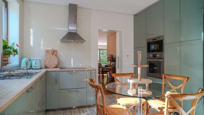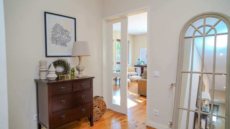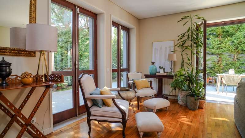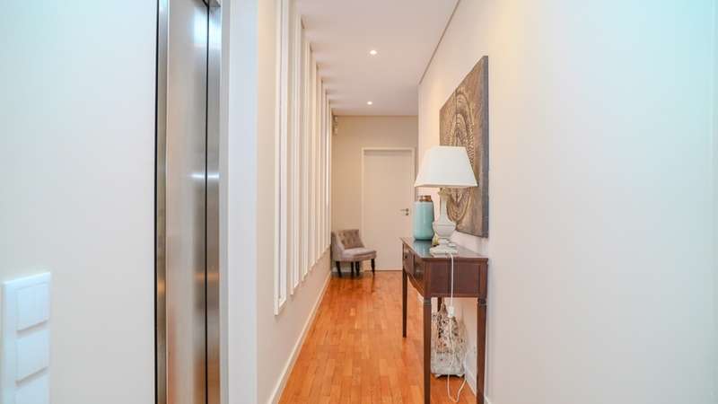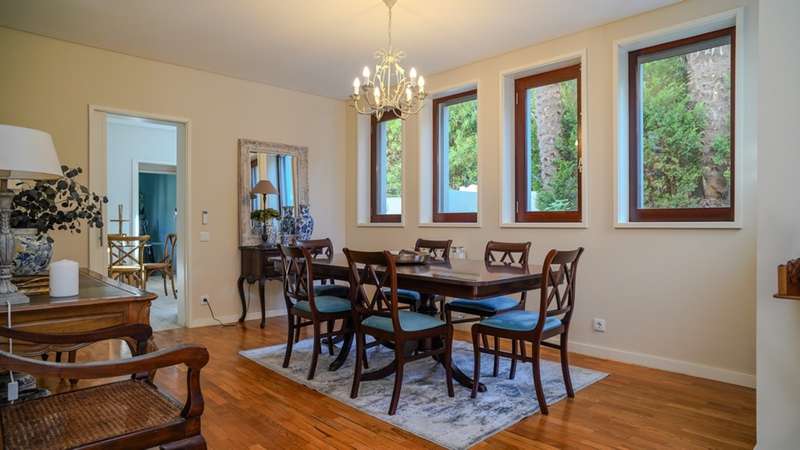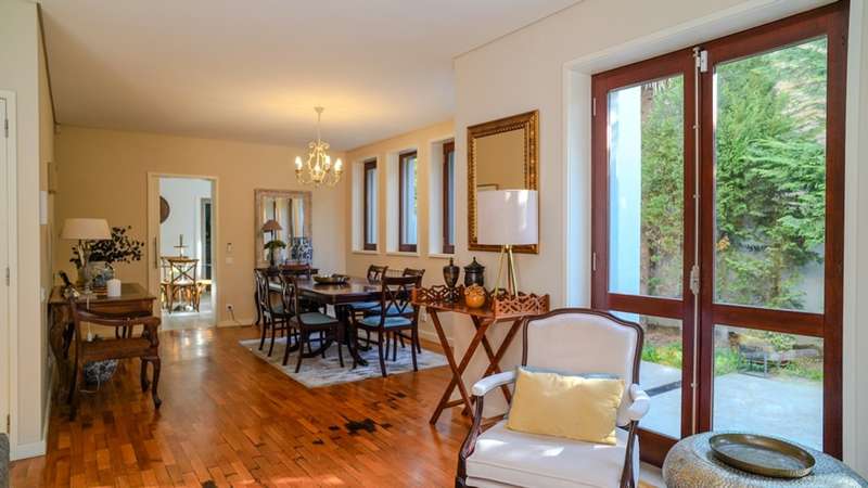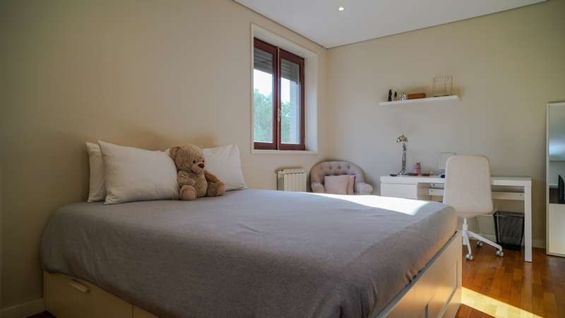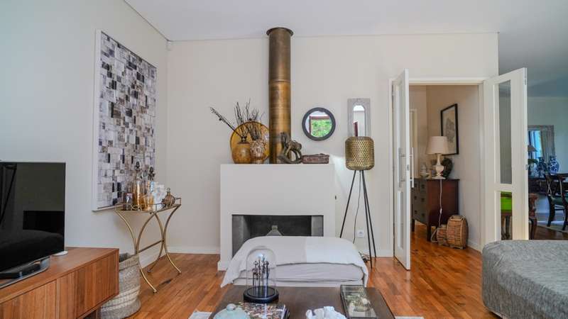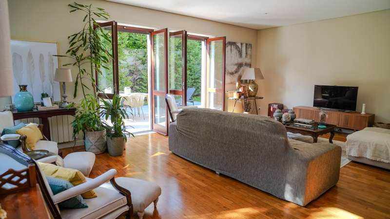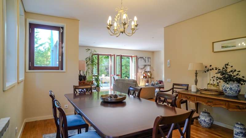 Fantastic four-fronted villa located in a prime area of Leça da Palmeira with a harmonious garden, garage and elevator. The house has generous areas and consists of two floors. On the first floor is the social area, with an entrance hall and access to the elevator, a large living and dining room - with direct access to the garden which has a seating and dining area for warmer days - a fully equipped kitchen, a guest toilet, an office and a guest bedroom. On the upper floor there are three bedrooms, one of which is en-suite; on this floor there is also a large balcony with views over the surrounding countryside. Very close to the beach and the Leça lighthouse, this house is in a quiet residential area made up mostly of houses.located about 400 meters from Beijinhos beach, with shops and services nearby. Good access to the freeway and easy access to the center of Matosinhos and the center of Porto. CHARACTERISTICS: Plot Area: 400 m2 | 4 306 sq ft Deployment Area: 188 m2 | 2 024 sq ft Building Area: 357 m2 | 3 845 sq ft Bedrooms: 3 Bathrooms: 3 Garage: 1 Energy efficiency: B- FEATURES: Private garden. Elevator. Garage. Central heating. Fireplace. External thermal insulation.