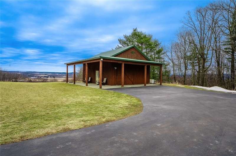 Centrally located in Pine Valley. Only 20 minutes from Watkins Glen Wine Trails and Corning's Gaffer District, this dream home holds four bedrooms, two full baths, two 1/2 baths, and a game room that walks out to a deck looking over the hillside that takes your views miles away! Built in 2008, this 3,787 sq ft home with an attached three-car garage and a barn on 40 acres was meticulously crafted with every thought in mind. From the nine pane custom windows and doors that flood the home with beautiful natural lighting, the geothermal heating and air conditioning efficiency teamed up with the cement siding to keep the home energy efficient, to the buried electrical lines so the landscape would not be interrupted! The open and spacious interior was remodeled with new hardwood floors and freshly painted in 2024. The custom kitchen features granite counters, beautifully finished cherry wood cabinetry, high-end appliances, and enough space to store your collection of tools and materials in the large walk-in pantry. Talk on the streets has said this kitchen has earned the chef's kiss. Walk into the grand living room with views of the hillside at almost every angle, to the sliding glass doors that bring your indoor living, outside. The large covered patio doubles your entertaining space while the built-in pool brings the activities! 10+ acres of cleared fields sit on the edge of the property, separated by trees waiting to be utilized for whatever your heart desires! Next door sits Cals Legacy Acres, where horse lovers and their best friends can utilize boarding, training, riding lessons, and other programs! Don't miss your chance with this dream property!
