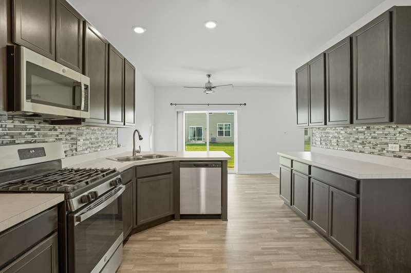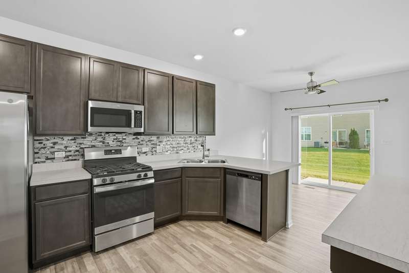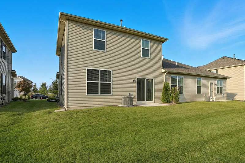 Welcome to this beautifully maintained 3-bedroom, 2.5-bath home built in 2021 in the desirable Heather Ridge community of Crown Point. Offering over 1,700 square feet, this move-in ready property features an open concept layout with 9' ceilings, a modern kitchen with 42" maple cabinets, stainless steel appliances, and a spacious dining and living area. Upstairs you'll find three comfortable bedrooms, including a primary suite with 2 walk-in closets and private bath, plus a convenient second-floor laundry. Smart home upgrades include a Ring system, smart thermostat, and MyQ garage control. The exterior offers a 2-car garage, low-maintenance yard, and HOA-provided lawn care and snow removal. Located near I-65, shopping, dining, and top-rated Crown Point schools, this home combines style, convenience, and comfort in one perfect package.