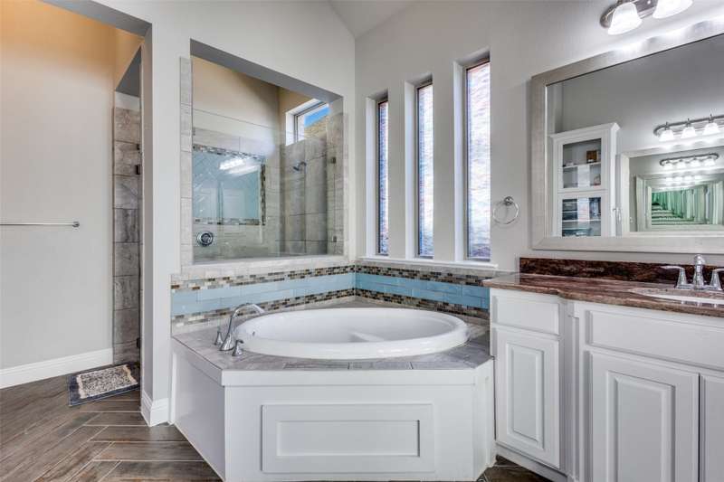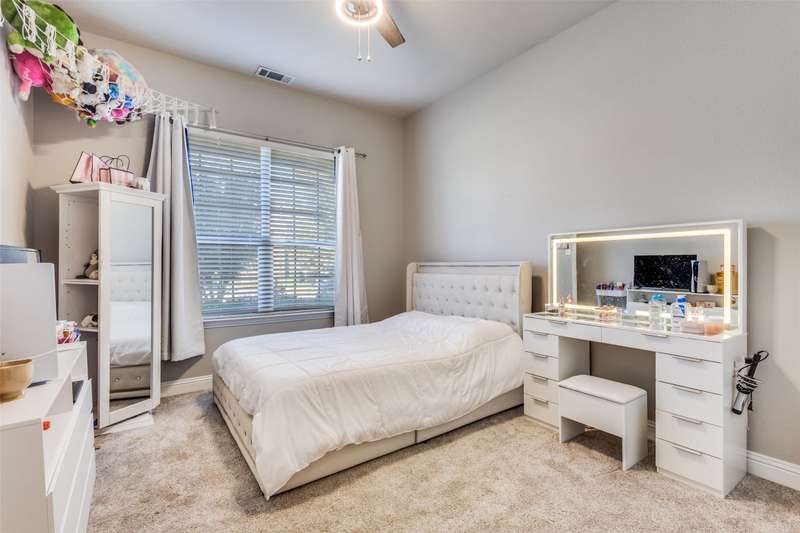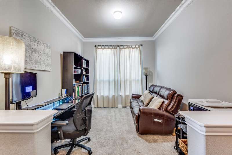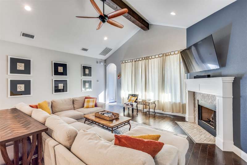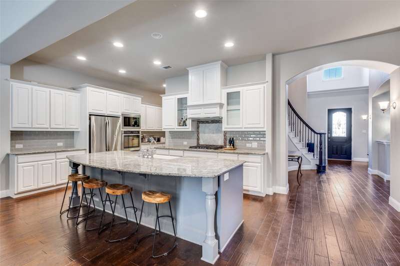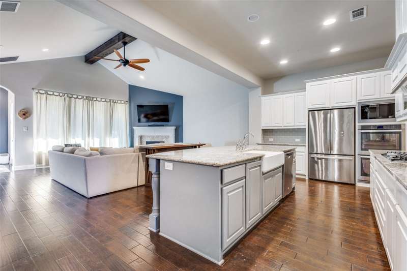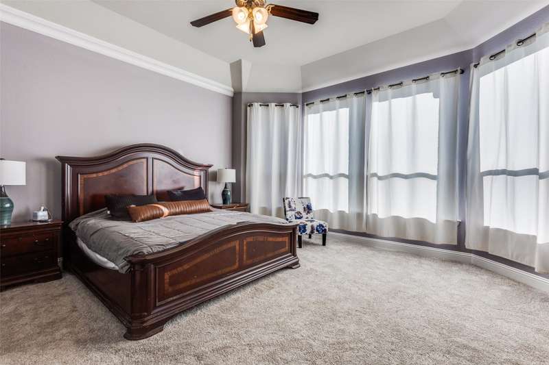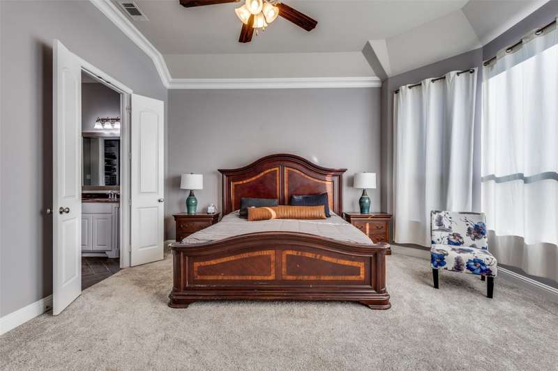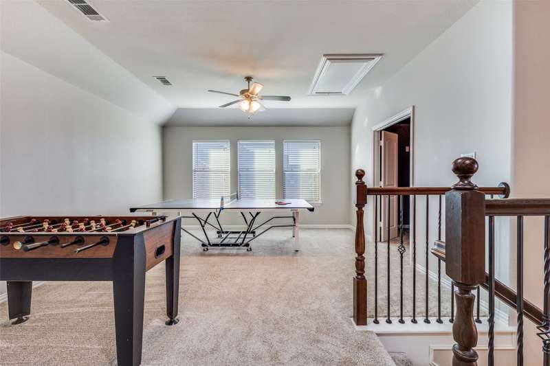 This stunning Drees Home lies nestled on an interior cul-de-sac lot within the popular Mustang Lakes community! Huge island kitchen, with gorgeous white cabinetry, boasts granite counters, porcelain farmhouse sink, subway tile backsplash, & stainless appliances. Large living area is outfitted with cedar beam accent & upgraded corner fireplace. Big master bedroom, with sitting area, is served by luxury bath equipped with all the bells & whistles. Secondary baths are beautifully appointed as well. One secondary bedroom lies downstairs while the upstairs retreat encompasses living area, media room, two bedrooms & a full bath. HOA maintains the front yard! 2024 updates include new roof & gutters, tankless water heater, microwave, & exterior wood stain. Carpet & interior paint updated in 2022. Neighborhood amenities include resort style pool, huge clubhouse, tennis & basketball courts, catch-&-release stocked pond, neighborhood elementary school, & more!