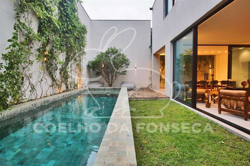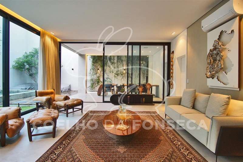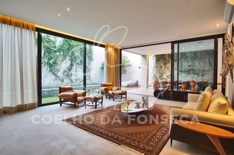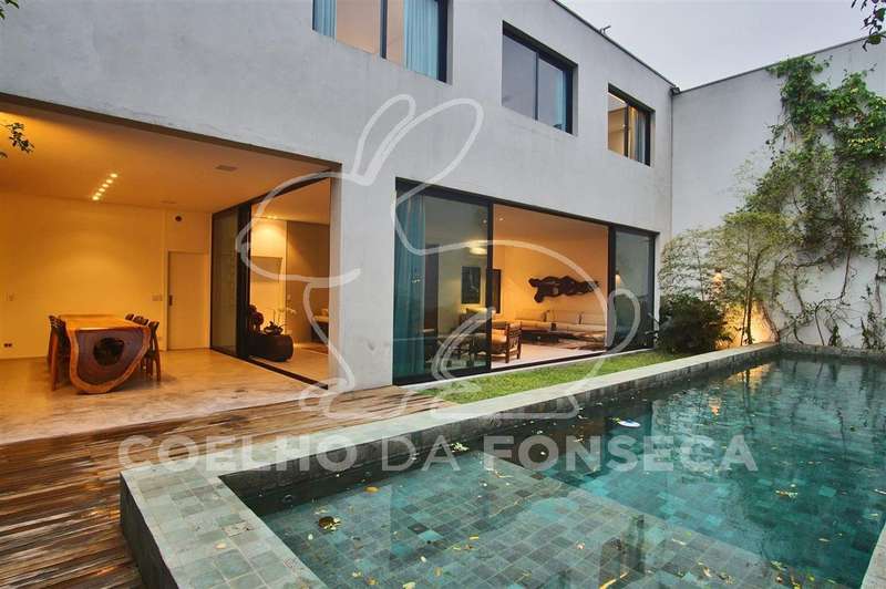 Casa moderna no Jardim Paulista.Toda a extensão do living com portas de vidro de correr que integram com a area externa, na piscina de pedras hijau verde. Iluminação natural por todos os ambientes, sofistcaçãoe modernidade. No andar superior onde estão as 4 suites, tem um home theater. Na suite master tem um acesso a um mezanio, onde hoje tem um espaço para academia e possui tambem um banheiro completo.Segurança total.Vale conferir !