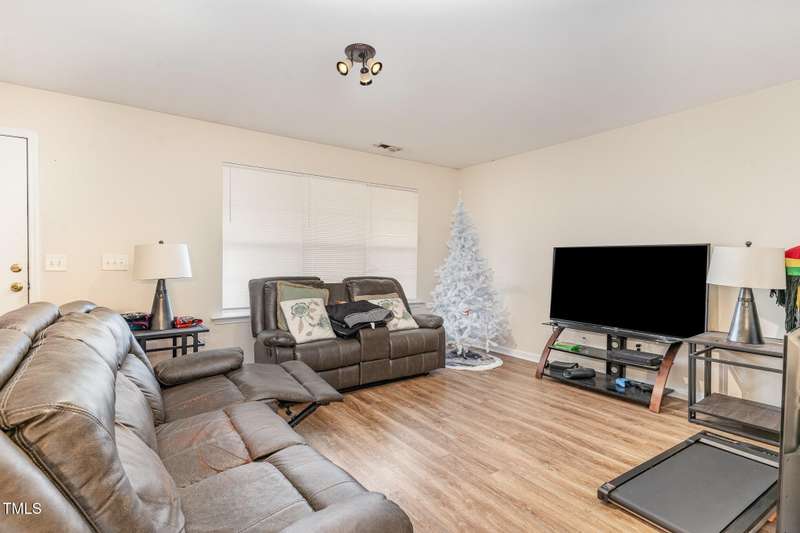 Affordable TH located close to everything. Walk to Coffee Shop, Church, Dentist, Eye Doctor, Sheets, Drug Store, Grocery Store & more. Minutes to I-540, Wake Tech, and Restaurants. Backs to the woods and close to the community pool. New LVP floor in FR, DR, and Kitchen. Eat-in kitchen w/an island. Refrigerator, Washer & Dryer conveys. New HVAC (2023). Enjoy the lifestyle of having the HOA maintain the exterior, roof, and landscaping.