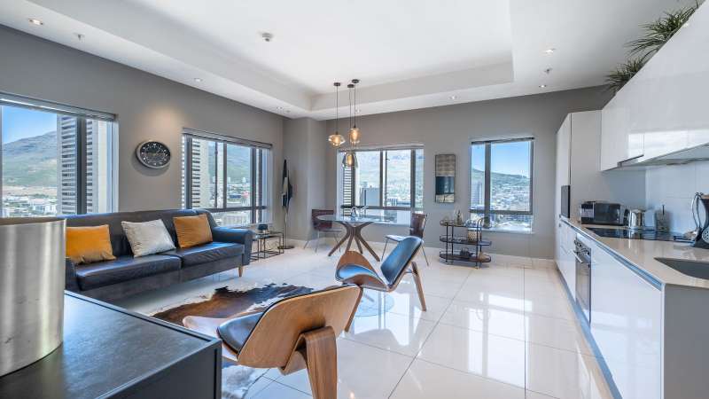 This exquisite 2-bedroom apartment in the prestigious Pullman Hotel offers an unparalleled blend of luxury, comfort, and investment potential. Boasting breathtaking panoramic views of Table Mountain and the harbour, this fully furnished apartment is designed for those who appreciate elegance and modern convenience. Stepping inside, you are welcomed by a beautifully designed open-plan living area, tastefully furnished with world-class décor and premium finishes. Large floor-to-ceiling windows invite an abundance of natural light, creating a bright and airy ambiance while showcasing the spectacular cityscape. The state-of-the-art kitchen is fitted with built-in, integrated SMEG appliances, including a fridge, washing machine, dishwasher, and other high-end appliances, ensuring both functionality and sophistication. The two spacious bedrooms are elegantly furnished, offering ultimate comfort and style. The master bedroom features an en-suite bathroom with luxurious fixtures, while the second bedroom is serviced by a beautifully appointed guest bathroom. Both rooms provide ample closet space and stunning views, making every moment at home a delight. This apartment is not just a luxurious residence but also a prime investment opportunity. With its strong Airbnb returns, it is a highly sought-after destination for both business and leisure travelers, ensuring consistent rental income. The Pullman Hotel is known for its world-class amenities, including 24-hour concierge service, security, a rooftop pool, gym, spa, fine dining restaurants, and secure parking, offering residents an exclusive hotel-style living experience. Whether you are looking for a stylish city retreat or a high-yield investment property, this apartment is the perfect choice. Don’t miss out on this rare opportunity—contact us today to schedule a private viewing!