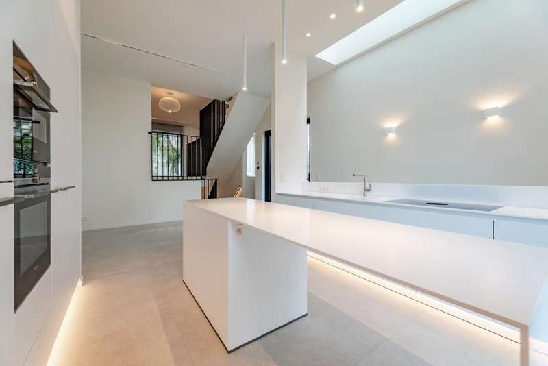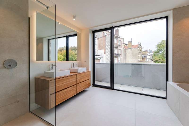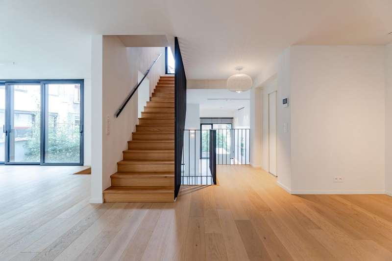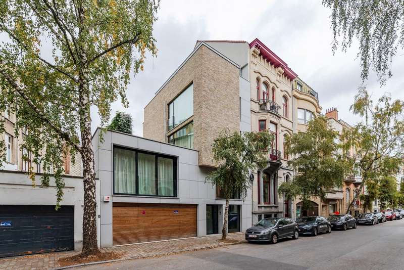 A short walk from Place Brugmann, a stunning new contemporary house with an 11-metre façade. Very bright with its three façades. With a gross surface area of 467 m², 4 complete suites, a space dedicated to the practice of a liberal profession, a wellness area with sauna (optional equipment), several terraces and a charming garden (land +/- 160 m²). Possibility of converting the space dedicated to professional practice into a fifth bedroom. Lift, 2-car garage + bicycle/motorbike parking. PEB A The property is sold subject to 21% VAT. 10-year guarantee.