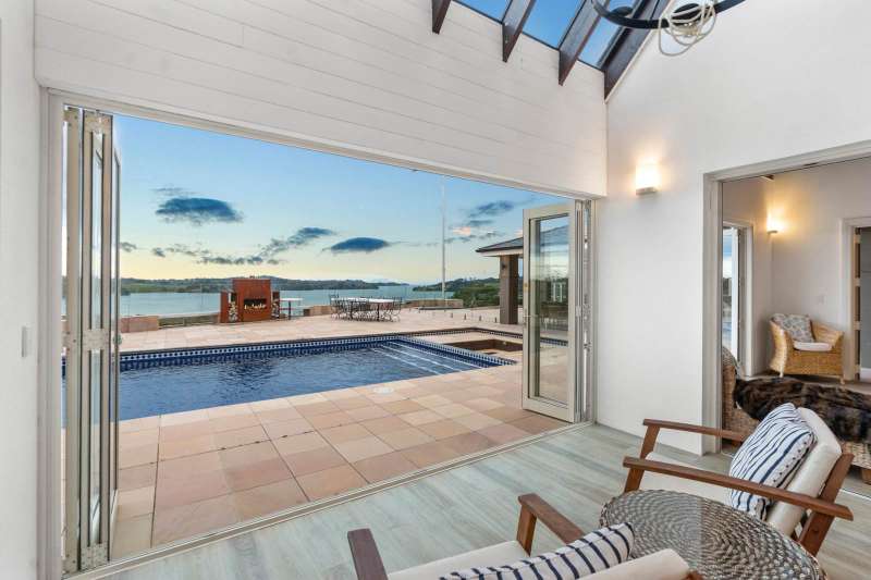 This owner is open to trades. Discover the ultimate in luxury living at this breathtaking waterfront mansion, just 40 minutes from the Auckland CBD yet feeling worlds away. Nestled on expansive grounds, this exclusive estate offers unparalleled privacy and tranquility. Spanning a generous 830 sqm, this architectural marvel features six spacious bedrooms, including two self-contained guest suites, ensuring comfort and privacy for family and guests alike. The main house welcomes you with a grand double-height entrance hall that leads into a sunlit, expansive kitchen - perfect for culinary enthusiasts and entertaining. Ascend the private staircase to your personal entertainment paradise, complete with a custom-built bar and a games room. Whether you're enjoying a game of billiards or cozying up in the TV den for intimate gatherings, this space is designed for leisure and relaxation. The exterior of this magnificent estate is equally impressive, boasting a helipad and a private wharf with a floating pontoon, ideal for boating and jet skiing enthusiasts. Freshwater wash facilities are available for all your maritime equipment and vehicles. Additionally, the property features a large tiled pool, a pool house with a full bathroom and wet bar, and a pub and games room, creating the ultimate entertainment setting for hosting friends and family. Experience the perfect blend of luxury, privacy, and natural beauty in this stunning waterfront mansion - your exclusive retreat awaits.