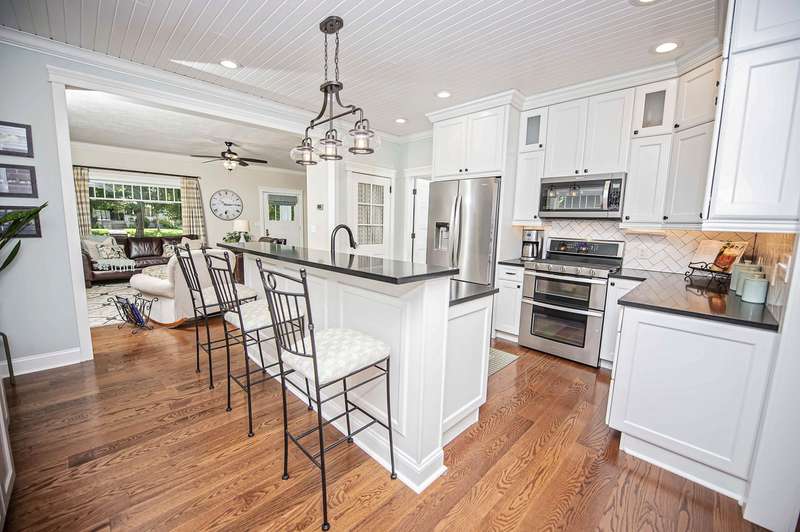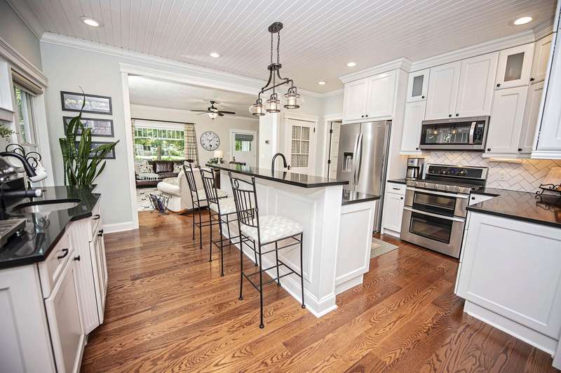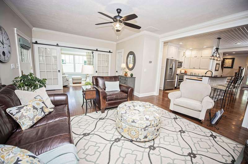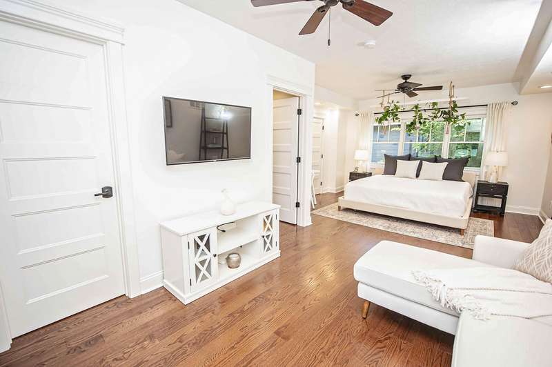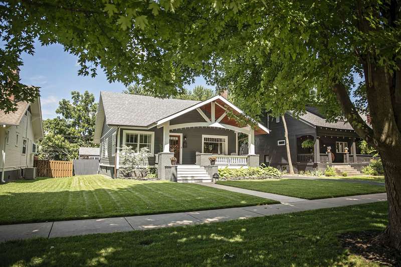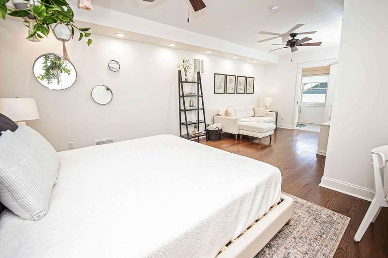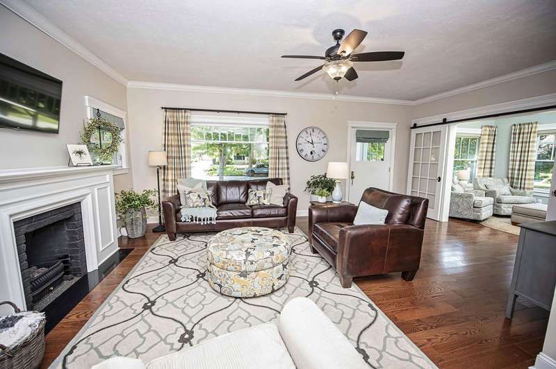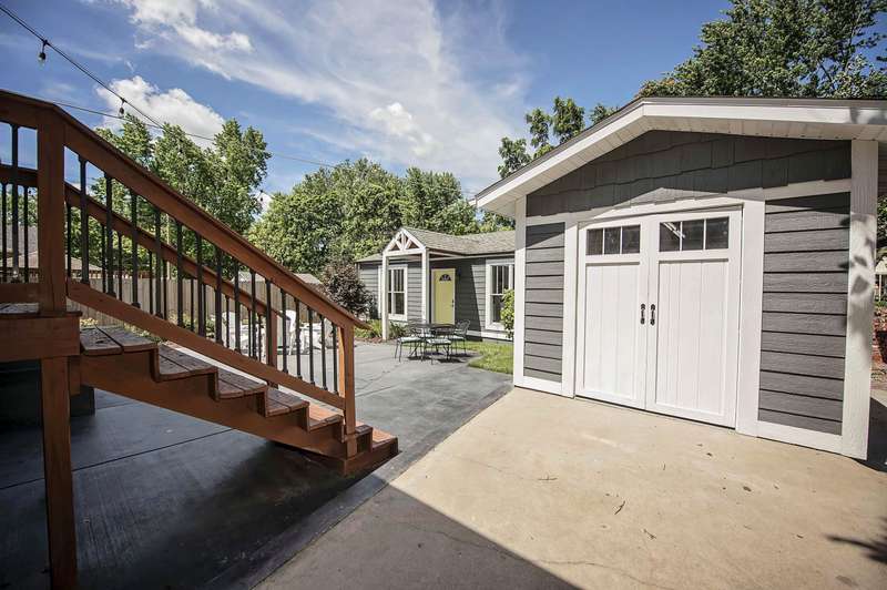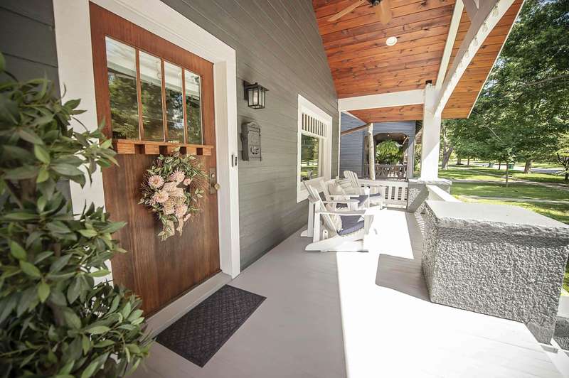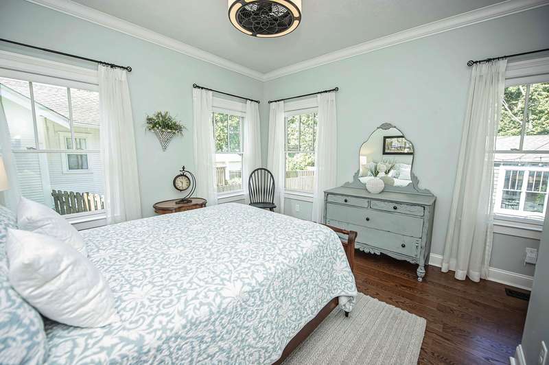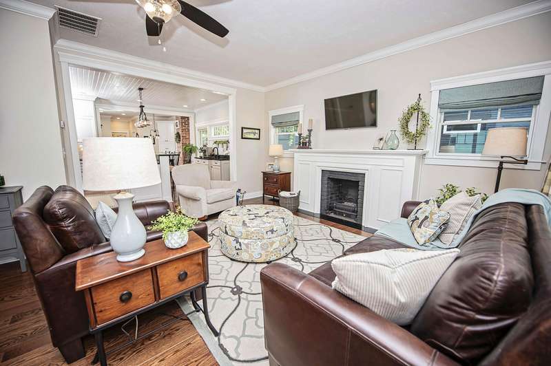 This light-filled home is an absolute stunner! The open floor plan and 9 ft ceilings provide warm and inviting spaces for entertaining. Not only is the primary bedroom/bath on the main floor, but there is also bedroom #2 and bath #2 on the main floor. Upstairs is another en-suite with a sitting area and lots of closets and bedroom #3. In the basement there is extensive, clean storage & a quiet office.If you are a car buff, this home has an air-conditioned new 3-car (24x30) in addition to a storage garage for mowers and toys (10x22). Both garages have epoxy floors and have been insulated! Parking one car in the driveway (shared) is an option, but the rear drive has extensive space to park as well!This home is a study in neutrals and is very calming and peaceful in decor choices. Many exceptional renovations have been completed to make this century home low maintenance. The roof, gutters (including copper round), irrigation and gorgeous landscape and patio, HVAC (two systems), and 2 water heaters. The lath and plaster walls were removed and replaced with drywall, which allowed plumbing and electric to be replaced. Beautiful millwork and doors! Then new kitchen & bathrooms in the finest tile, quartz, and cabinetry completed the renovation. The floors were replaced with real oak wood through most of the home, so they can be refinished, thinking years ahead! Details were not ignored, like a replica coal-burning fireplace and relined chimney, custom drapes (stay), custom blinds (stay; some are motorized), and an epoxy-floored basement. The porch is also brand new, with a craftsman gable front with a redwood ceiling. It faces east and is lovely in the evening! This is truly an exceptional new home in a historic property.The seller's preferred closing date is October 1st, 2025.The location is in the heart of Rountree, Pickwick Place Addition. Rountree has great walkability scores. Enjoy the friendly commerce corner of Pickwick and Cherry for community feels!
