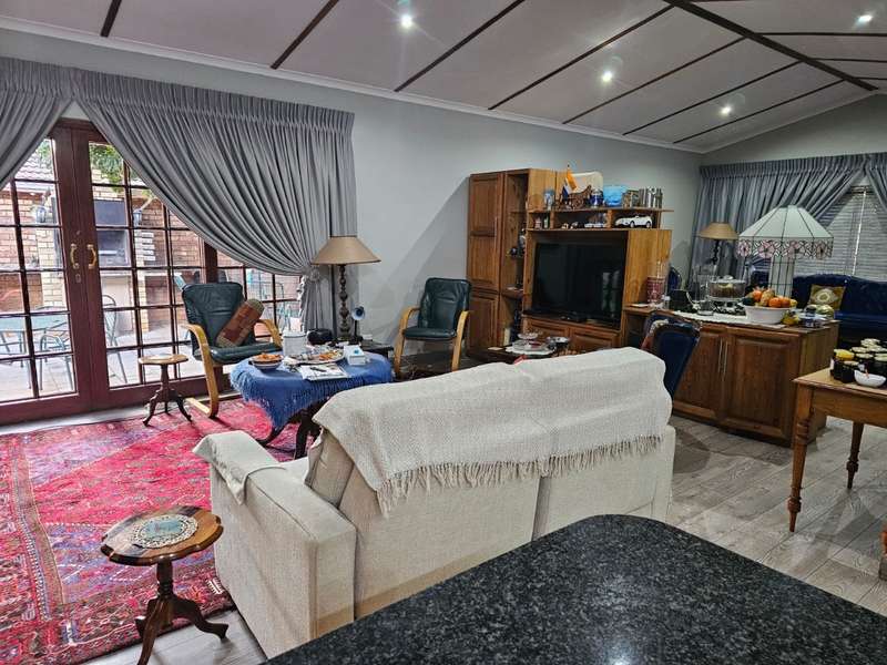 Nestled within a serene complex, this charming 3-bedroom home offers a comfortable and stylish lifestyle. The master bedroom boasts an en-suite bathroom, while two additional bathrooms ensure convenience for all. The open-plan lounge, kitchen, and dining room create a spacious and inviting atmosphere, perfect for family gatherings and entertaining guests. Step outside to the delightful braai area, ideal for summer barbecues. The property includes a double garage and ample parking space, complemented by a lovely garden that provides a tranquil escape. Residents can also enjoy the refreshing swimming pool within the complex, adding to the appeal of this beautiful home.