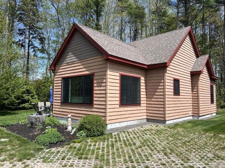 Immaculate 2 bedroom,1 full bath Cottage located in the highly sought after Summerscape Community. This offering is extremely rare with just a couple of units being sold yearly. This end unit offers plenty of privacy abutting trees, woods, and nature making it very desirable. It also boasts a one-off private patio! This dedicated space is ideal for grilling, socializing, or just relaxing. Paired with this patio is a spacious side and backyard. Very few cottages at Summerscape have a backyard!! All this and still just a short walk to the pool, clubhouse, and overflow parking lot. It has many upgrades to include beadboard package (sunroom walls, kitchen & vanity cabinets), heat pump with A/C, granite counters, stainless steel appliances, garbage disposal, and cozy finished sunroom filled with natural light. Amenities galore in this gated community to include a large heated swimming pool w/ hot tub, gym, fire pits, game room, and media room. All this considering Summerscape has one of the lowest condo fees in the area. These cottages were engineered and designed for longevity in mind. No deferred maintenance, yearly painting, or rotten wood replacement. The cost of ownership in Summerscape is lower than comparable communities in the area. Easy access to 95 and Rt. 1. Only 2.4 miles to Wells Beach! Your summer oasis can't get much easier than this! Summerscape is open from May 1st-October 31st. Condo is being sold furnished. Must be Seen!!