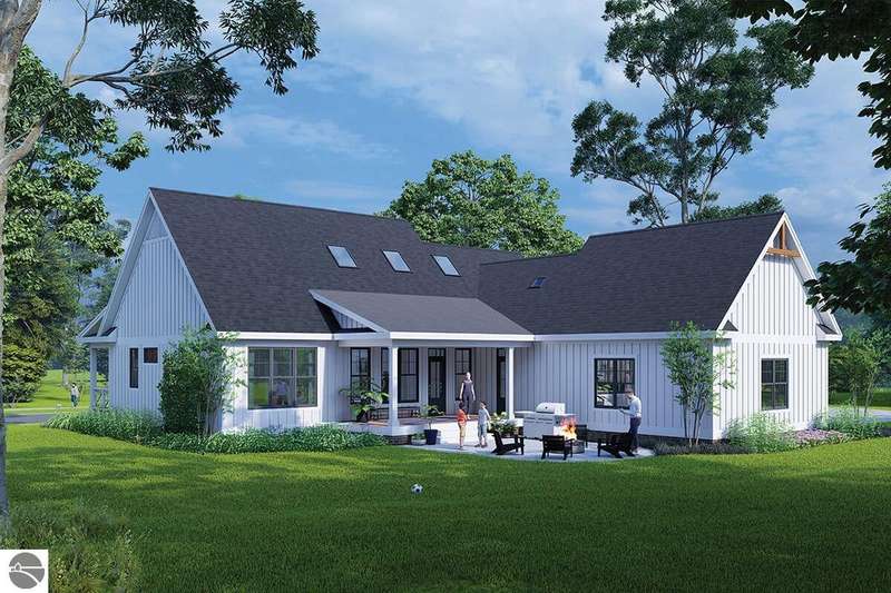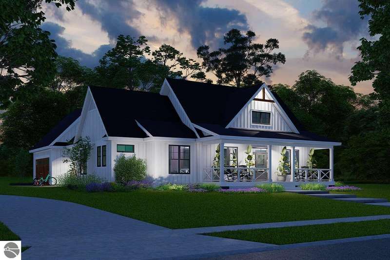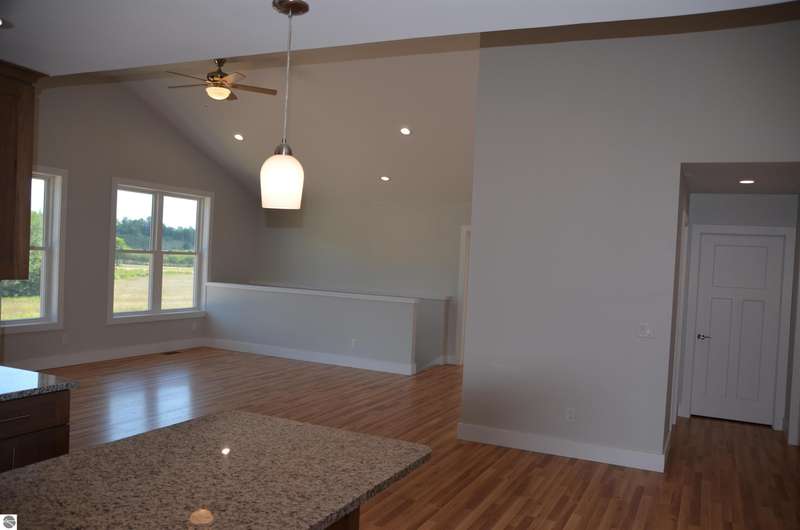 Exceptional location situated between Elk and Torch Lakes, featuring beautiful cherry orchard views. This newly constructed ranch-style home with expansive covered front porch includes three bedrooms & three bathrooms, along with an attached two-car garage. The main floor offers a primary bedroom complete with a private bathroom and a tiled shower. The full lower level is ready for finishing and plumbed for a 4th bathroom. Enjoy central air conditioning, cable internet, and natural gas, along with granite countertops, kitchen island, mud room, and durable waterproof flooring. The home boasts cathedral ceilings and custom handcrafted cabinets, all on over two acres where outbuildings can be built. Short-term rentals are permitted. The home is energy efficient with R21 insulation in the walls and R49 in the attic, featuring sturdy 2 by 6 construction. Dryer & Stove are set up for Electric & Gas. The furnace has a 96 percent efficiency rating with a 50-gallon water heater. The annual association fee is $200, and the estimated completion date is March 30, 2026. The seller holds a real estate license. Consider purchasing now to choose some of your finishes & put your personal touch on your dream home!