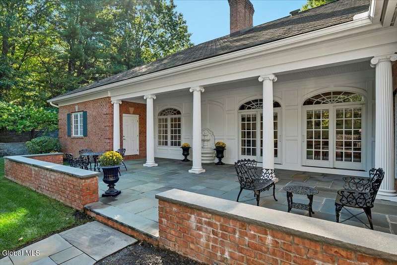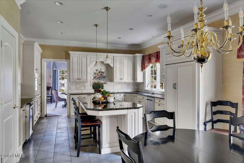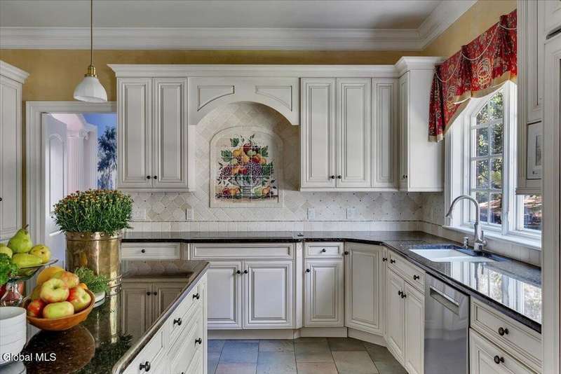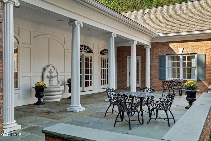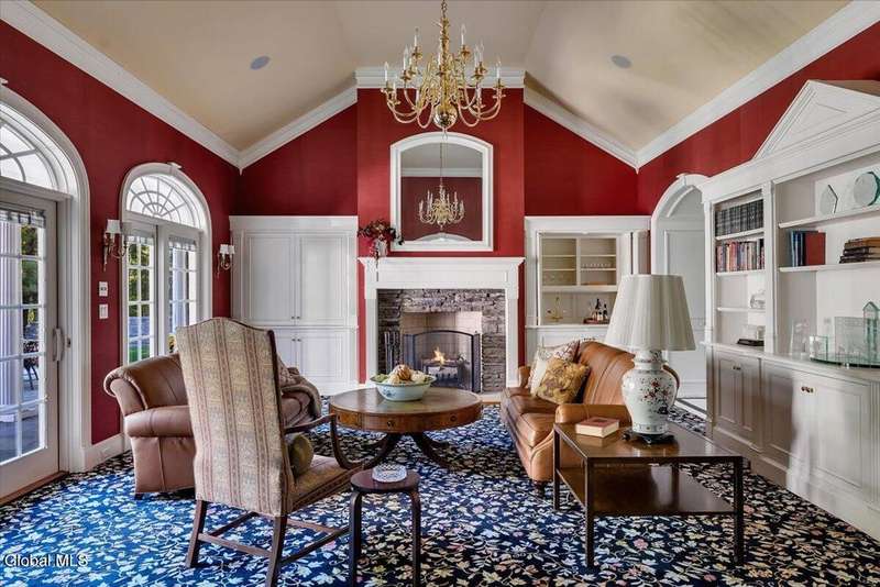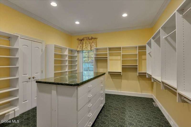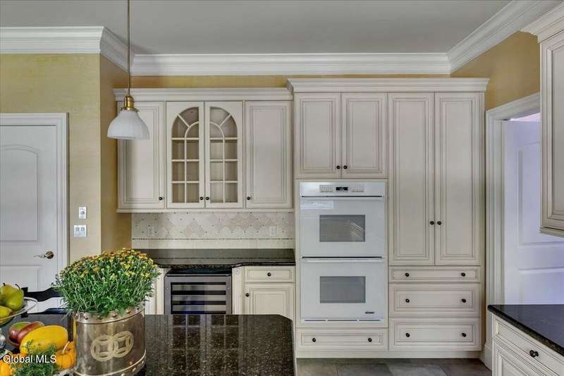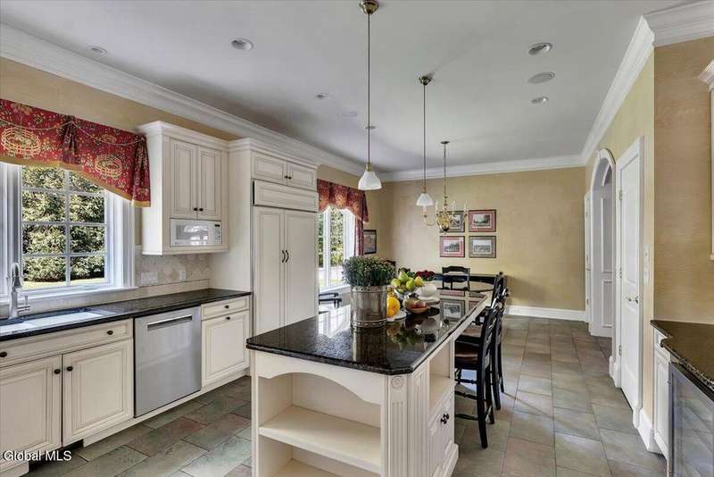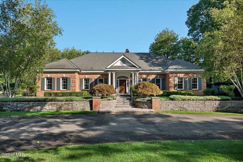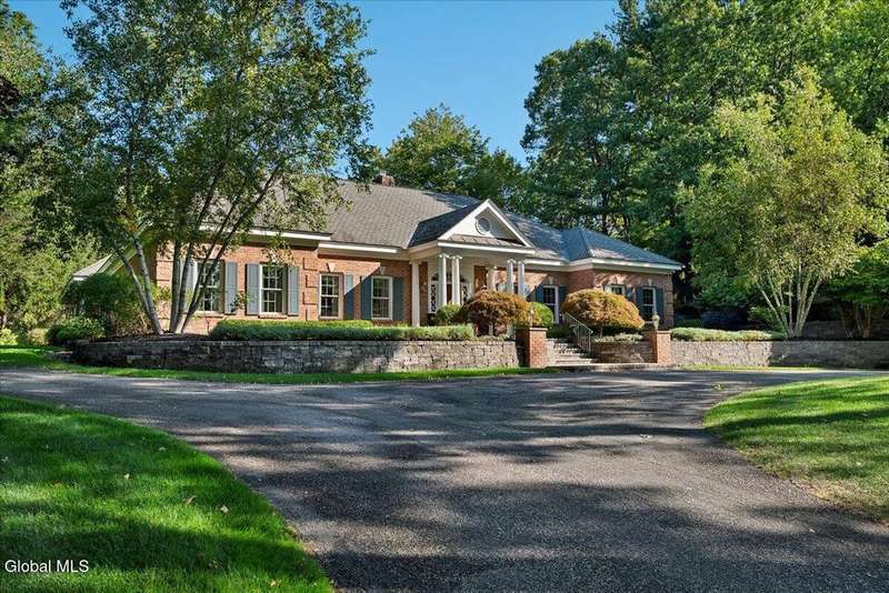 This architecturally stunning, one-level luxury residence combines timeless sophistication with the finest craftsmanship and finishes throughout. An extremely rare opportunity for the most discerning buyer. Constructed by Loudonville's premier builder with remarkable attention to detail. The home's appeal begins with a sweeping circular drive that leads to a dramatic front entrance. Bluestone steps ascend to a grand portico that welcomes you inside. Center foyer with a sparkling marble floor. Intricate moldings, and designer features throughout set an impressive tone. The formal living and dining rooms are designed with entertaining in mind. Zuber wallpaper. The gourmet kitchen is a chef's dream?anchored by a spacious island and equipped with Wolf, Dacor, Bosch, Summit, and Sub-Zero appliances. The adjoining great room captivates with a soaring cathedral ceiling, grand fireplace, custom built-ins, wet bar, and sliding doors that open to a private covered terrace. It's the heart of the home and perfect for gatherings large or small. Private hall with Venetian plaster walls leads to the bedroom and study wing. The owner's study or den provides an ideal space for work or relaxation. With an adjoining walk-in closet/dressing room and full bath, this flexible area could also serve as a 4th bedroom. Guest suite with an ensuite bath ensures comfort and privacy. Magnificent primary suite is a true retreat, featuring a sumptuous spa-inspired bath and an expansive dressing room. Separate guest room with ensuite bath offers perfect accommodations for an au pair. Convenient side entrance with ample storage and a laundry room. Lower-level game/recreation room with garden windows and new carpeting, plus unfinished space. Heated 3 car side-load garage. Zoned heating and cooling. Set on a beautifully landscaped private 1.7-acre lot with large stone terrace, this extraordinary home embodies the best of Loudonville luxury living.