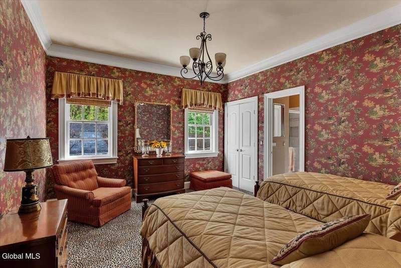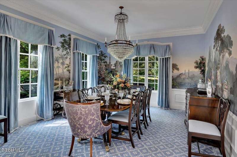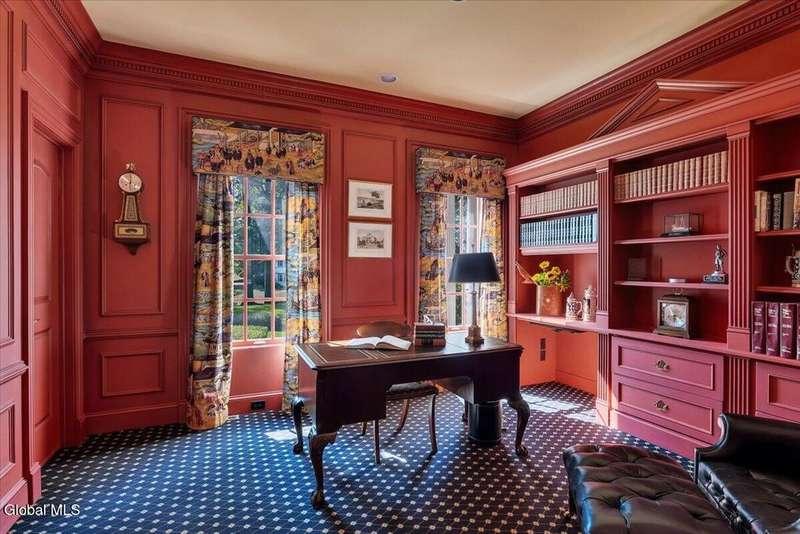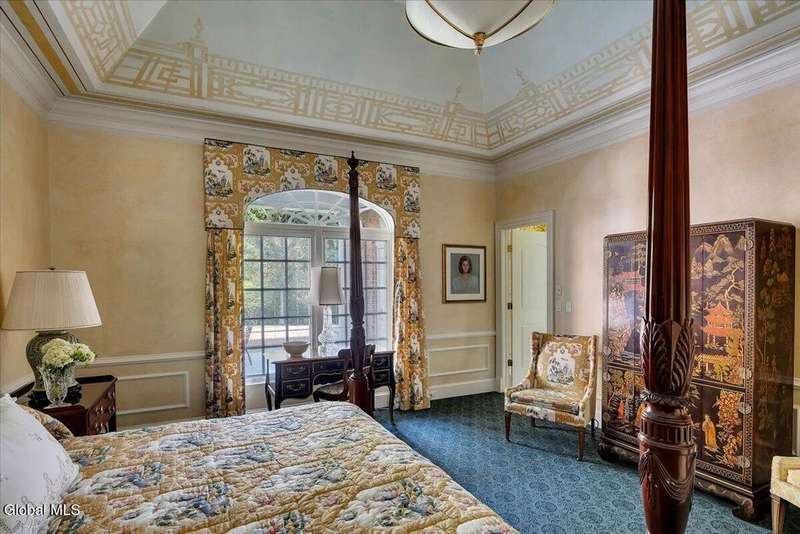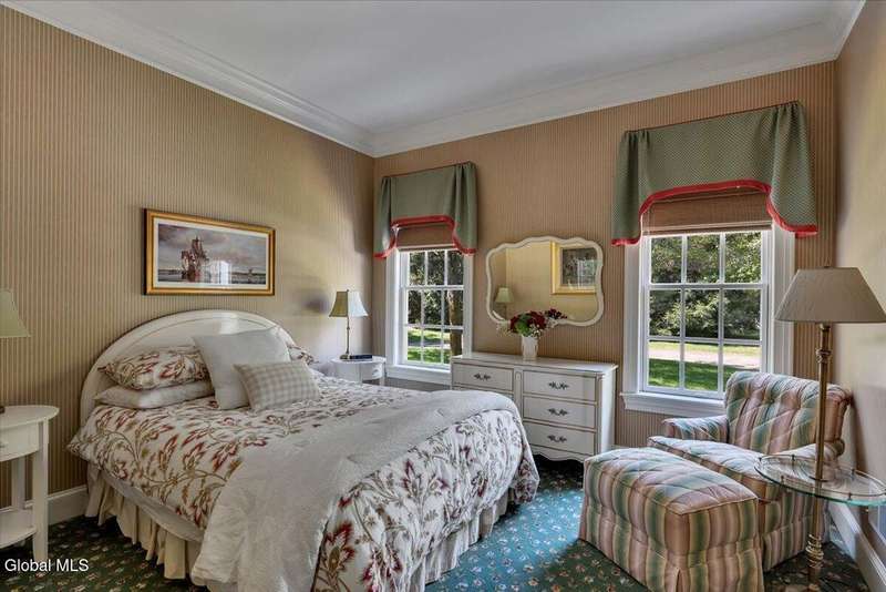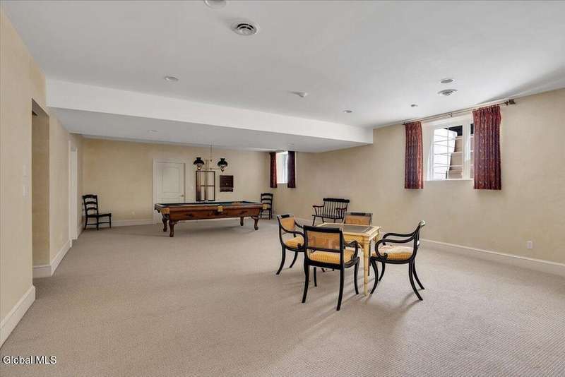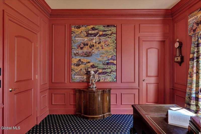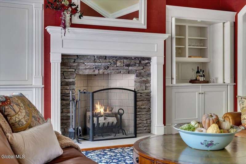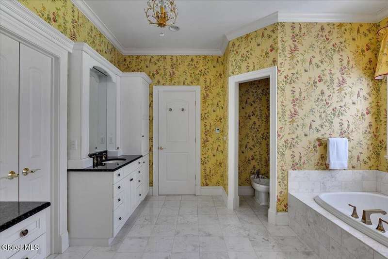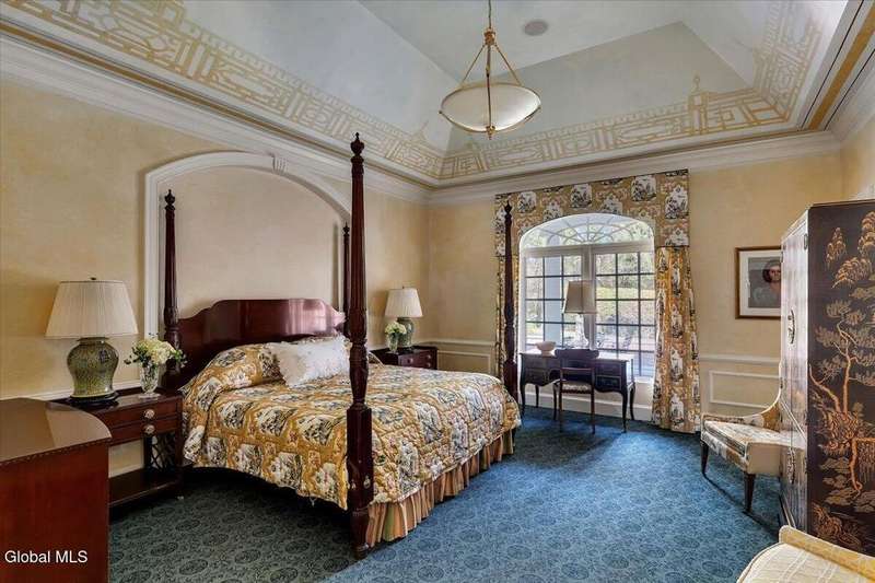 This architecturally stunning, one-level luxury residence combines timeless sophistication with the finest craftsmanship and finishes throughout. An extremely rare opportunity for the most discerning buyer. Constructed by Loudonville's premier builder with remarkable attention to detail. The home's appeal begins with a sweeping circular drive that leads to a dramatic front entrance. Bluestone steps ascend to a grand portico that welcomes you inside. Center foyer with a sparkling marble floor. Intricate moldings, and designer features throughout set an impressive tone. The formal living and dining rooms are designed with entertaining in mind. Zuber wallpaper. The gourmet kitchen is a chef's dream?anchored by a spacious island and equipped with Wolf, Dacor, Bosch, Summit, and Sub-Zero appliances. The adjoining great room captivates with a soaring cathedral ceiling, grand fireplace, custom built-ins, wet bar, and sliding doors that open to a private covered terrace. It's the heart of the home and perfect for gatherings large or small. Private hall with Venetian plaster walls leads to the bedroom and study wing. The owner's study or den provides an ideal space for work or relaxation. With an adjoining walk-in closet/dressing room and full bath, this flexible area could also serve as a 4th bedroom. Guest suite with an ensuite bath ensures comfort and privacy. Magnificent primary suite is a true retreat, featuring a sumptuous spa-inspired bath and an expansive dressing room. Separate guest room with ensuite bath offers perfect accommodations for an au pair. Convenient side entrance with ample storage and a laundry room. Lower-level game/recreation room with garden windows and new carpeting, plus unfinished space. Heated 3 car side-load garage. Zoned heating and cooling. Set on a beautifully landscaped private 1.7-acre lot with large stone terrace, this extraordinary home embodies the best of Loudonville luxury living.