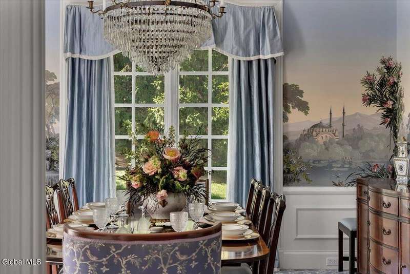 This architecturally stunning, one-level luxury residence combines timeless sophistication with the finest craftsmanship and finishes throughout. An extremely rare opportunity for the most discerning buyer. Constructed by Loudonville's premier builder with remarkable attention to detail. The home's appeal begins with a sweeping circular drive that leads to a dramatic front entrance. Bluestone steps ascend to a grand portico that welcomes you inside. Center foyer with a sparkling marble floor. Intricate moldings, and designer features throughout set an impressive tone. The formal living and dining rooms are designed with entertaining in mind. Zuber wallpaper. The gourmet kitchen is a chef's dream?anchored by a spacious island and equipped with Wolf, Dacor, Bosch, Summit, and Sub-Zero appliances. The adjoining great room captivates with a soaring cathedral ceiling, grand fireplace, custom built-ins, wet bar, and sliding doors that open to a private covered terrace. It's the heart of the home and perfect for gatherings large or small. Private hall with Venetian plaster walls leads to the bedroom and study wing. The owner's study or den provides an ideal space for work or relaxation. With an adjoining walk-in closet/dressing room and full bath, this flexible area could also serve as a 4th bedroom. Guest suite with an ensuite bath ensures comfort and privacy. Magnificent primary suite is a true retreat, featuring a sumptuous spa-inspired bath and an expansive dressing room. Separate guest room with ensuite bath offers perfect accommodations for an au pair. Convenient side entrance with ample storage and a laundry room. Lower-level game/recreation room with garden windows and new carpeting, plus unfinished space. Heated 3 car side-load garage. Zoned heating and cooling. Set on a beautifully landscaped private 1.7-acre lot with large stone terrace, this extraordinary home embodies the best of Loudonville luxury living. Deadline for offers: Monday, Oct 20th at 6pm.