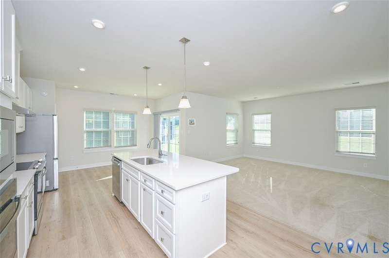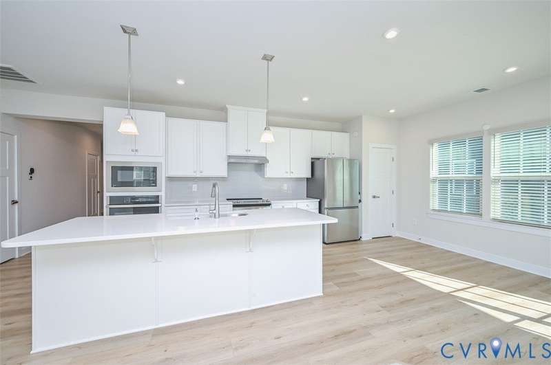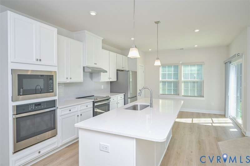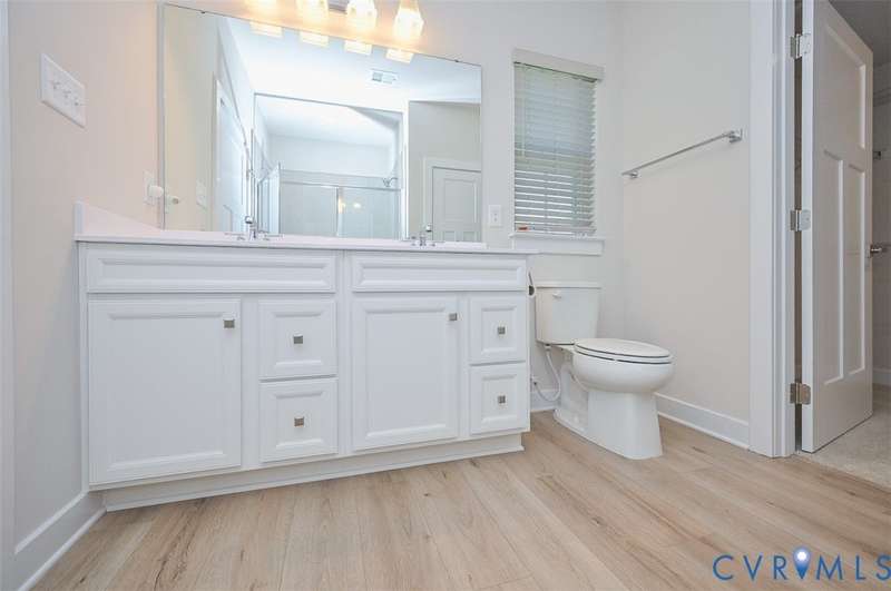 Welcome home to this better than new Move-In Ready - Bramante Floor Plan built in 2024! Enjoy one-level living in Womack Green, in the heart of Chester, with maintenance free living, walking trails and minutes from dining and shopping plus close access to 288 & I95. Upon entry, you will be greeted by Luxury Vinyl Plank flooring in the foyer, hallway, kitchen and dining area. The spacious family room opens to the eat-in kitchen which offers Quartz countertops, stainless steel appliances, pantry and a large island and a dining area. The luxurious owner's suite features a tray ceiling, huge walk-in closet plus an en-suite bath with double vanity and an oversized tiled shower with dual shower heads and separate controls for personalized comfort. There is also two additional spacious bedrooms with large closets and a hall bath with single vanity and tub/shower combo in the hall bath. Other notable features include a covered front porch, two-car attached garage, double width paved drive, natural gas heat/central, vinyl siding and dimensional roof. Enjoy grilling or have your morning coffee on the rear patio. Don't miss out on this like NEW home. Call and Schedule Your Private Showing Today!!