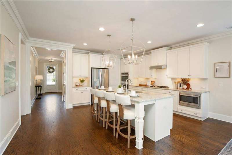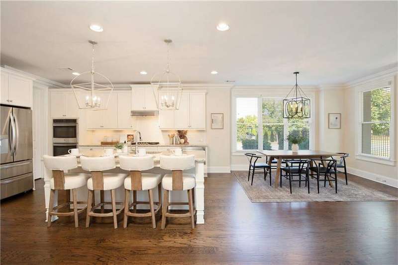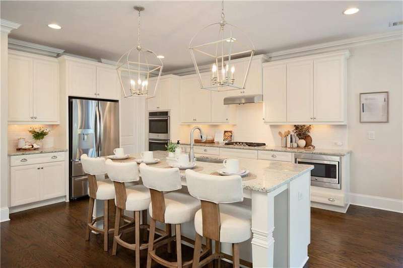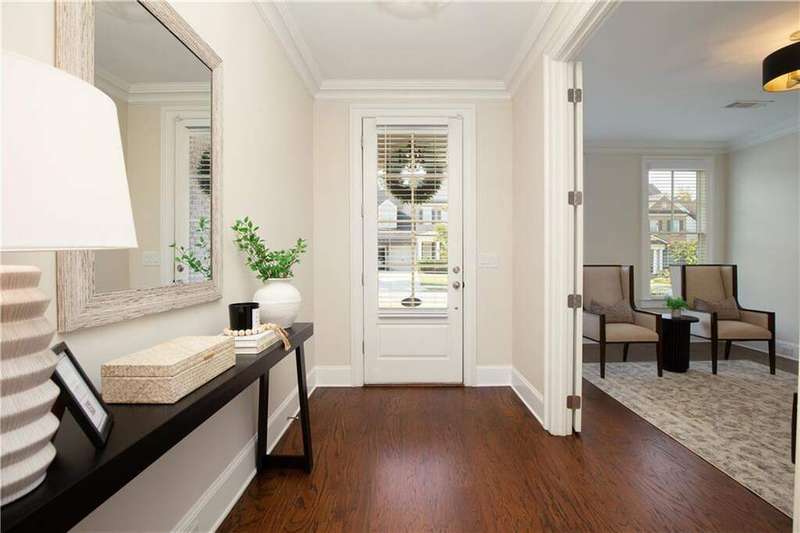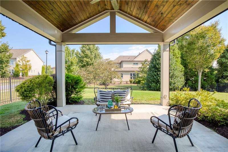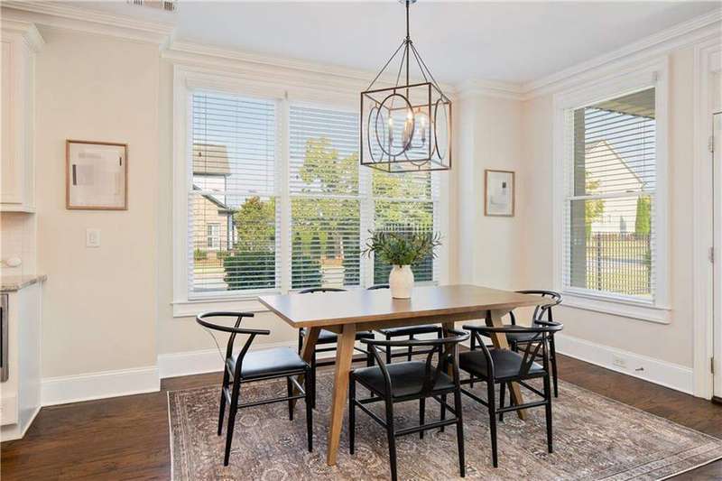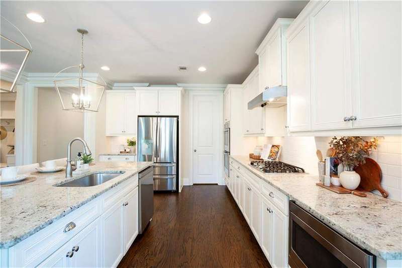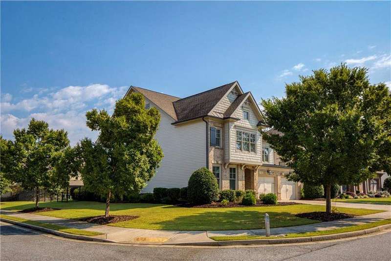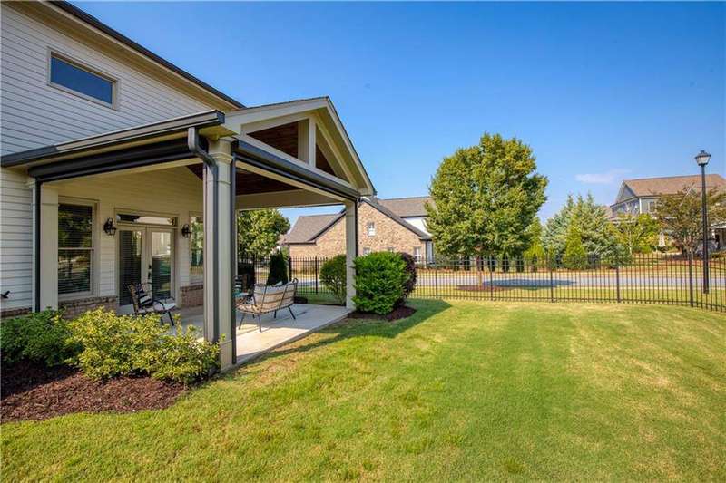 Modern Luxury & Easy Living in Traditions... This craftsman-style charmer on a beautifully landscaped corner lot in the amenity-rich Traditions community is more than a home-it's a LIFESTYLE. With five bedrooms, four-and-a-half baths, and THREE finished levels, this thoughtfully designed home has been refreshed with new carpet, fresh paint, and refinished hardwoods, making it truly move-in ready for the most discerning buyer. From the moment you enter, the home's standout features shine: 8-foot doors, a bright neutral interior, abundant natural light, and rich hardwood floors. The open-concept main floor is an entertainer's dream. The chef's kitchen includes soft white cabinetry, double ovens, a subway tile backsplash, an expansive island and a walk-in pantry. The dining area (easily fits a table for 10+) leads to the oversized covered porch, where a vaulted tongue-and-groove ceiling and custom motorized screens create a private, bug-free retreat for morning coffee, dining al fresco, or hosting friends. The family room impresses with a wall of windows, a cozy fireplace with built-ins, and views of the fenced backyard. So many options for gathering with family and friends! Also on the main level are an office/flex space with French doors, a stylish powder room, a practical drop zone with a bench and cubbies, and a two-car garage with ceiling racks and storage. Upstairs, a flexible loft/reading nook anchors this floor. The primary suite is a tranquil retreat with a trey ceiling and a spa-inspired bath featuring dual vanities with quartz counters, a soaking tub, a frameless glass shower, and a massive walk-in closet. Three spacious secondary bedrooms include one with an en-suite bath and two that share a Jack-and-Jill with separate vanity areas. A convenient laundry room (with cabinetry and 2022 washer & dryer included) plus a huge walk-in linen/storage closet round out this floor. The third level "reverse basement" is the ultimate flex/bonus space-perfect for a private guest suite, teen retreat, theatre room, or home gym. With a full bath and two walk-in attic storage areas, the possibilities are endless. Outside, you'll find a fully fenced and professionally landscaped yard maintained by the HOA, complete with a Rachio smart irrigation system. The exterior was freshly painted in 2022 for low-maintenance living. Smart-home features include Nest thermostats, Yale Nest lock, a SimpliSafe security system with cameras, and a video doorbell. Beyond the home itself, Traditions offers a resort-style pool, clubhouse, tennis/pickleball courts, fitness center, playground, green spaces, and walking paths, all with award-winning schools and easy access to GA400, Fowler Park, Big Creek Greenway, and premier shopping and dining. Whether you're seeking peaceful moments at home or an active, connected lifestyle, 3910 Cameron Court delivers it all.