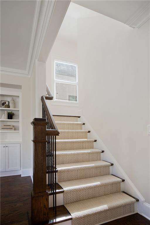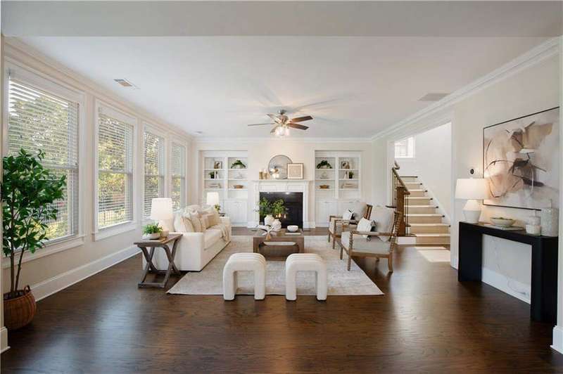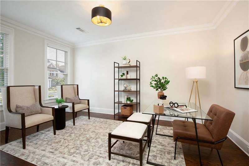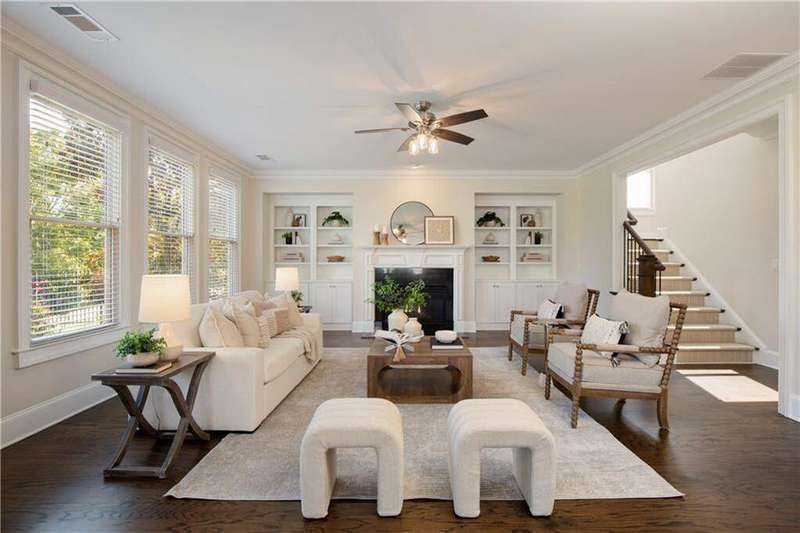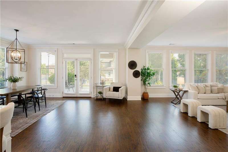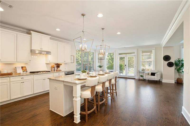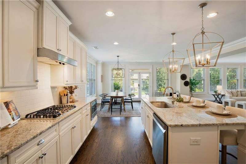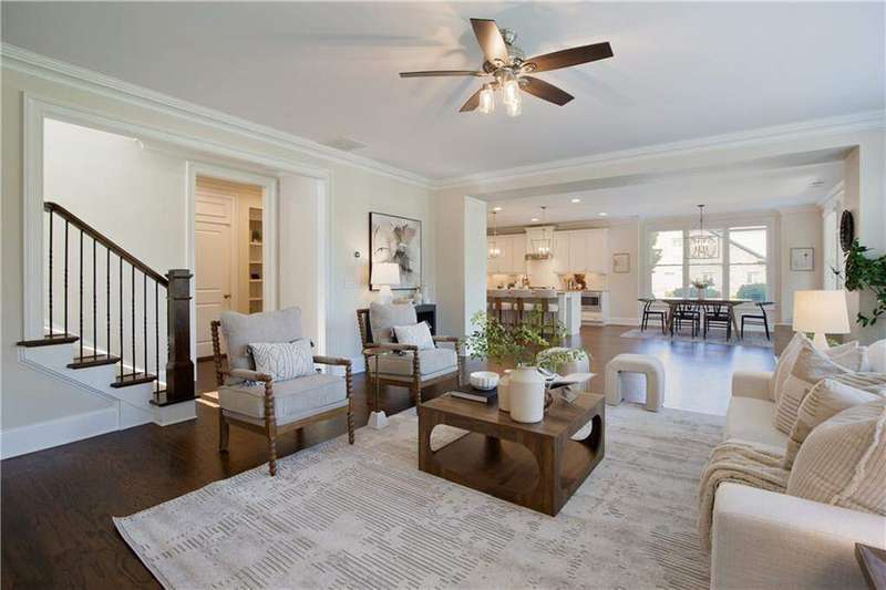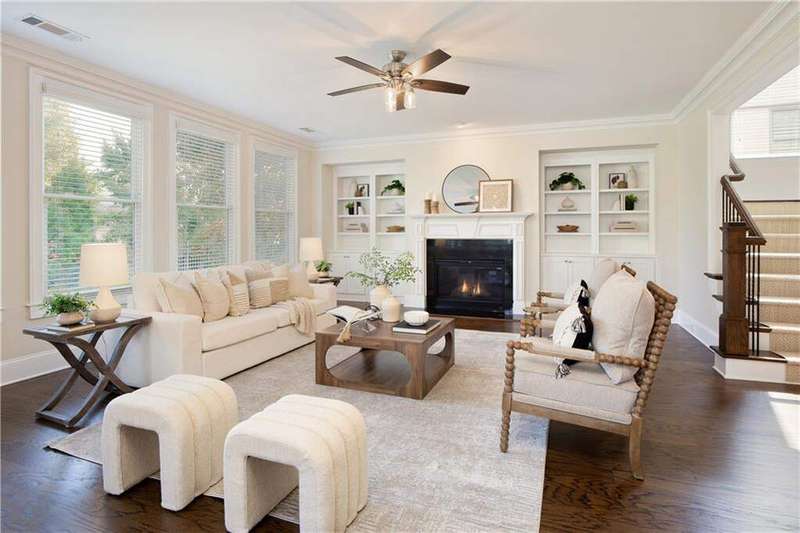 Modern Luxury & Easy Living in Traditions... This craftsman-style charmer on a beautifully landscaped corner lot in the amenity-rich Traditions community is more than a home-it's a LIFESTYLE. With five bedrooms, four-and-a-half baths, and THREE finished levels, this thoughtfully designed home has been refreshed with new carpet, fresh paint, and refinished hardwoods, making it truly move-in ready for the most discerning buyer. From the moment you enter, the home's standout features shine: 8-foot doors, a bright neutral interior, abundant natural light, and rich hardwood floors. The open-concept main floor is an entertainer's dream. The chef's kitchen includes soft white cabinetry, double ovens, a subway tile backsplash, an expansive island and a walk-in pantry. The dining area (easily fits a table for 10+) leads to the oversized covered porch, where a vaulted tongue-and-groove ceiling and custom motorized screens create a private, bug-free retreat for morning coffee, dining al fresco, or hosting friends. The family room impresses with a wall of windows, a cozy fireplace with built-ins, and views of the fenced backyard. So many options for gathering with family and friends! Also on the main level are an office/flex space with French doors, a stylish powder room, a practical drop zone with a bench and cubbies, and a two-car garage with ceiling racks and storage. Upstairs, a flexible loft/reading nook anchors this floor. The primary suite is a tranquil retreat with a trey ceiling and a spa-inspired bath featuring dual vanities with quartz counters, a soaking tub, a frameless glass shower, and a massive walk-in closet. Three spacious secondary bedrooms include one with an en-suite bath and two that share a Jack-and-Jill with separate vanity areas. A convenient laundry room (with cabinetry and 2022 washer & dryer included) plus a huge walk-in linen/storage closet round out this floor. The third level "reverse basement" is the ultimate flex/bonus space-perfect for a private guest suite, teen retreat, theatre room, or home gym. With a full bath and two walk-in attic storage areas, the possibilities are endless. Outside, you'll find a fully fenced and professionally landscaped yard maintained by the HOA, complete with a Rachio smart irrigation system. The exterior was freshly painted in 2022 for low-maintenance living. Smart-home features include Nest thermostats, Yale Nest lock, a SimpliSafe security system with cameras, and a video doorbell. Beyond the home itself, Traditions offers a resort-style pool, clubhouse, tennis/pickleball courts, fitness center, playground, green spaces, and walking paths, all with award-winning schools and easy access to GA400, Fowler Park, Big Creek Greenway, and premier shopping and dining. Whether you're seeking peaceful moments at home or an active, connected lifestyle, 3910 Cameron Court delivers it all.
